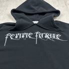 This 2017 Balenciaga "Femme Fatale" oversized pullover hoodie features a bold graphic on a sleek black backdrop. Designed with a relaxed fit and premium feel, it blends streetwear edge with high-fashion style. Tag size M — fits oversized.