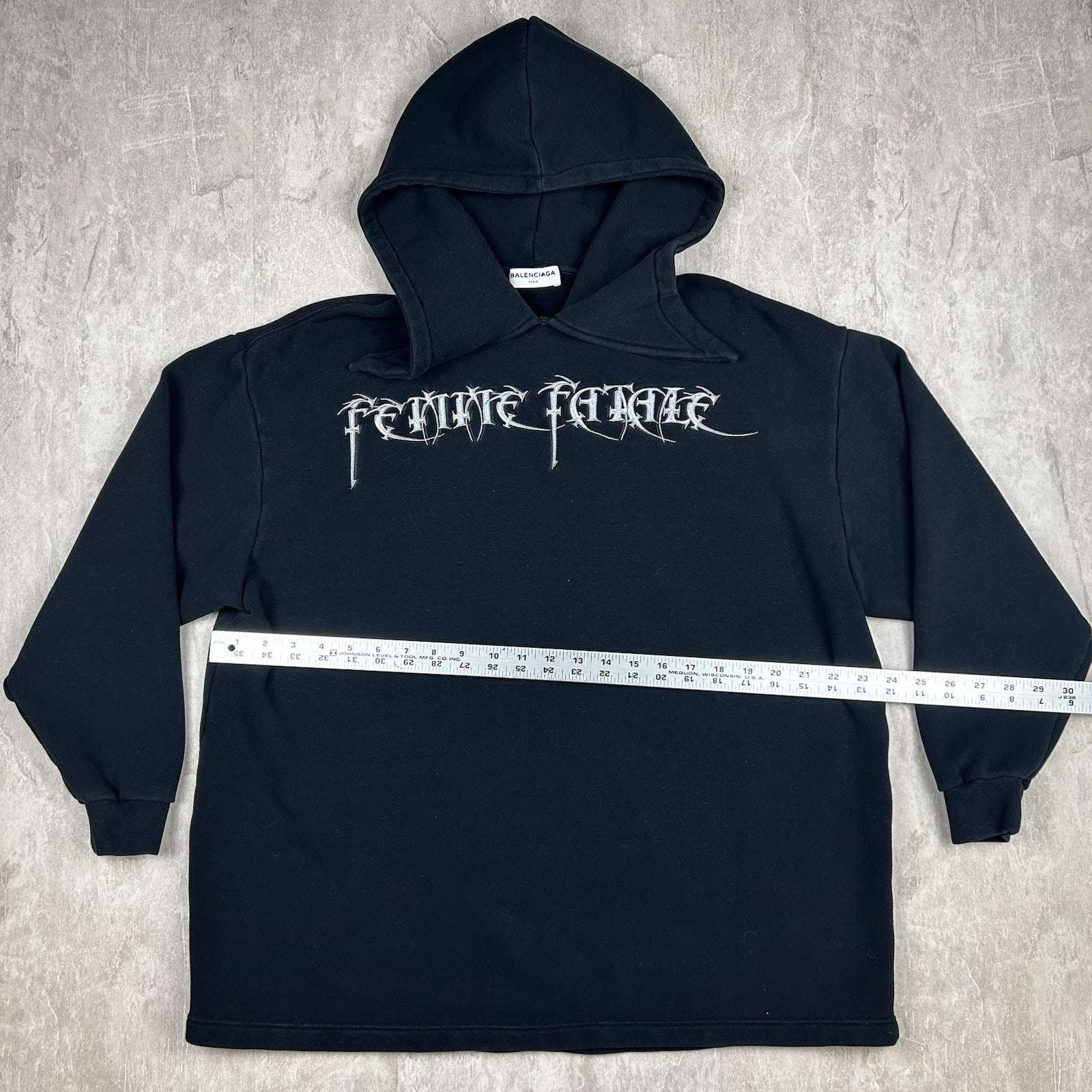2017 Balenciaga “Femme Fatale” Oversized Black Pullover Hoodie Tag Size M