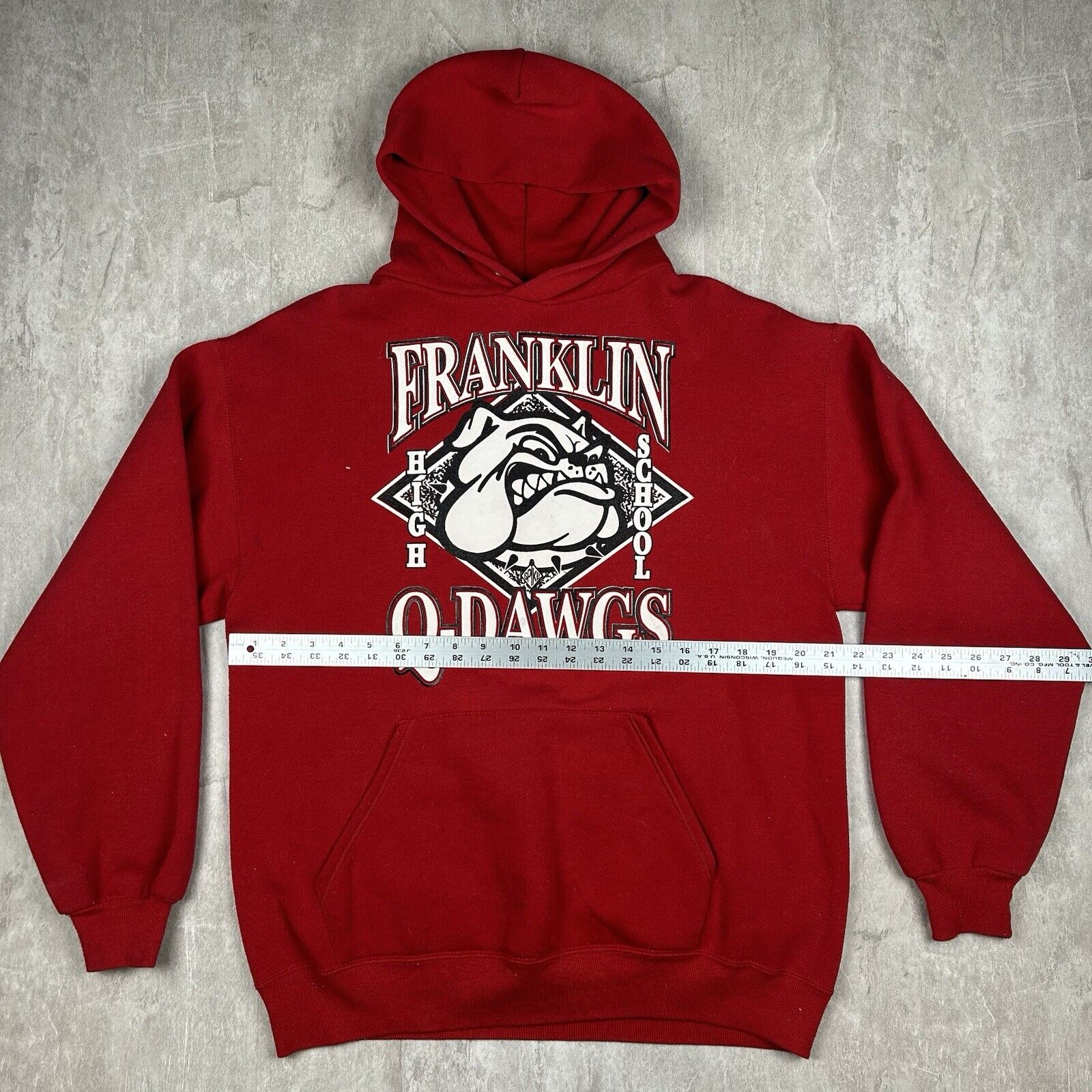 Vintage 90s Franklin High School Q-Dogs Bulldog Red Hoodie USA Men’s Size L