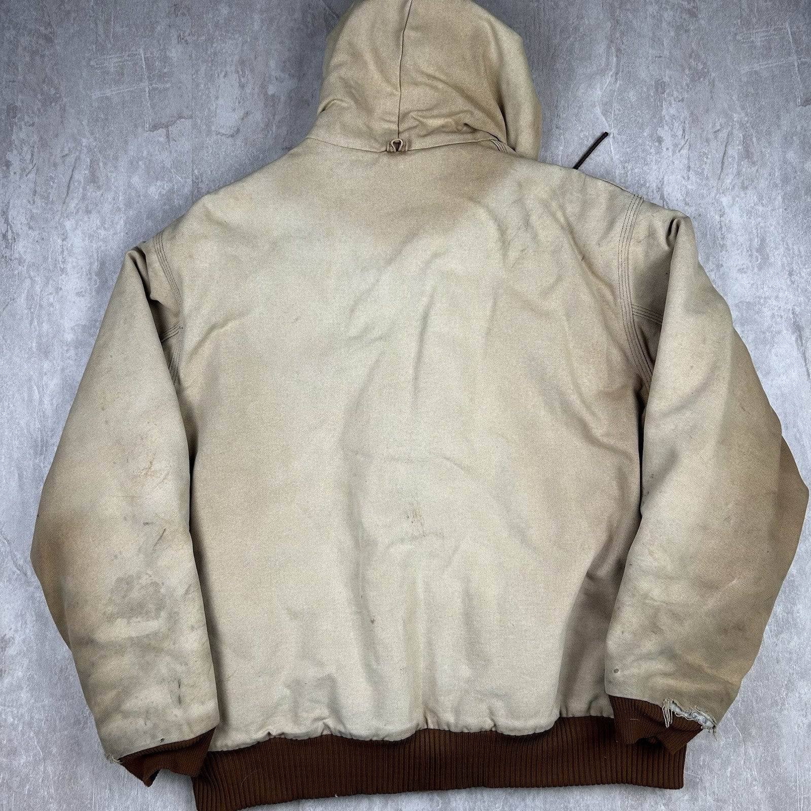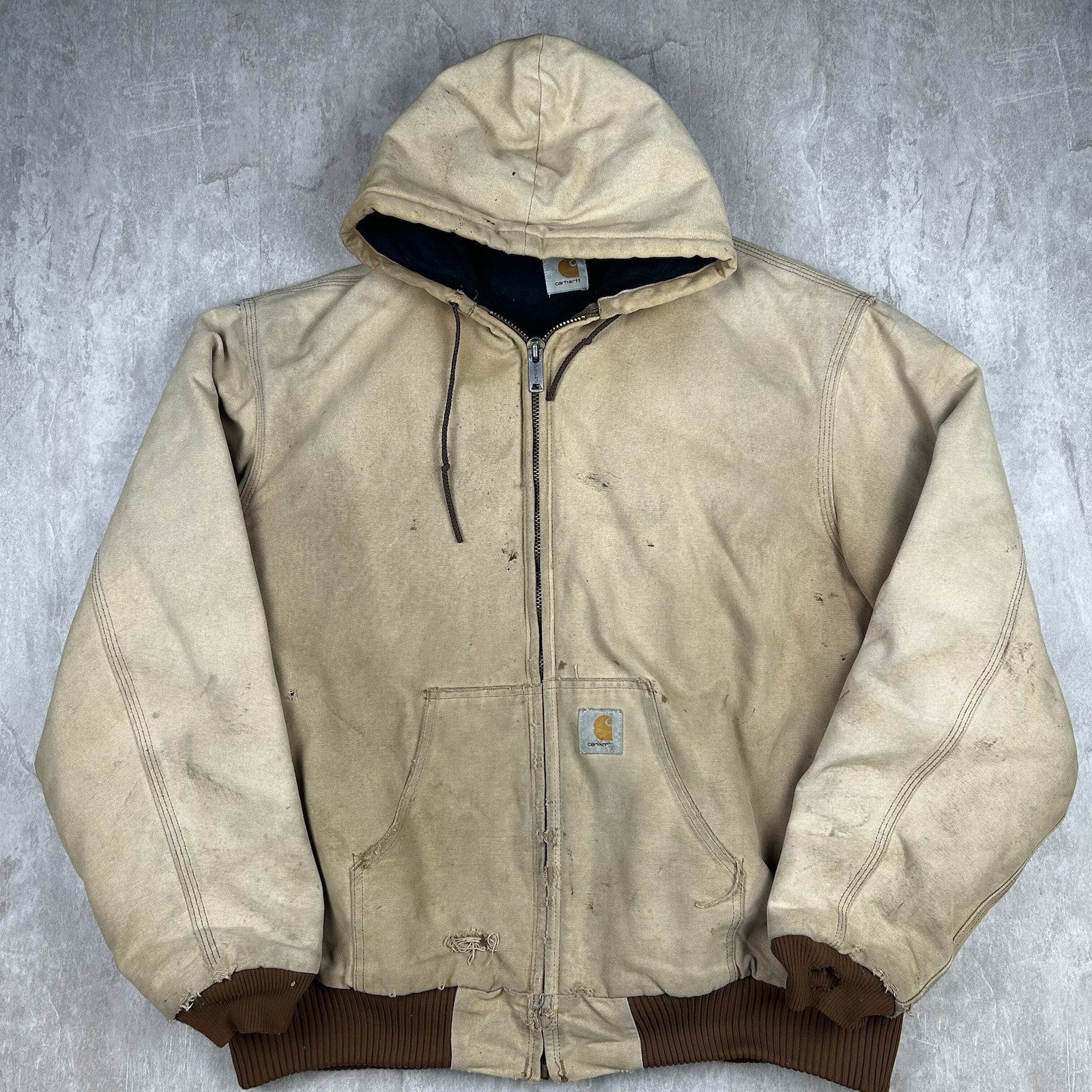 Distressed Vintage 90s Carhartt Beige Jacket Zip Up Men’s Size Unknown