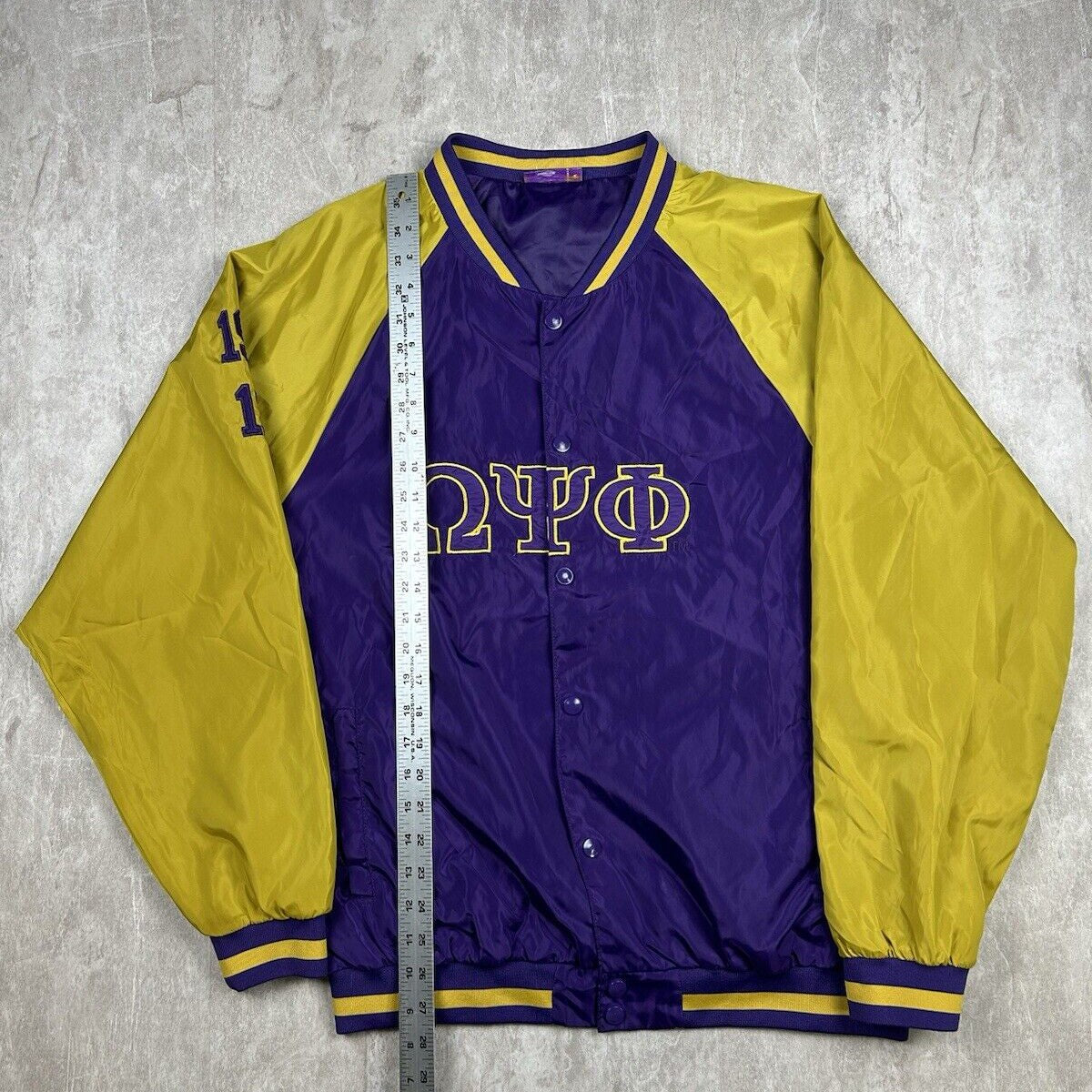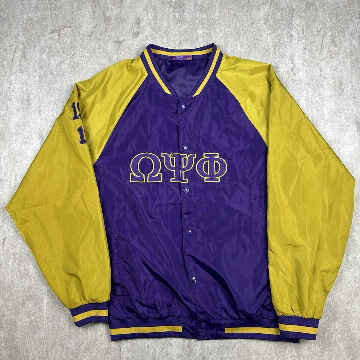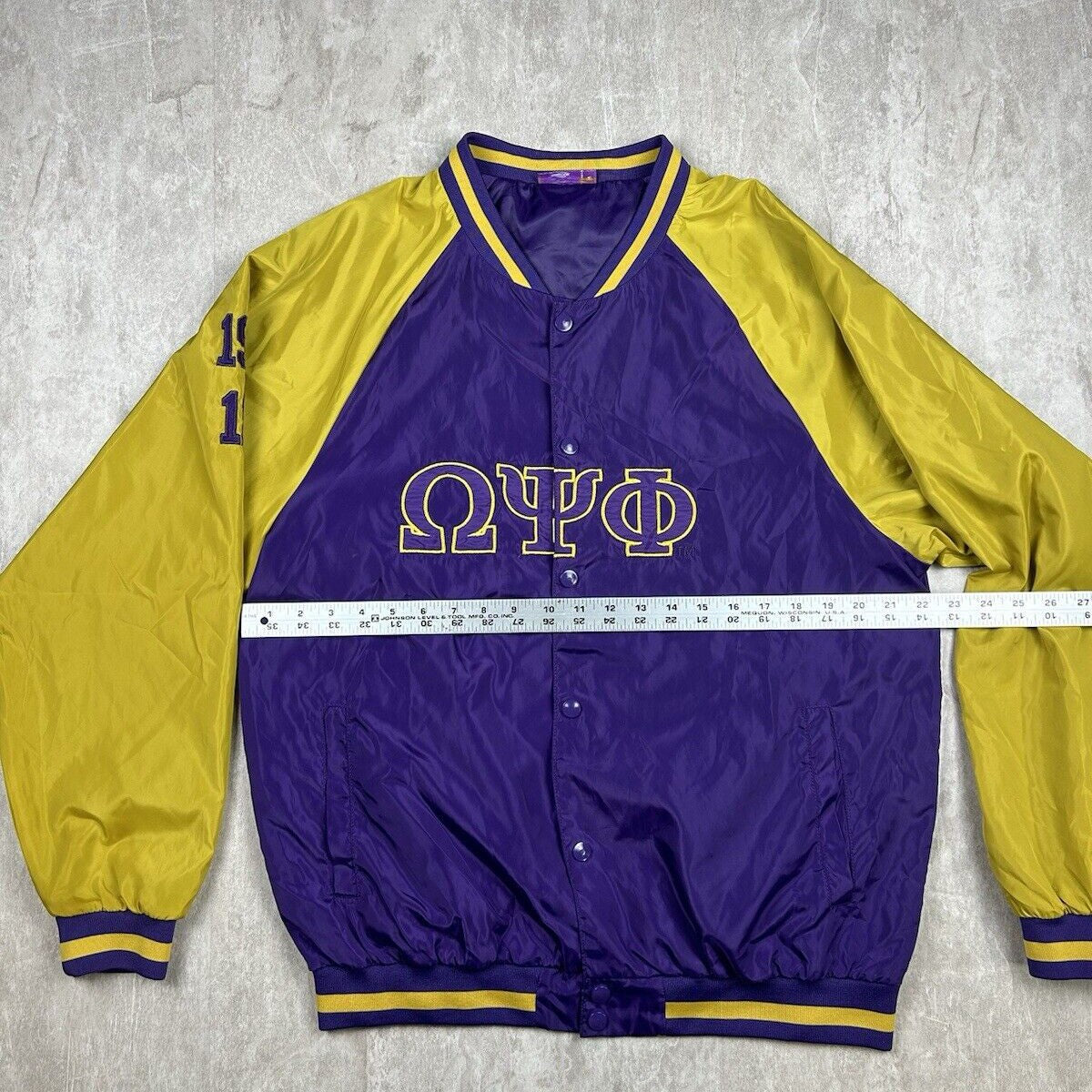 Purple Yellow Omega Psi Phi Fraternity Poly Varsity Bomber Jacket Men’s Size L