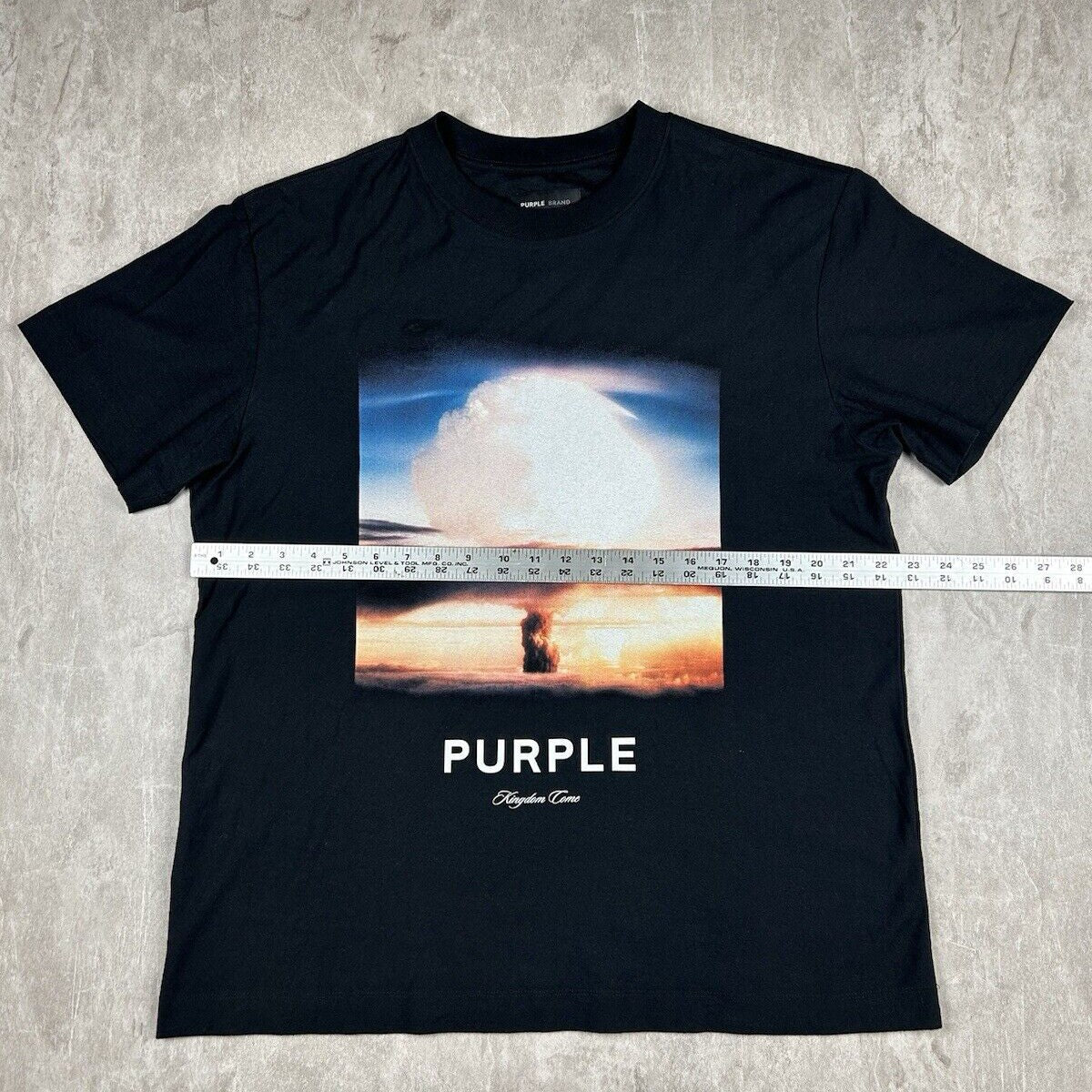 Dive into the epic with the Purple Brand Kingdom Come Nuke Sunset Black T-Shirt. This men’s size M tee features a striking graphic of a sunset amidst a bold, nuclear-themed design, merging urban edge with artistic flair. Perfect for making a statement.