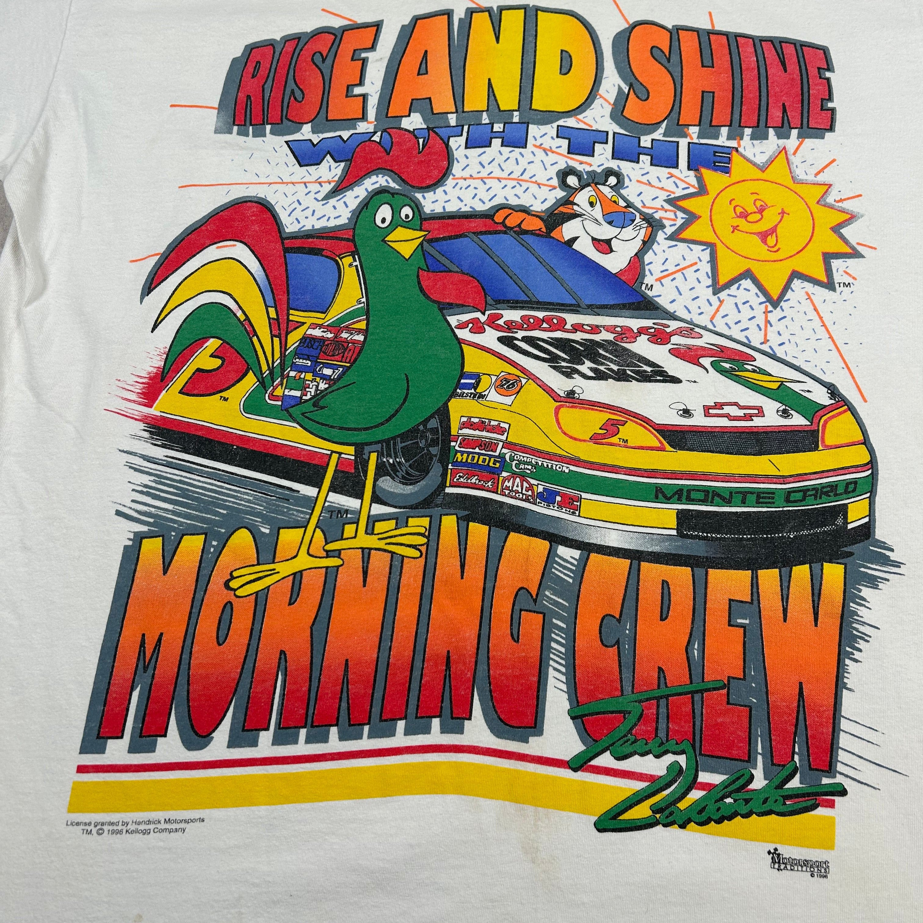 Vtg 1996 Kellogg’s Racing T-Shirt Rise And Shine Morning Crew Men’s Size OSFM
