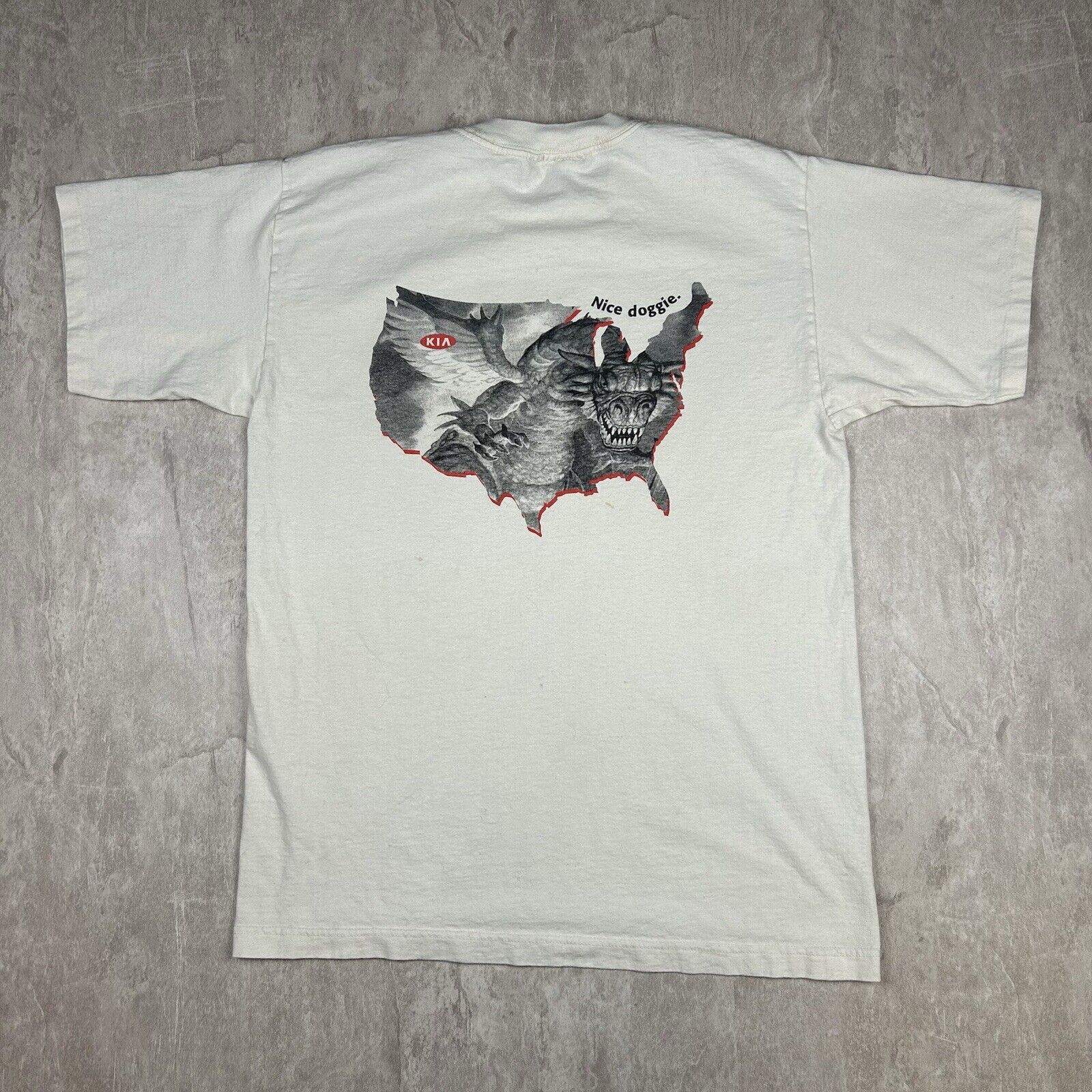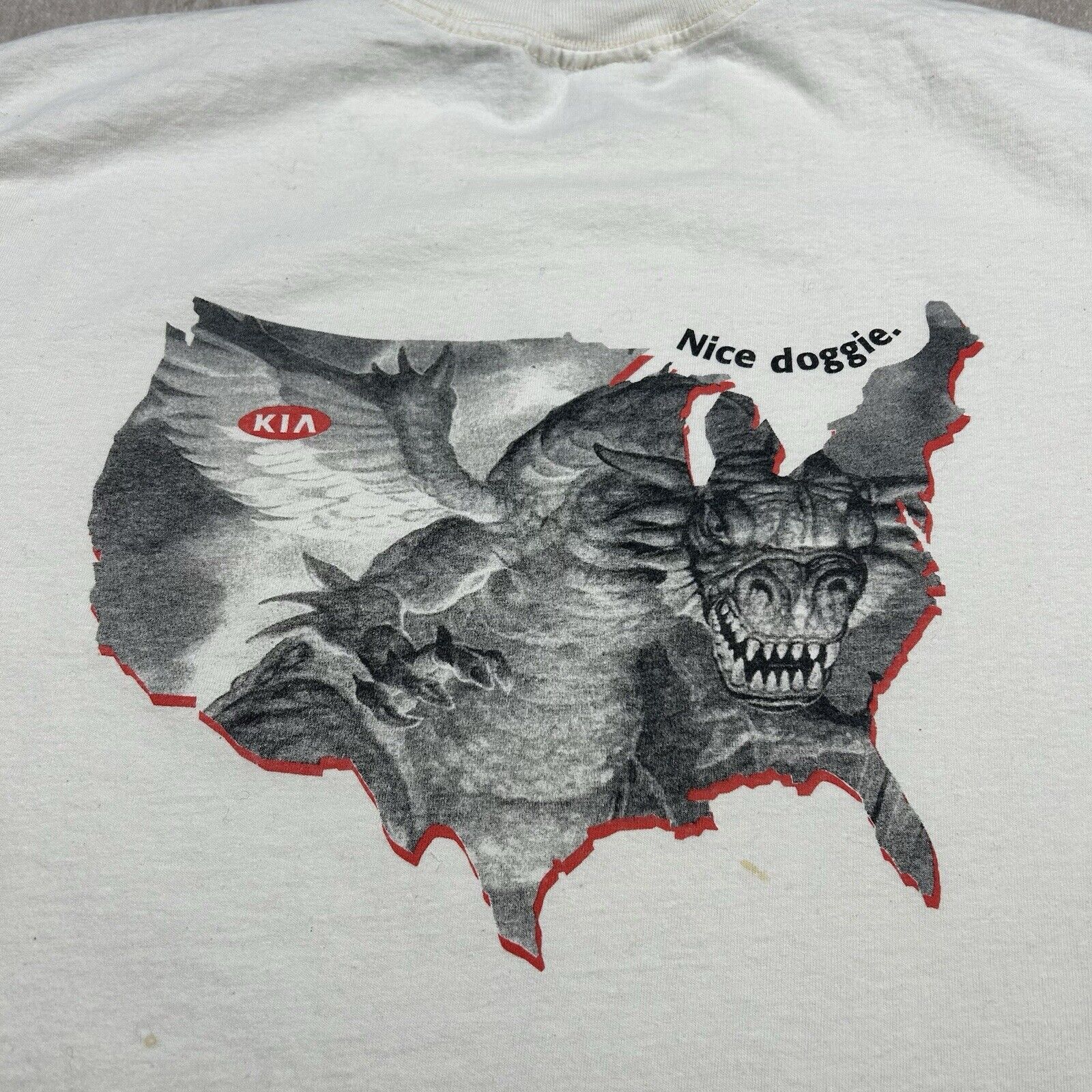 Vtg 90s Kia “Nice Doggie” Monster Dinosaur White T-Shirt Superior Men’s Size L