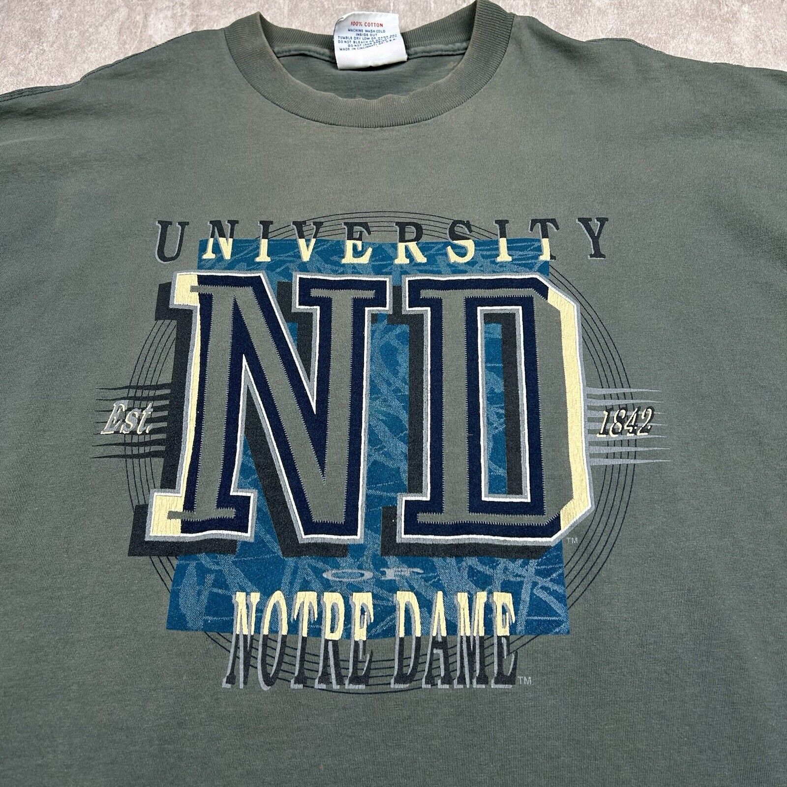 Vtg 90s Notre Dame Fighting Irish Single Stitch T-Shirt Green Men’s Size XL
