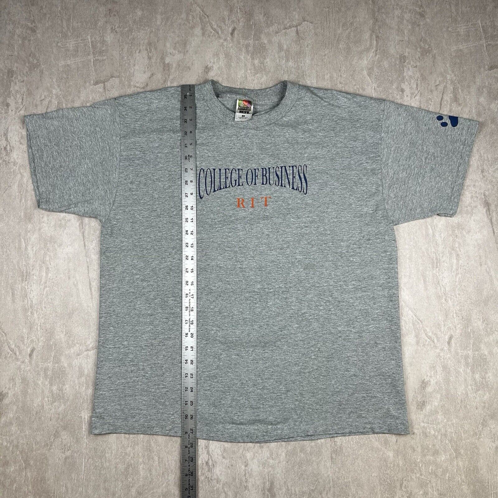 Represent your alma mater with this Vtg RIT (Rochester Institute of Technology) Gray T-Shirt. In men's size XL, this tee features a classic design perfect for RIT alumni, students, or anyone in business looking to show school pride with a vintage twist.