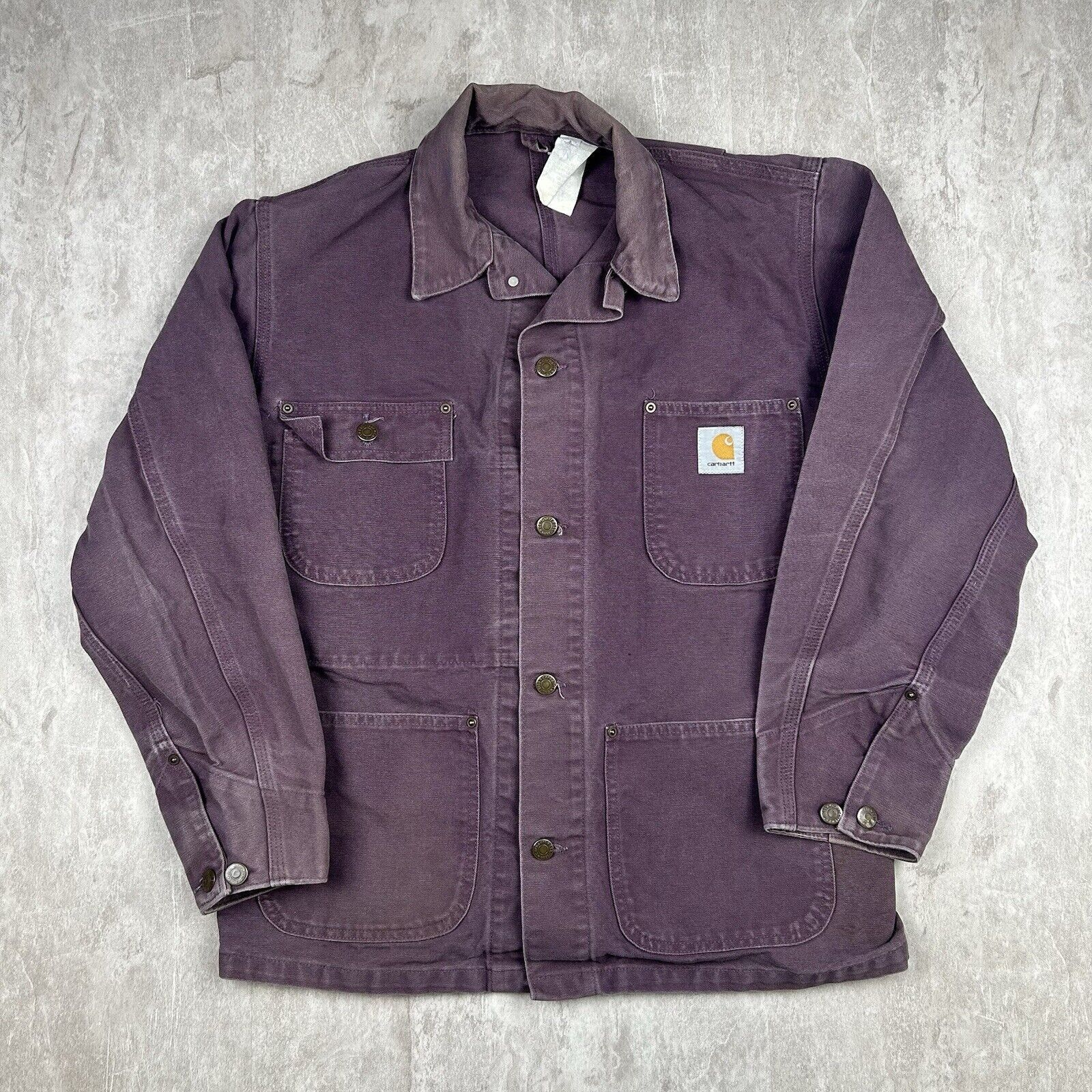 Vintage 90s Carhartt Jacket Purple Michigan Chore Coat WIP USA Men’s Size S