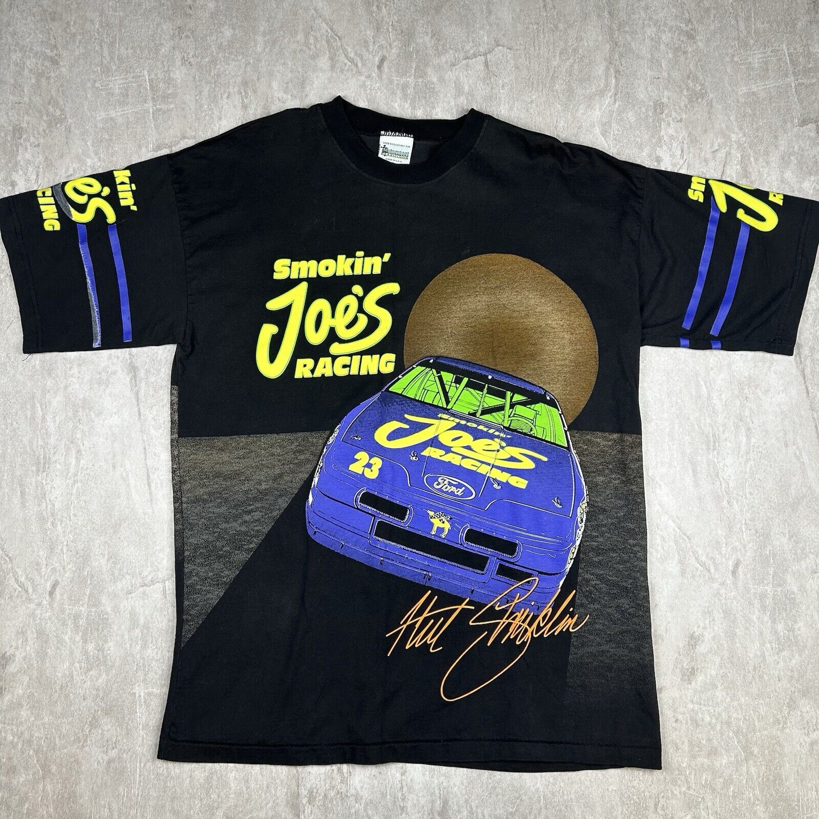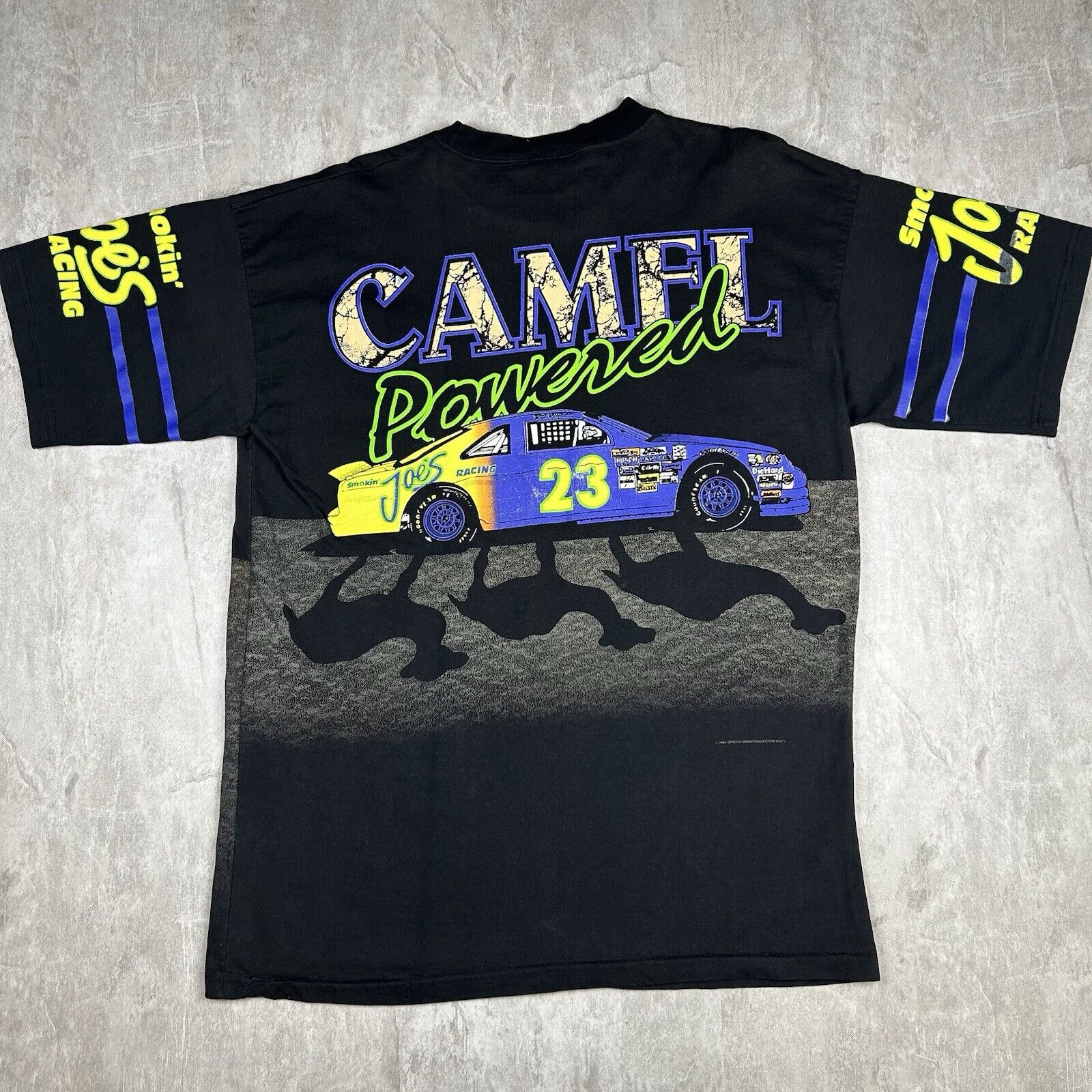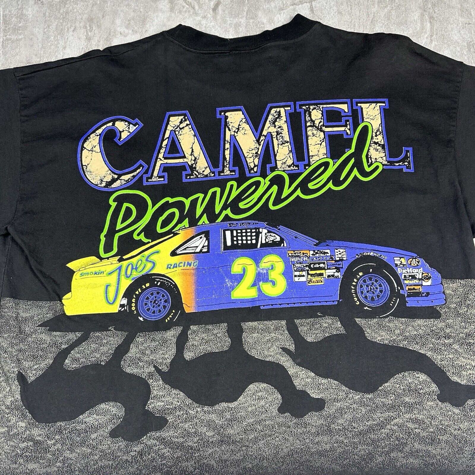 Vintage Camel Powered Smokin Joe's Racing AOP NASCAR Black T-Shirt Men’s Size L