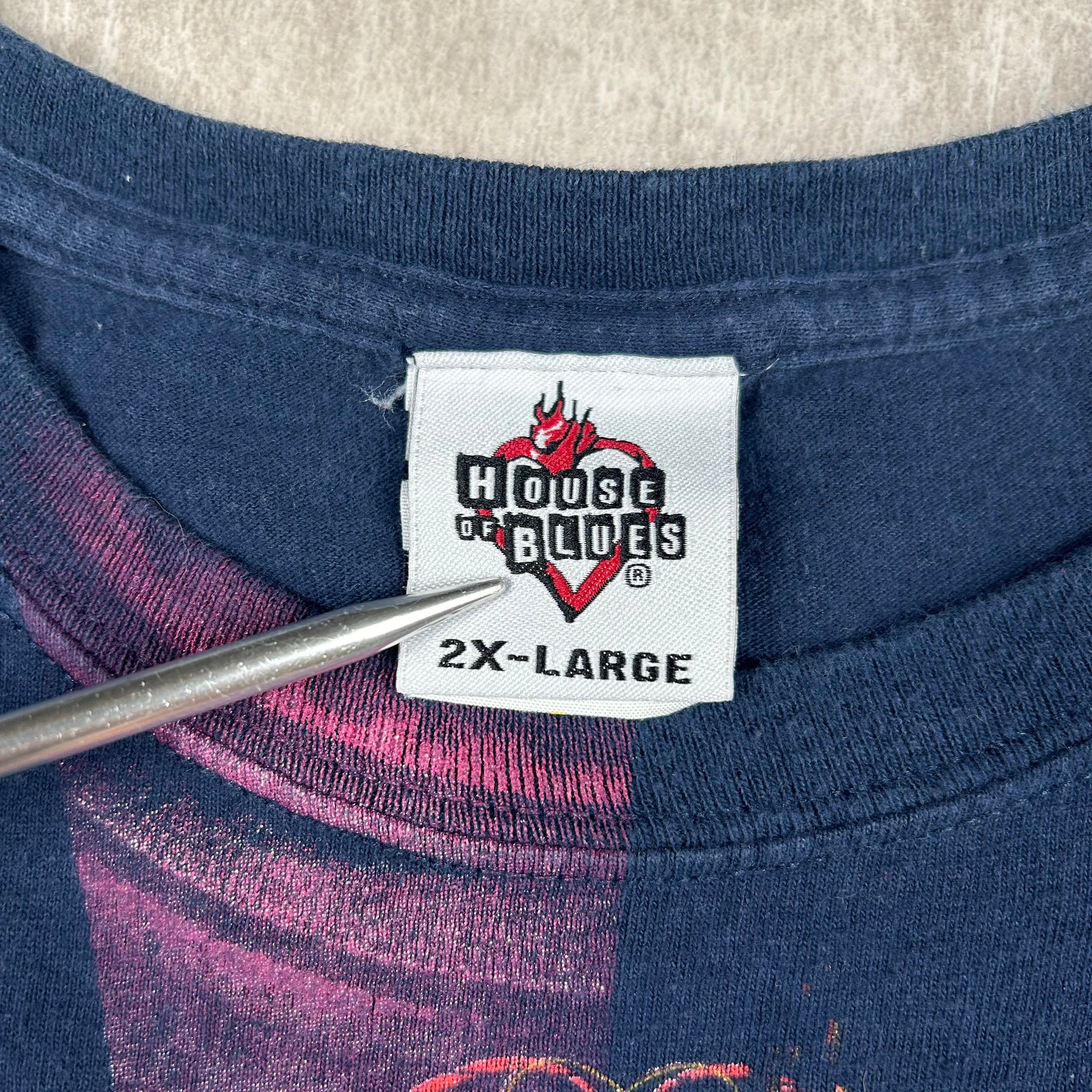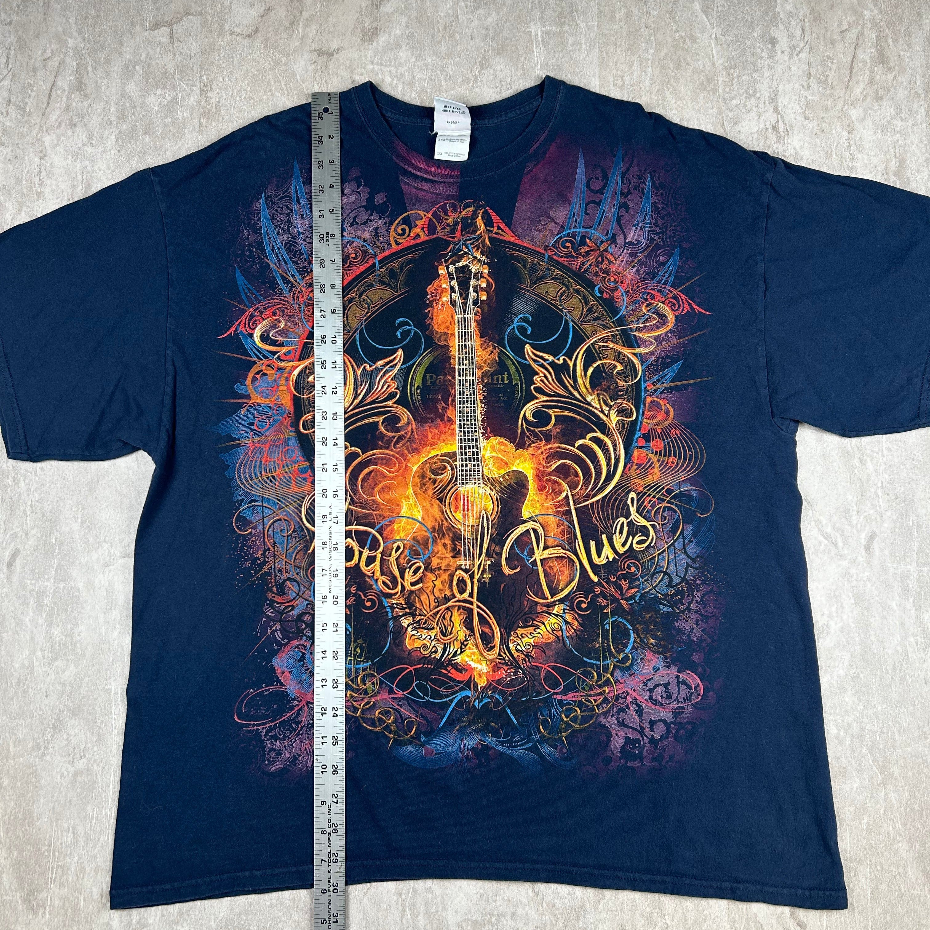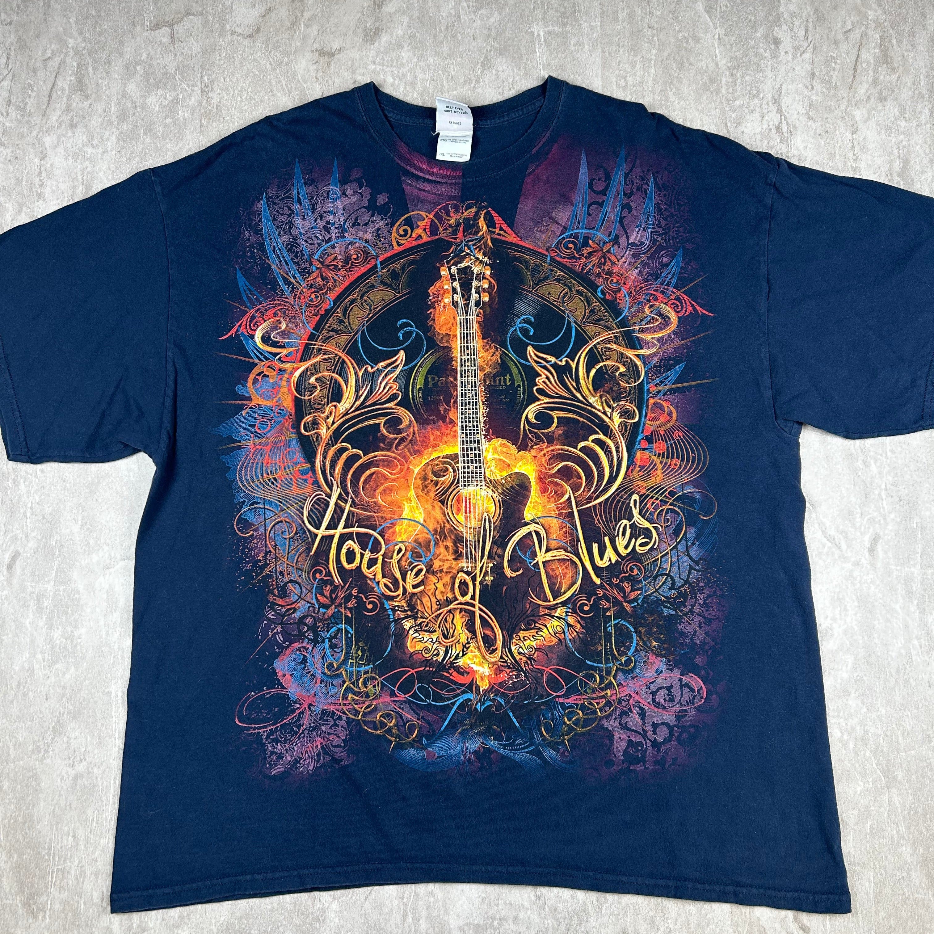 Vintage House Of Blues Shirt Mens 2XL Blue AlL Over Print Guitar Wings Houston