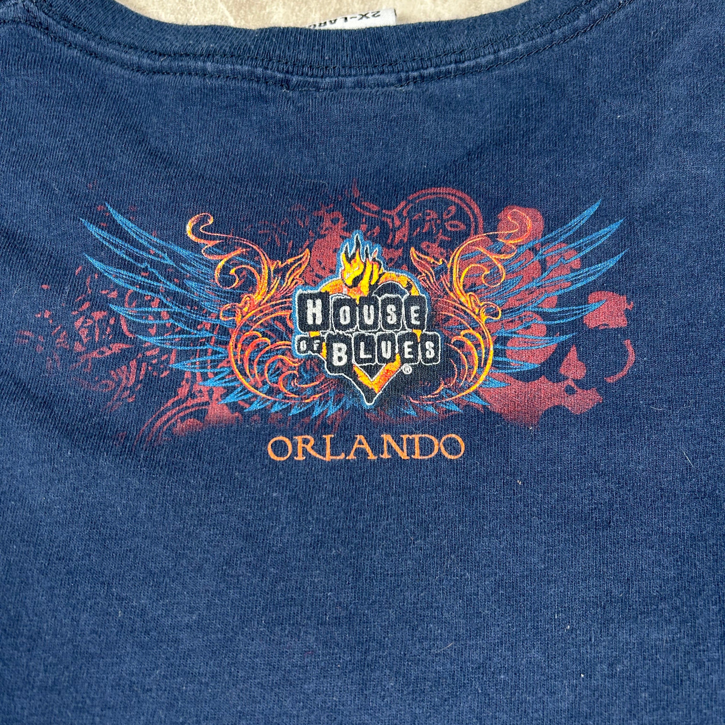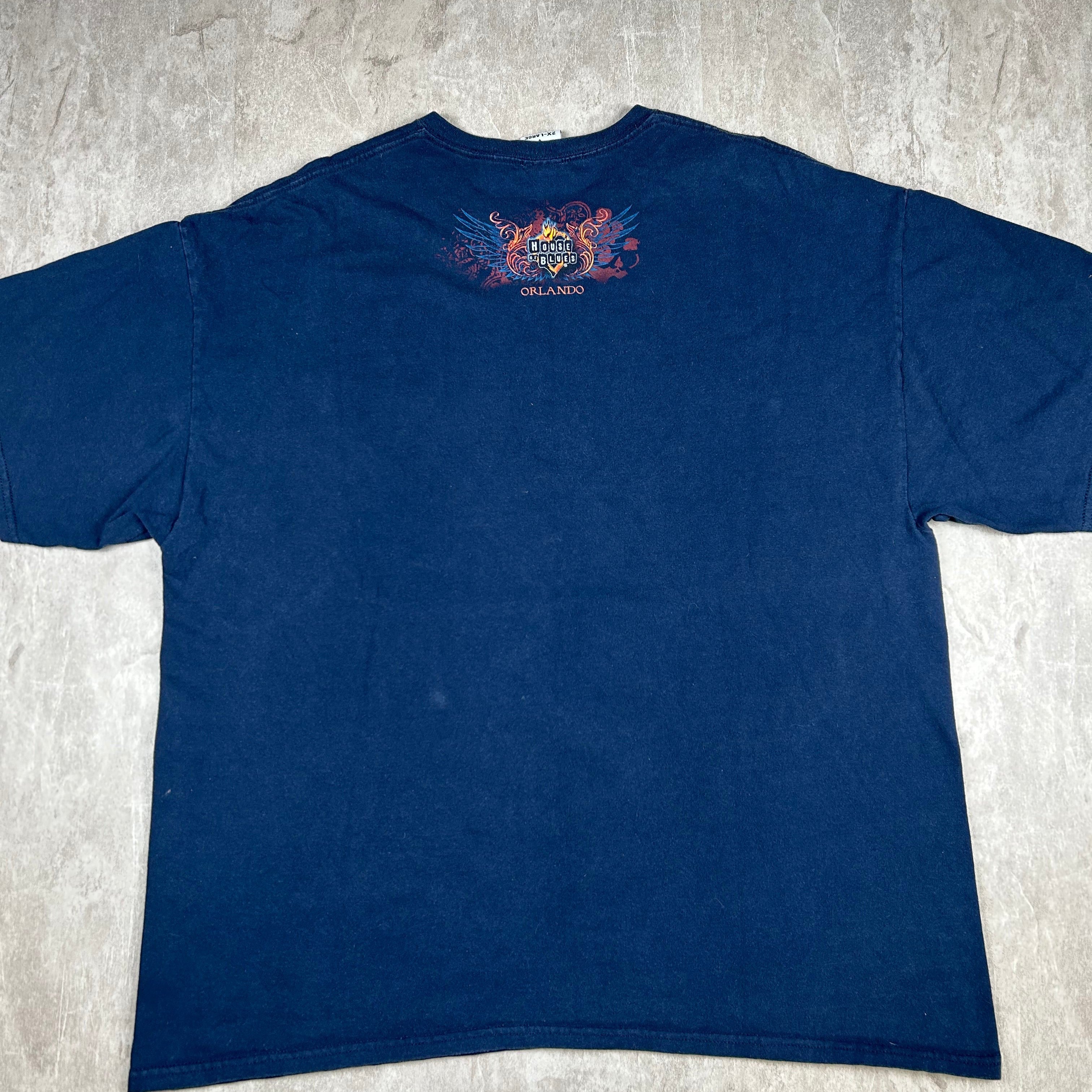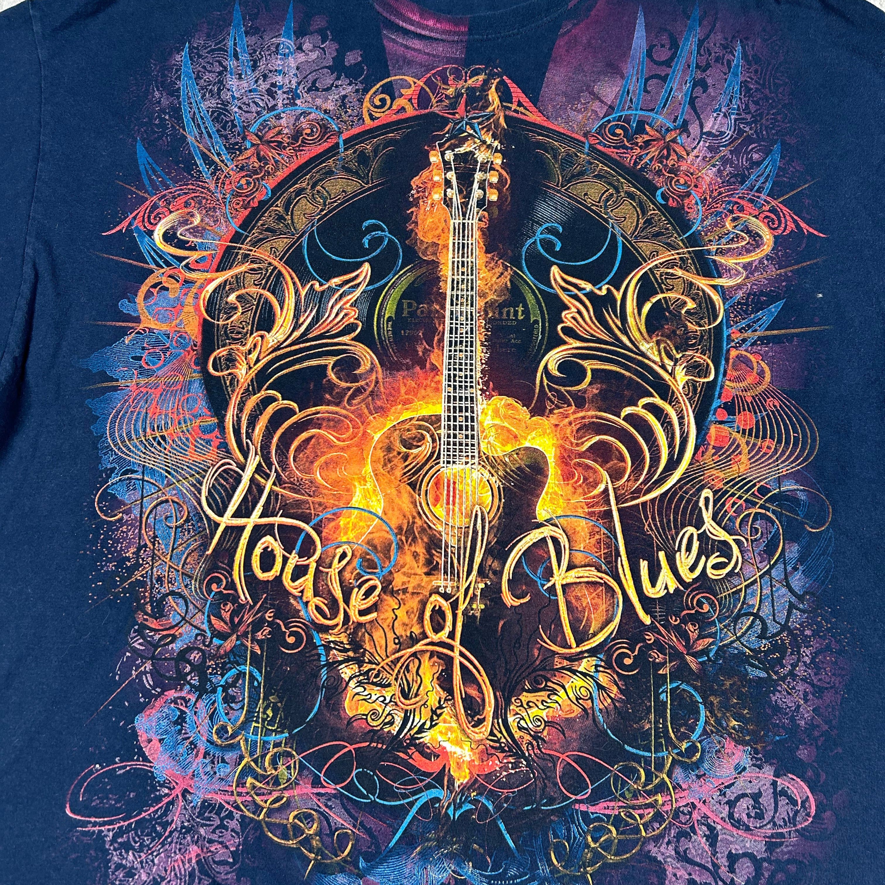 Vintage House Of Blues Shirt Mens 2XL Blue AlL Over Print Guitar Wings Houston