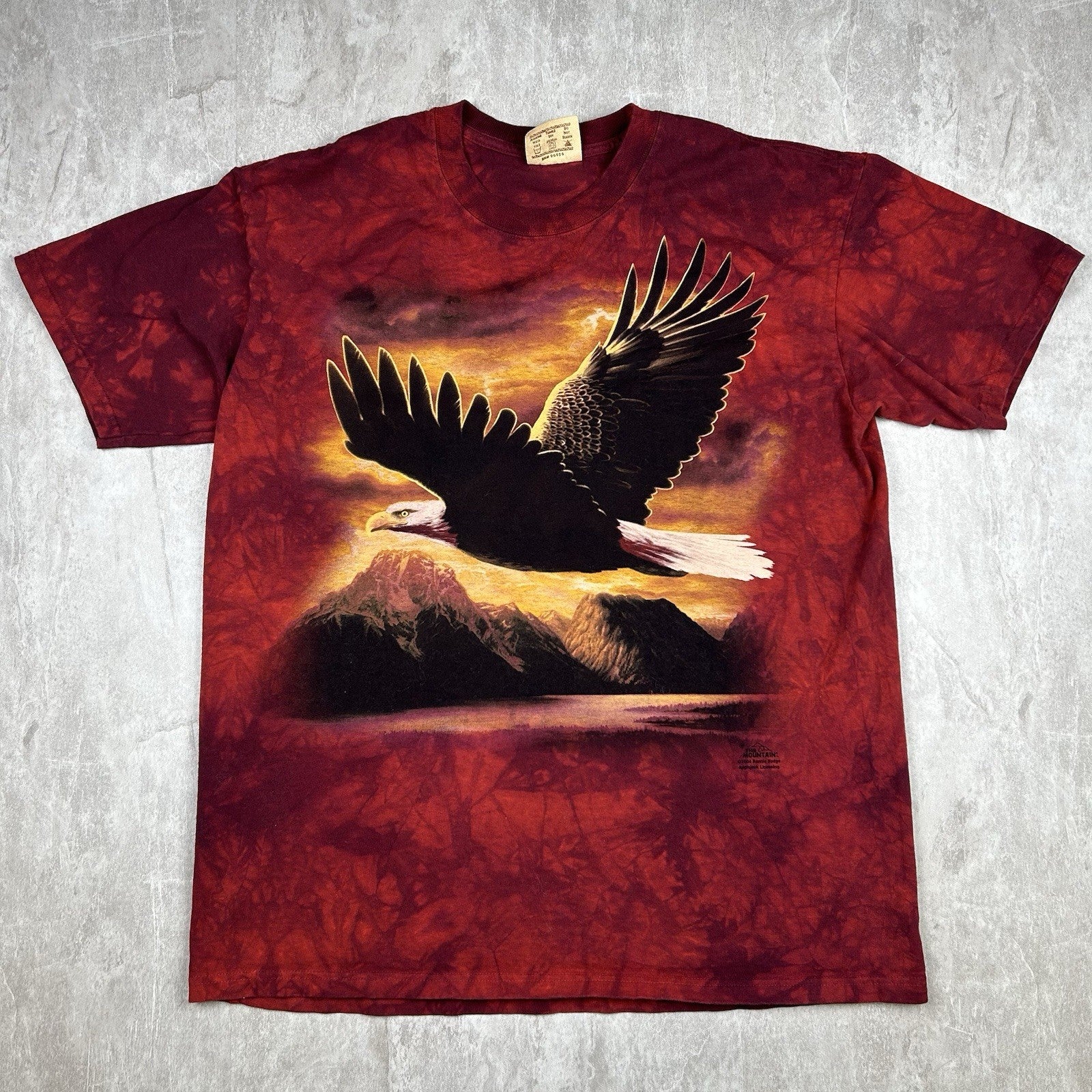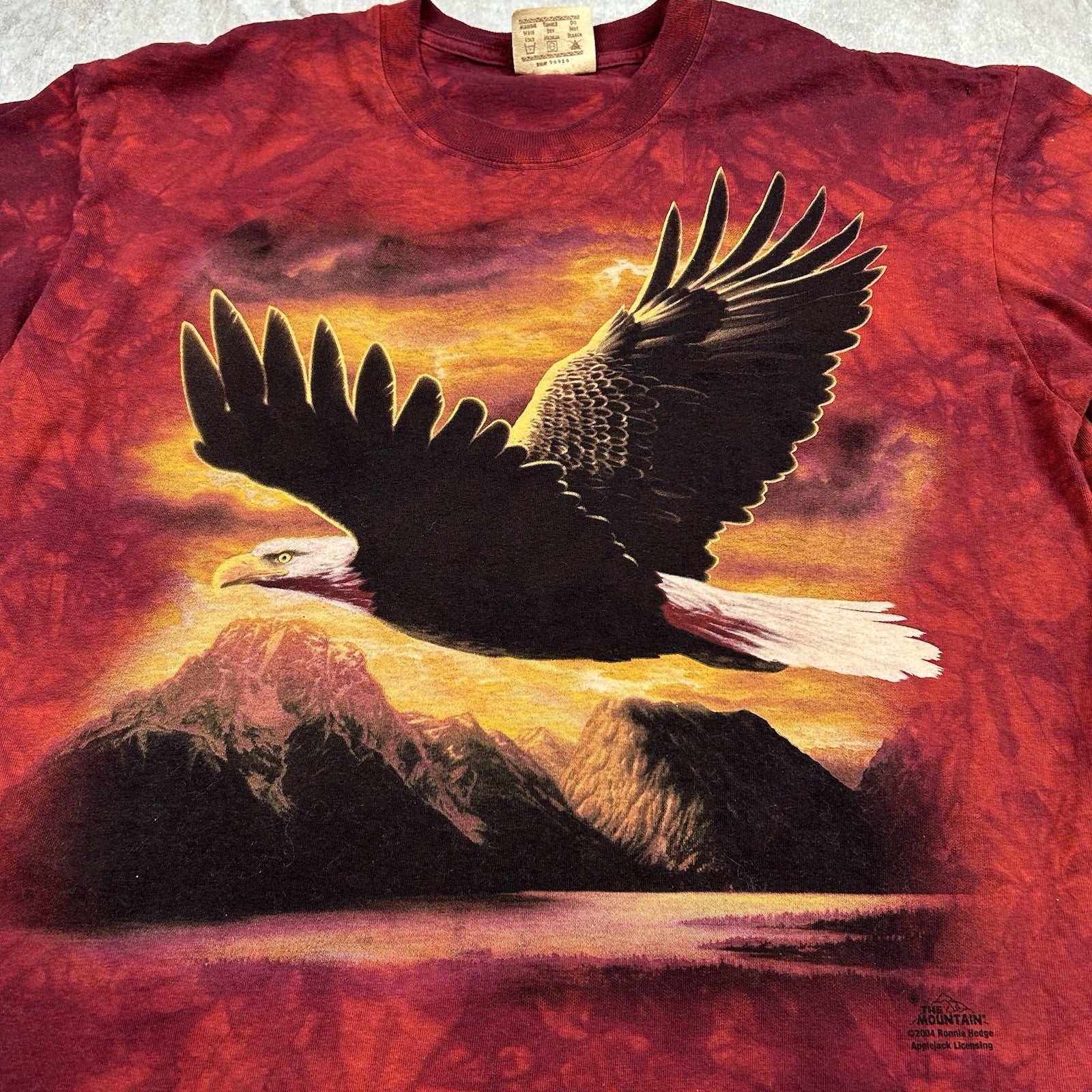 The Mountain Y2K 2004 Bald Eagle Red Tye Dye Organic Cotton T-Shirt Men's Size L