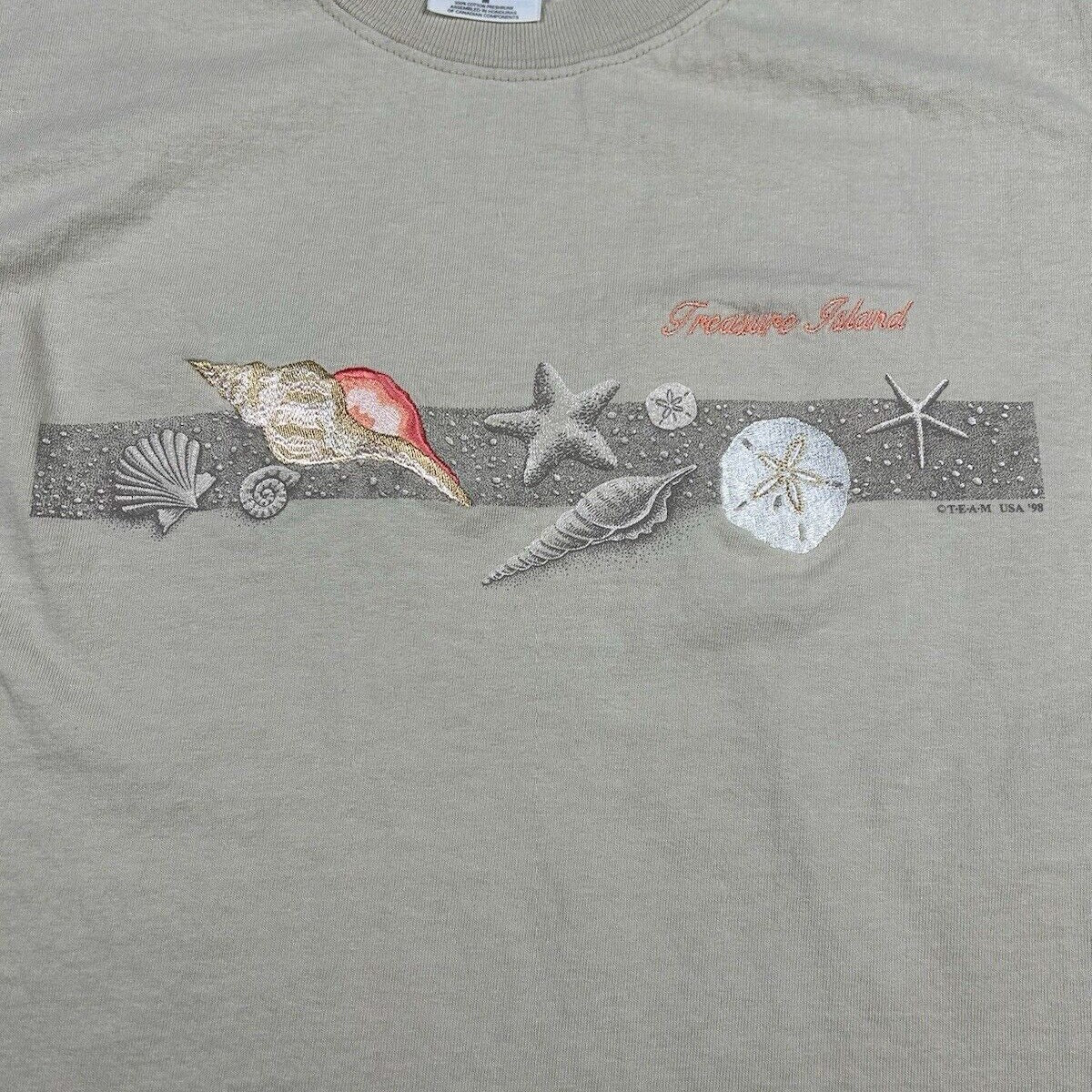 Vtg 90s Treasure Island Florida Embroidered Logo Tan USA 98 T-Shirt Men’s Size M