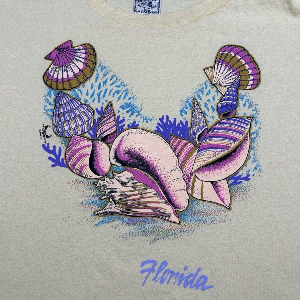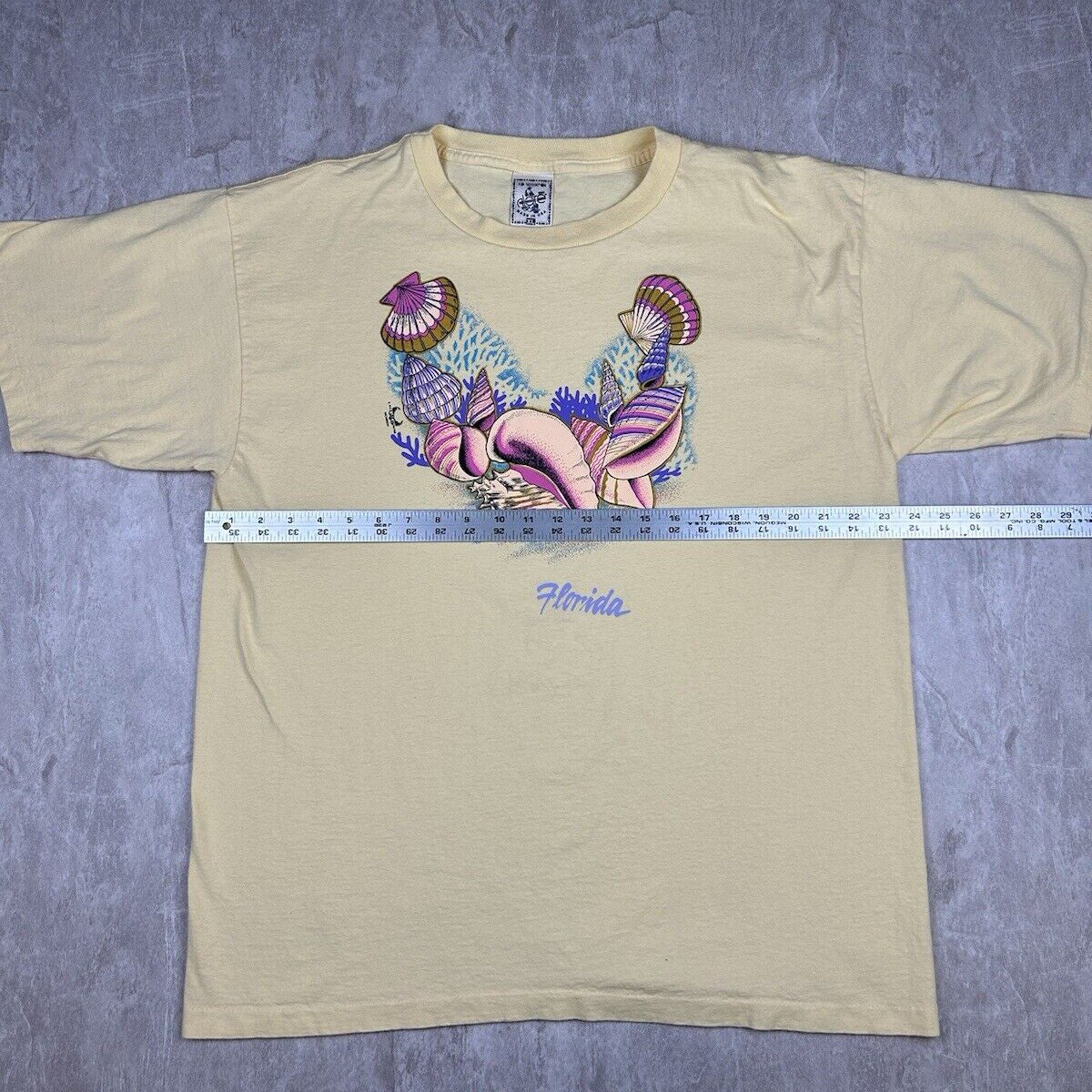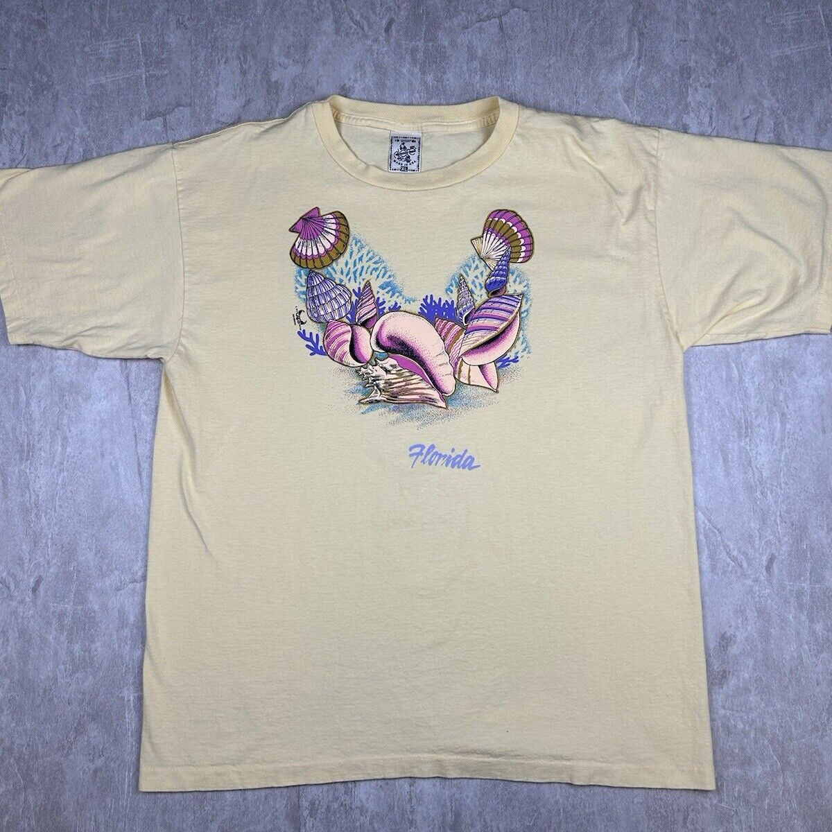 Vtg Alore Florida Beach Shells Yellow T-Shirt USA Single Stitch Men’s Size XL