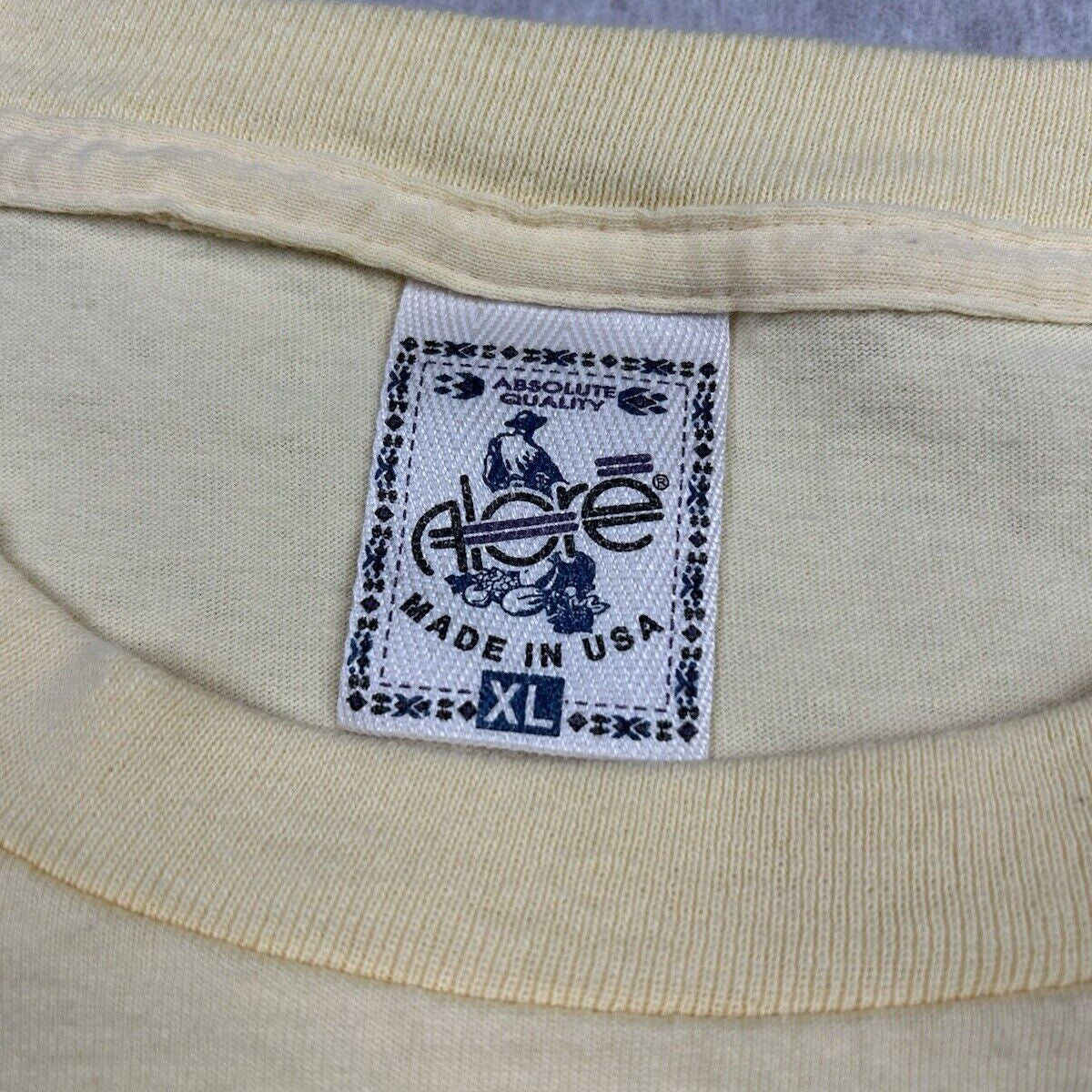 This vintage Alore Florida Beach yellow T-shirt features a shell graphic and is single-stitched for a classic look. Sized for men in XL, it's perfect for a casual beach vibe.