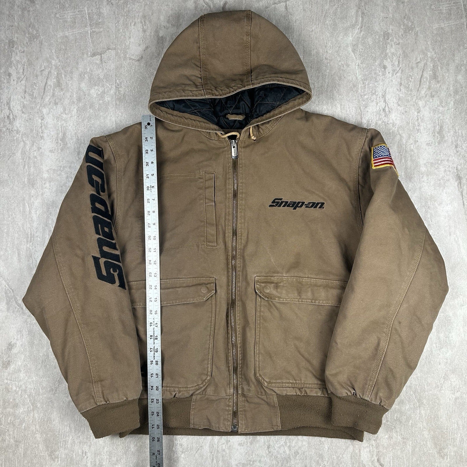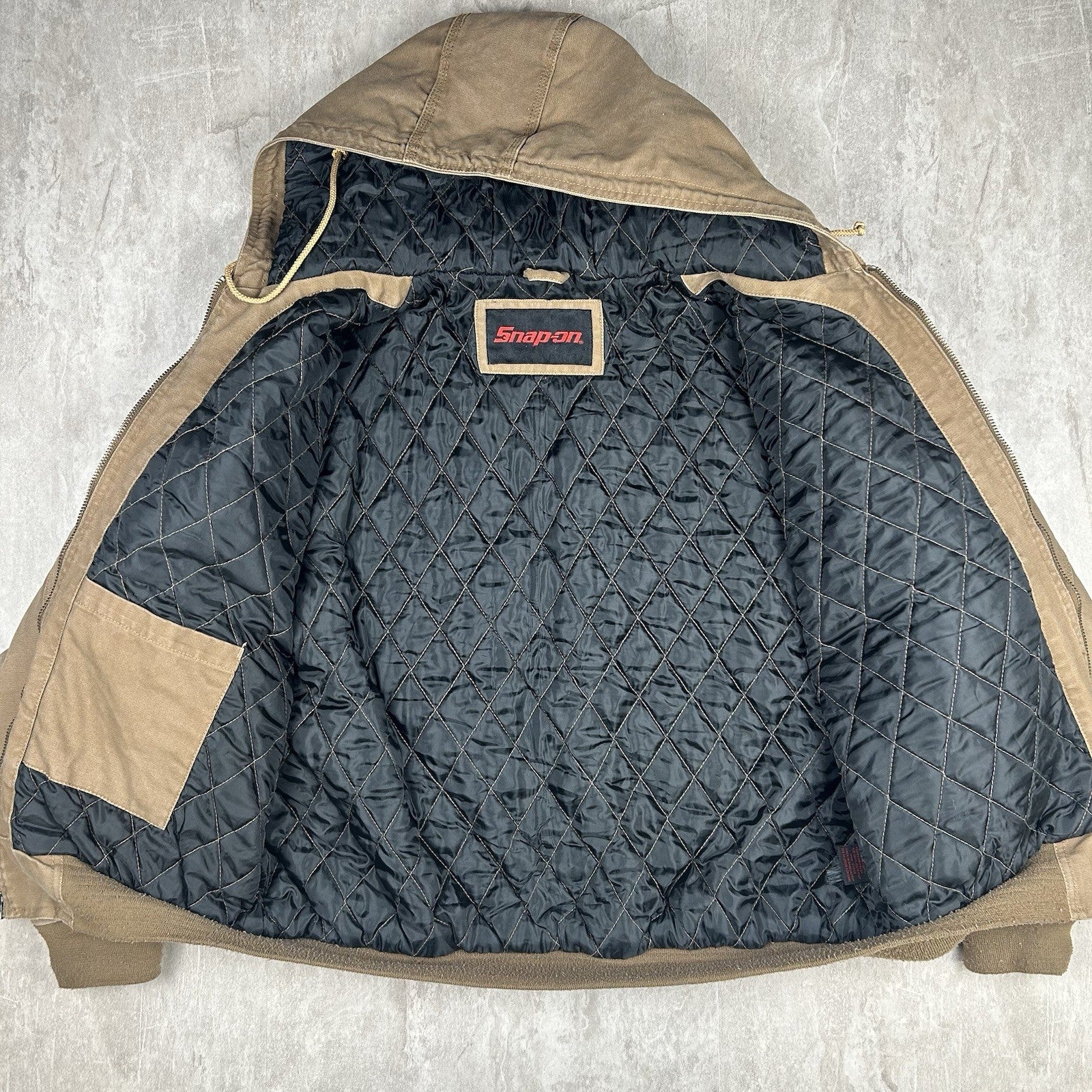 Snap-On Tools Canvas Full Zip Quilted Hooded Jacket Hoodie Tan Men’s Size L