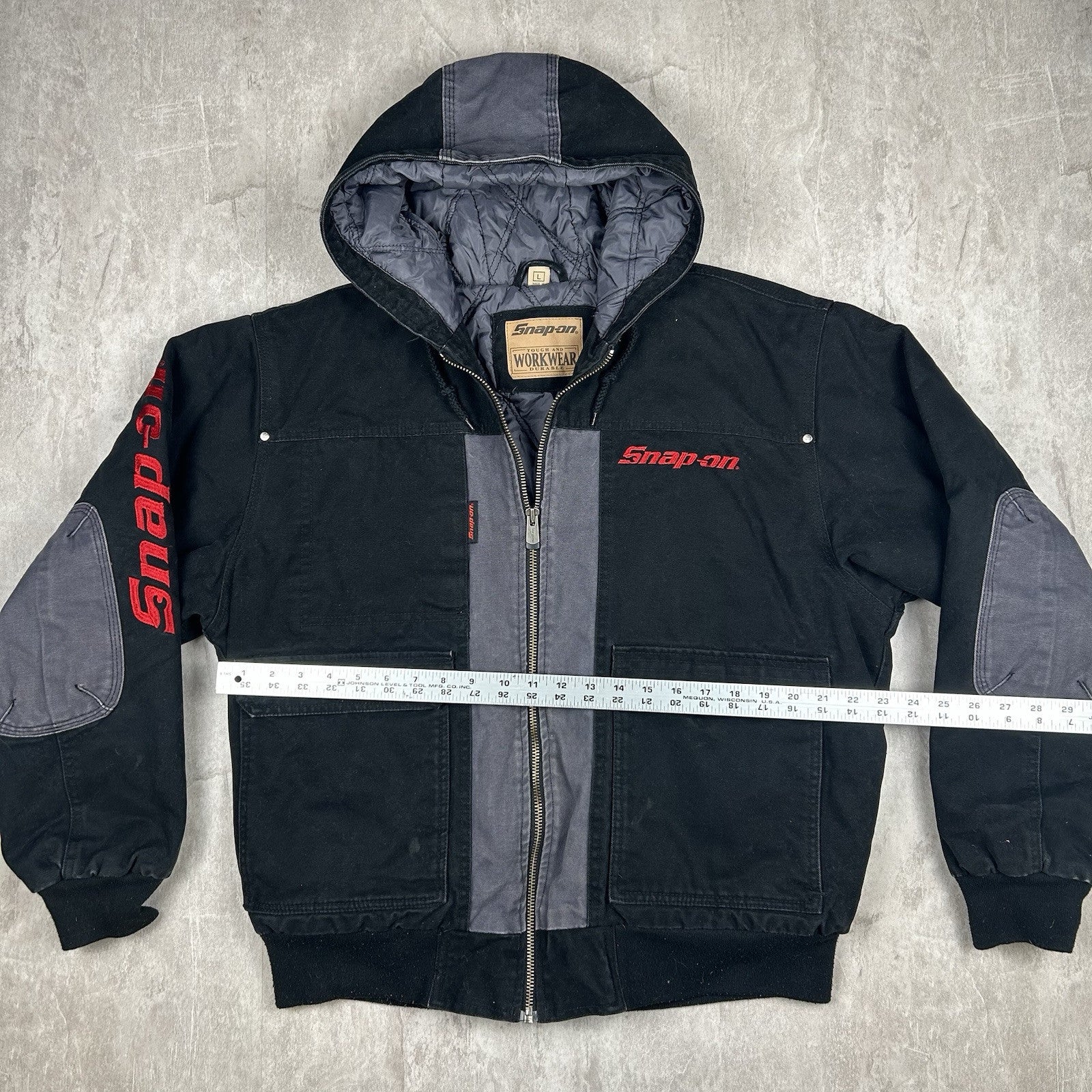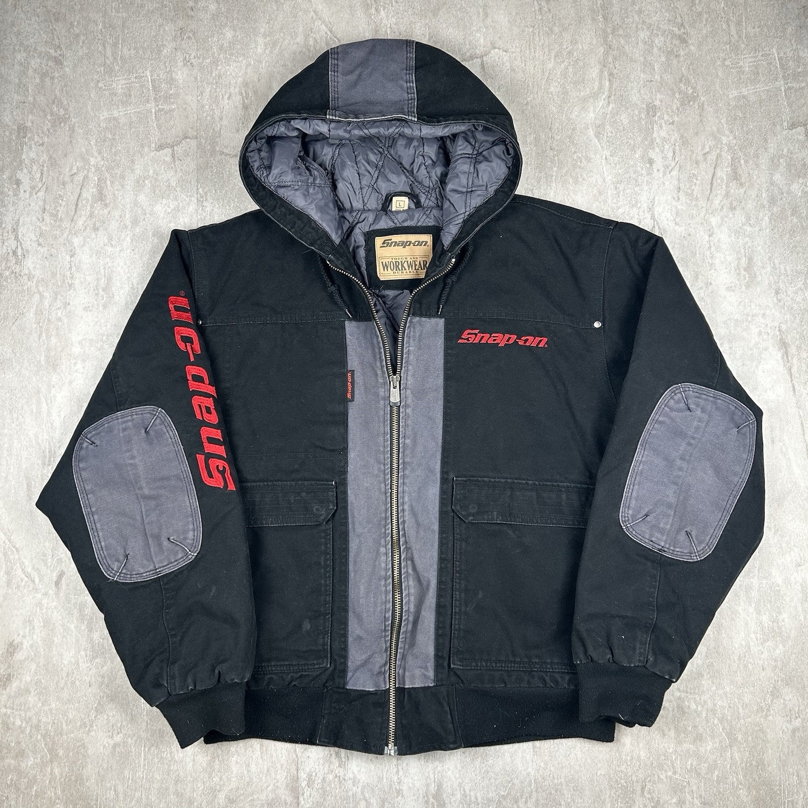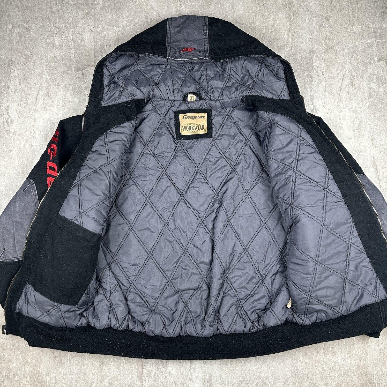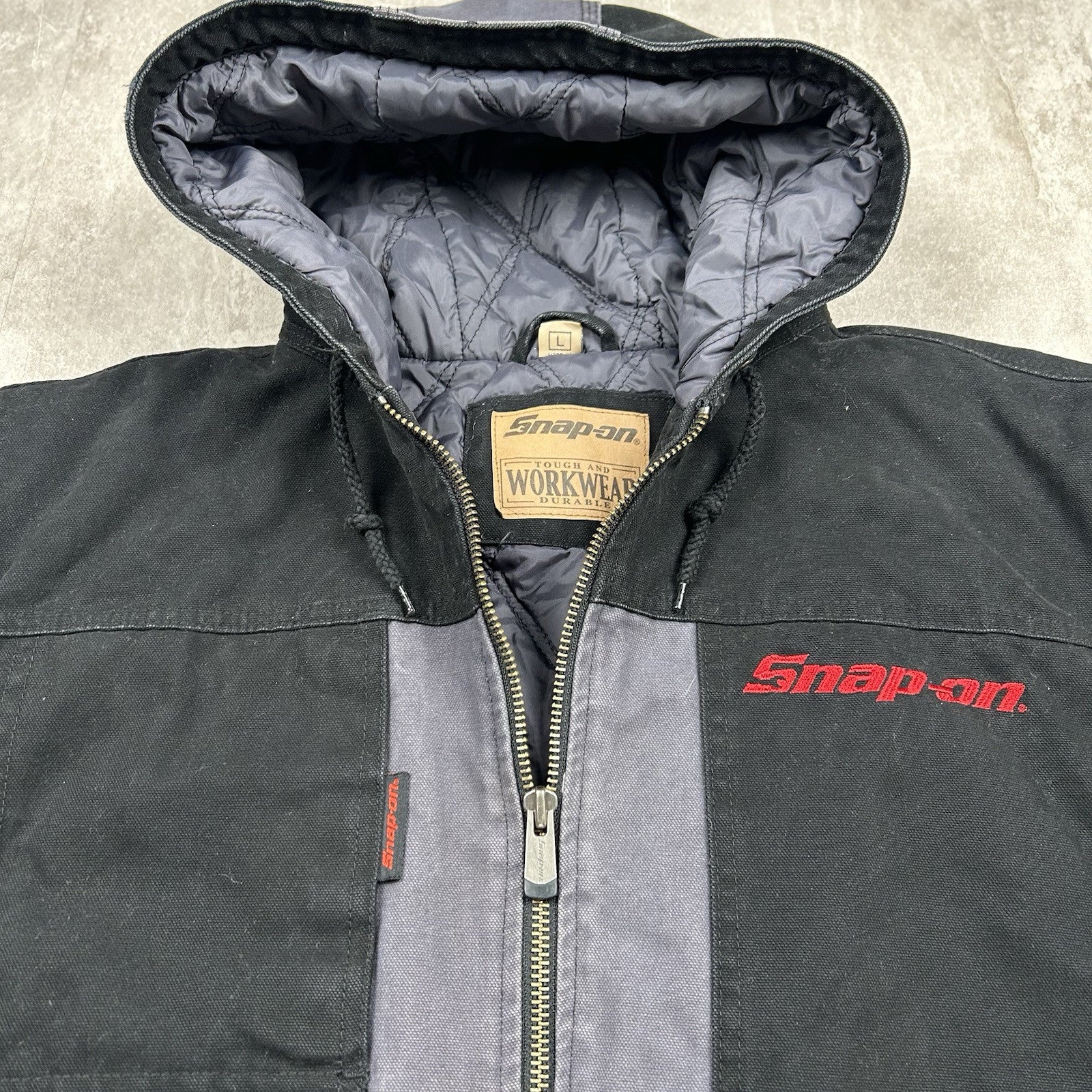 Snap On Tools Jacket Full Zip Quilted Canvas Hooded Workwear Coat Men’s Size L