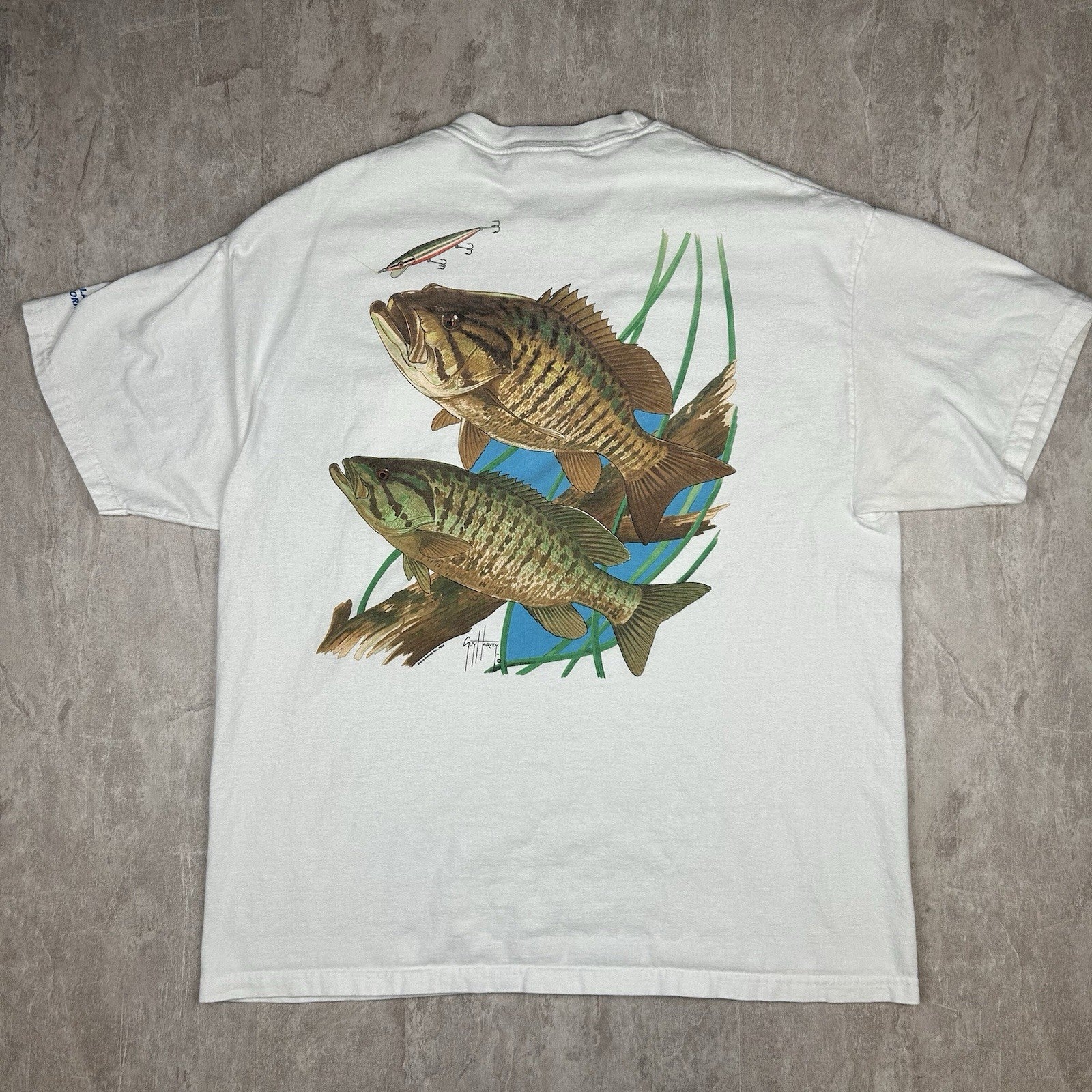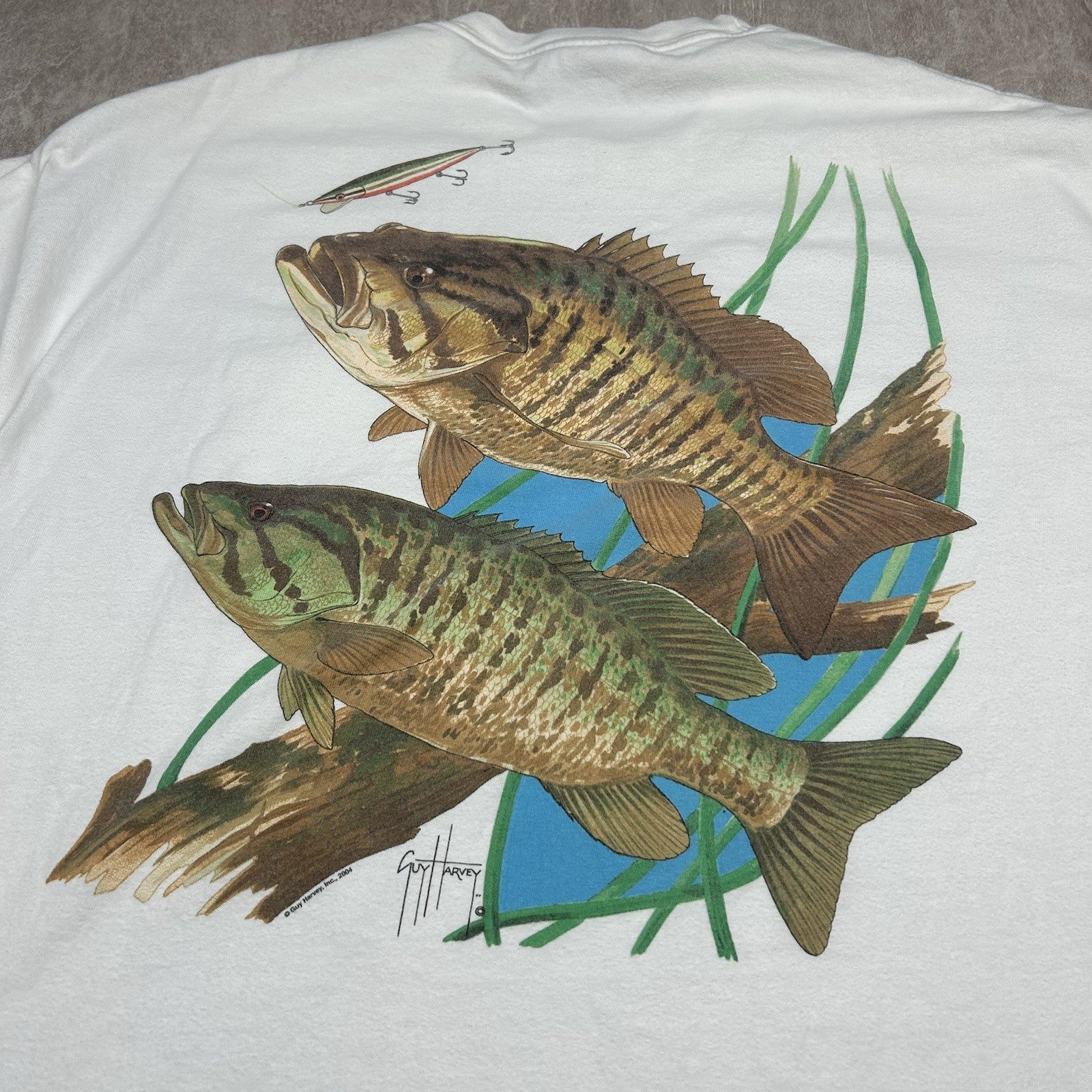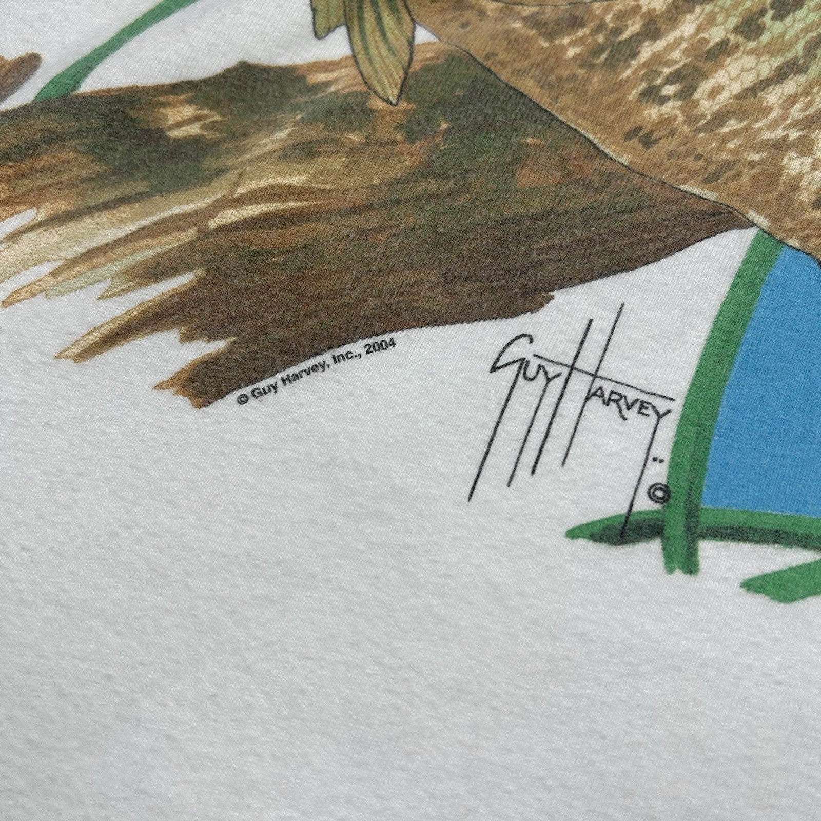 Vtg 2004 Guy Harvey T-Shirt Double Sided Bass Fishing White Men’s Size XL