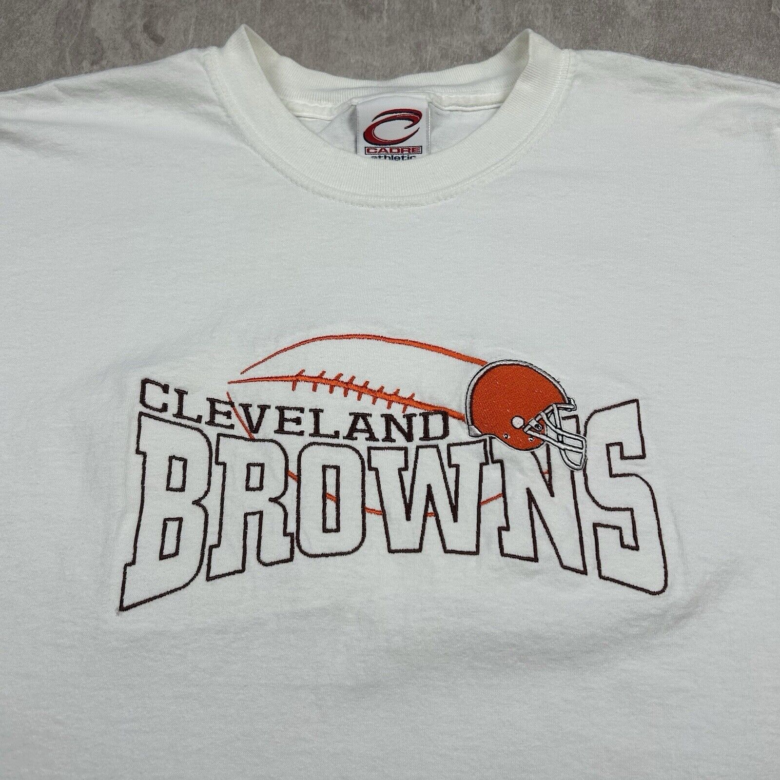 Vtg 90’s Cleveland Browns Cadre Athletic White Embroidered T-Shirt Men’s Size XL