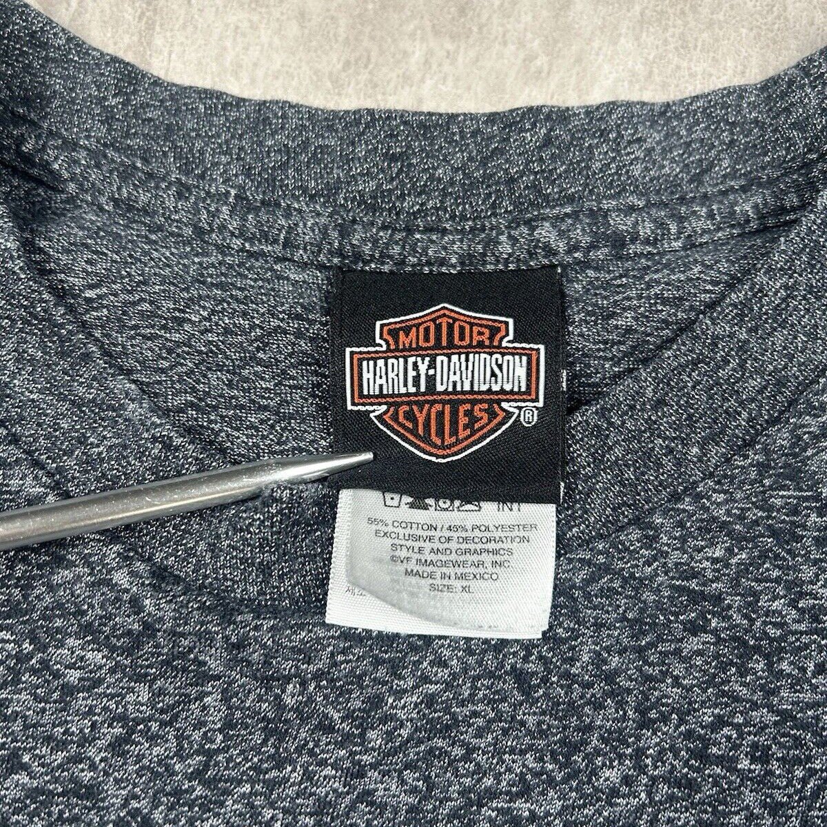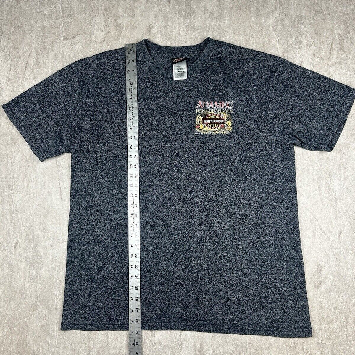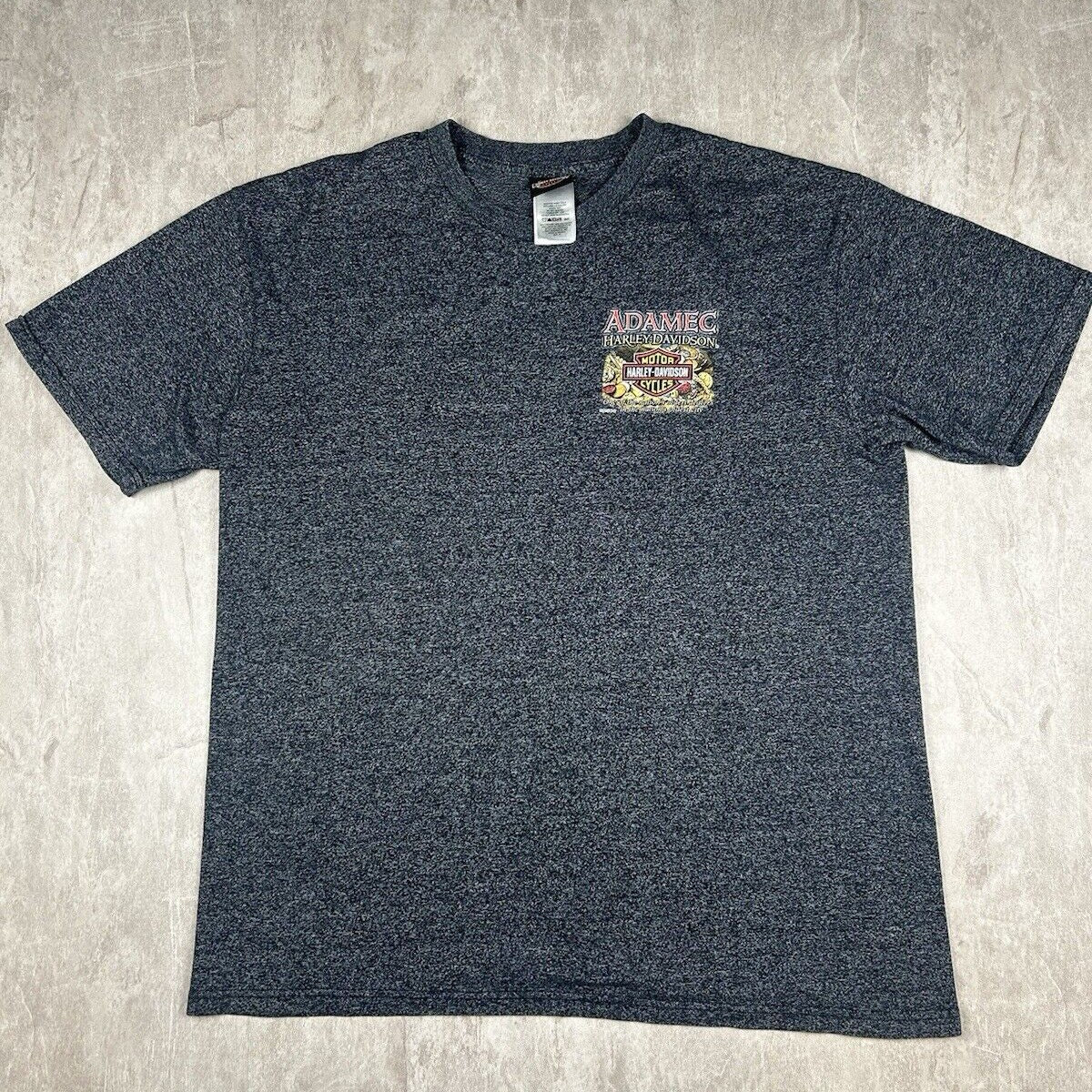 This 2015 Harley-Davidson T-Shirt, in men's size XL, features a bold graphic from Adamec Harley-Davidson in St. Augustine, Florida. The gray tee embodies the spirit of the open road, making it a perfect piece for bikers and Harley enthusiasts.