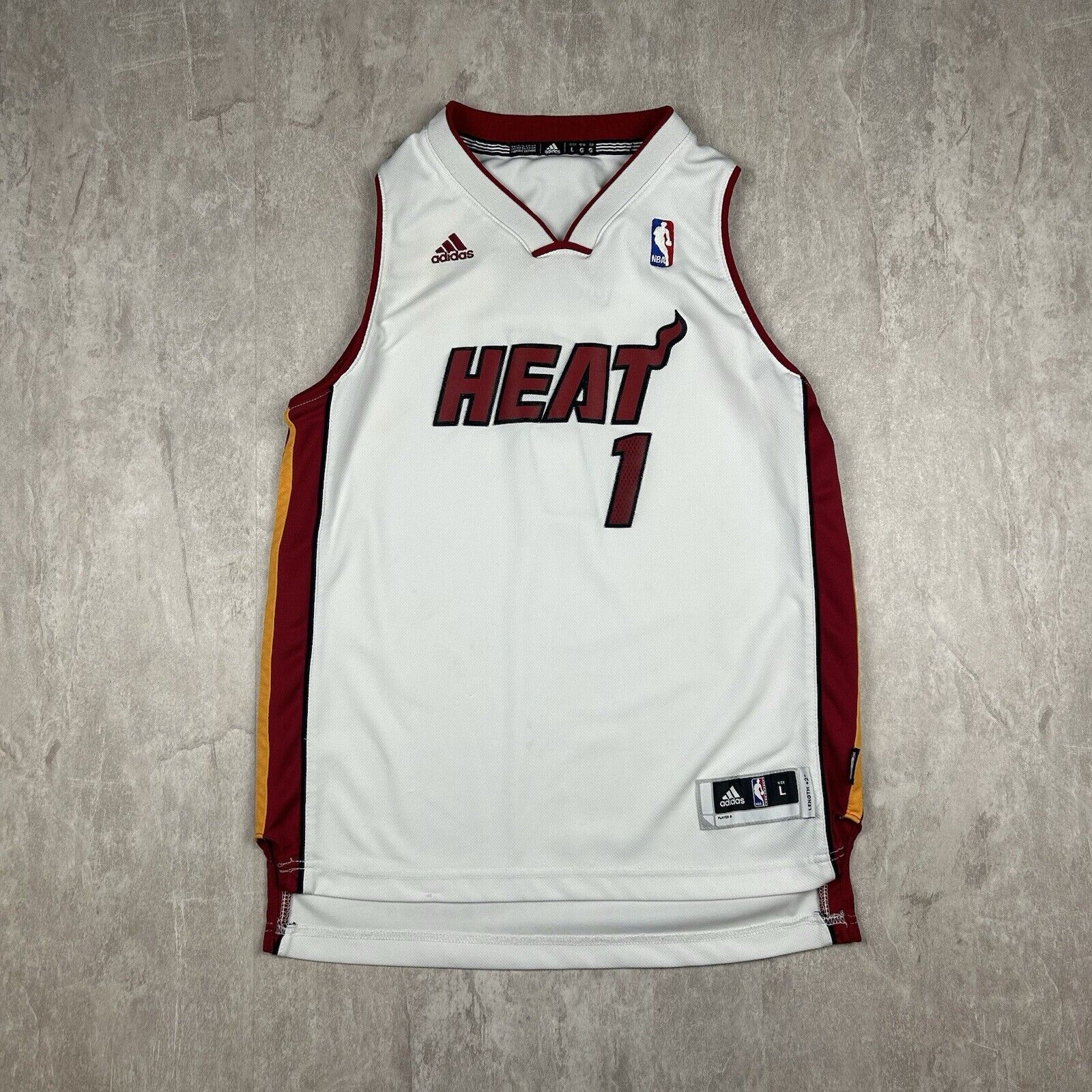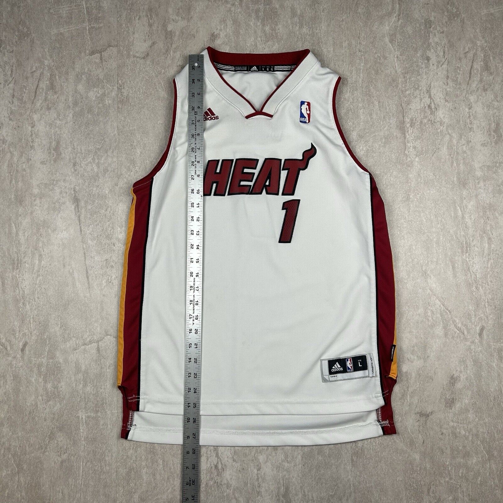 Adidas Miami Heat Chris Bosh White Basketball Sewn Jersey NBA Youth Size L