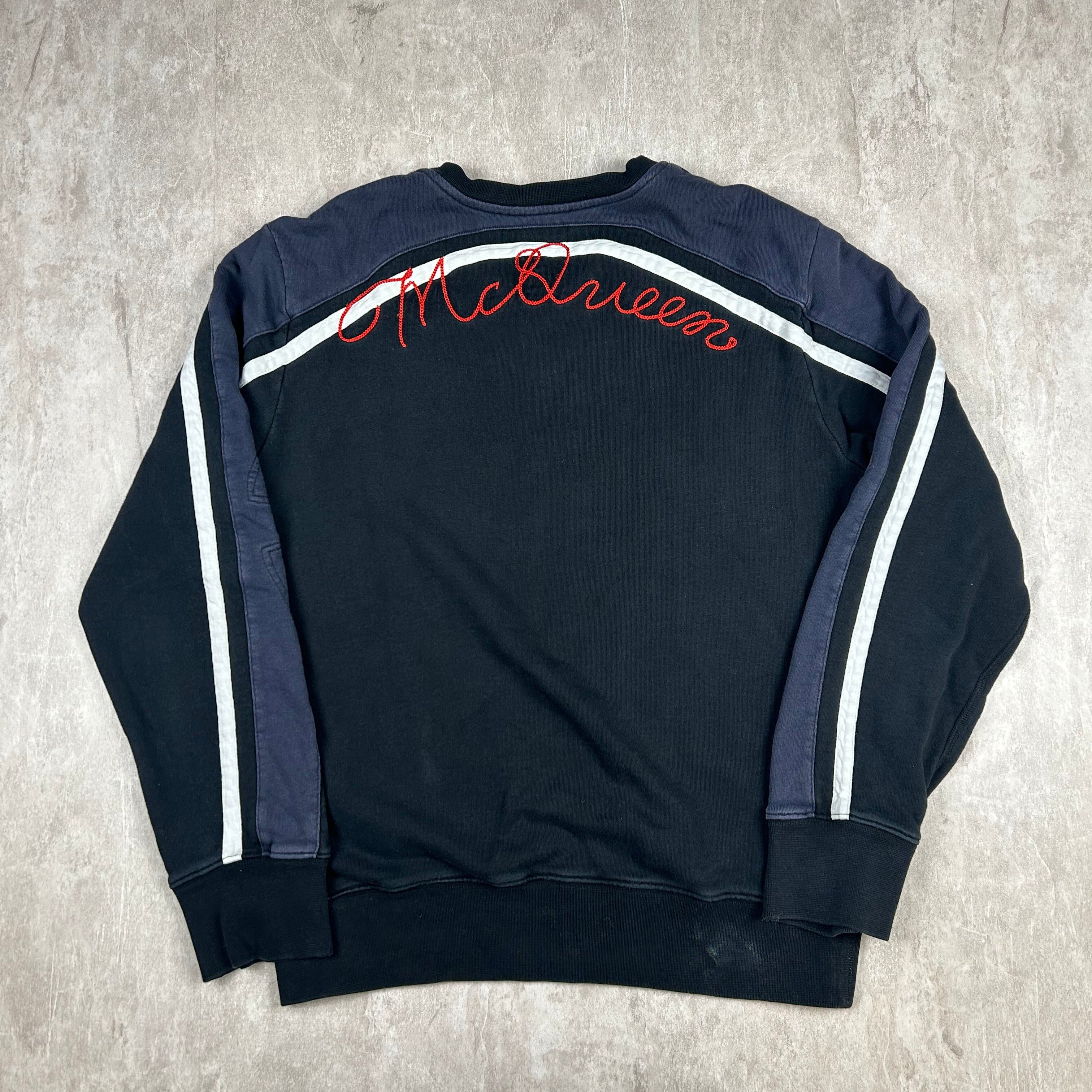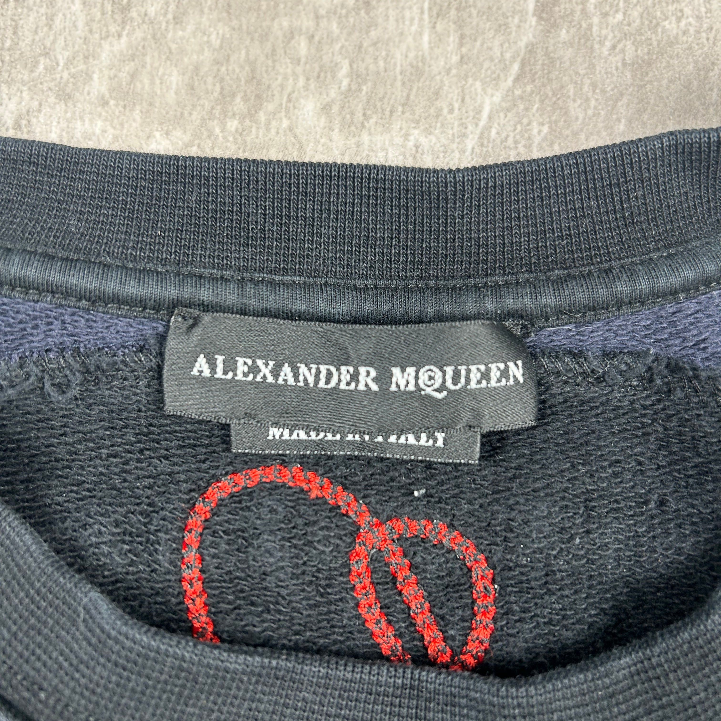 Alexander McQueen Crewneck Sweater Men’s Size L Black Blue Embroidered 2018