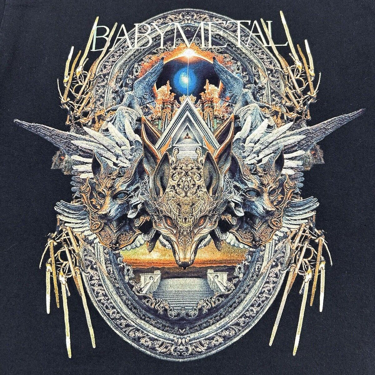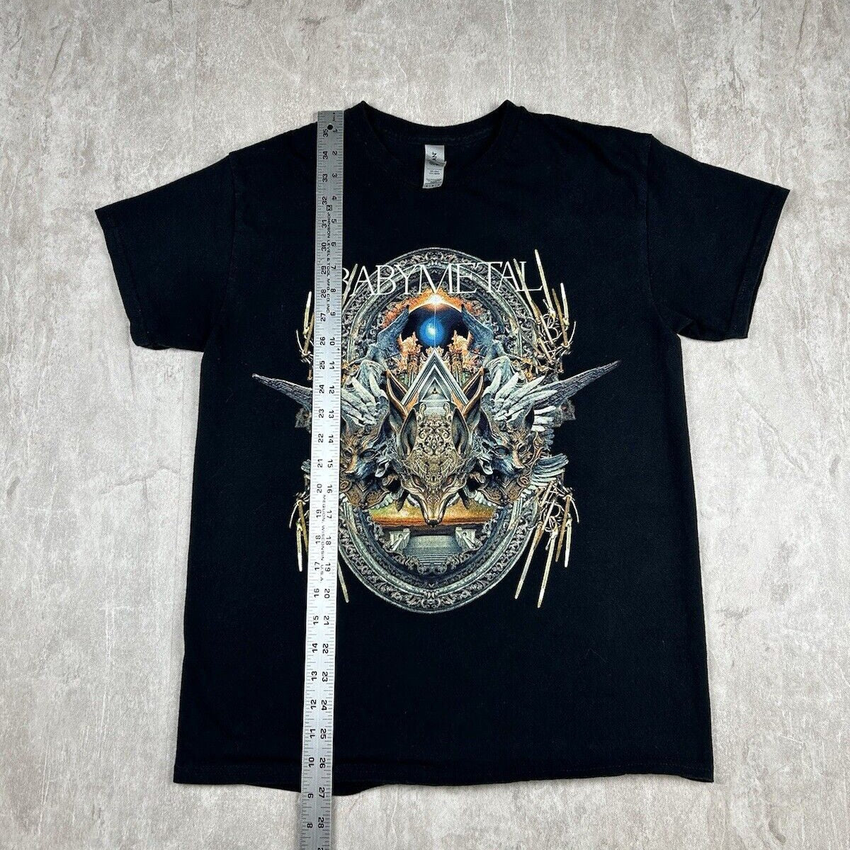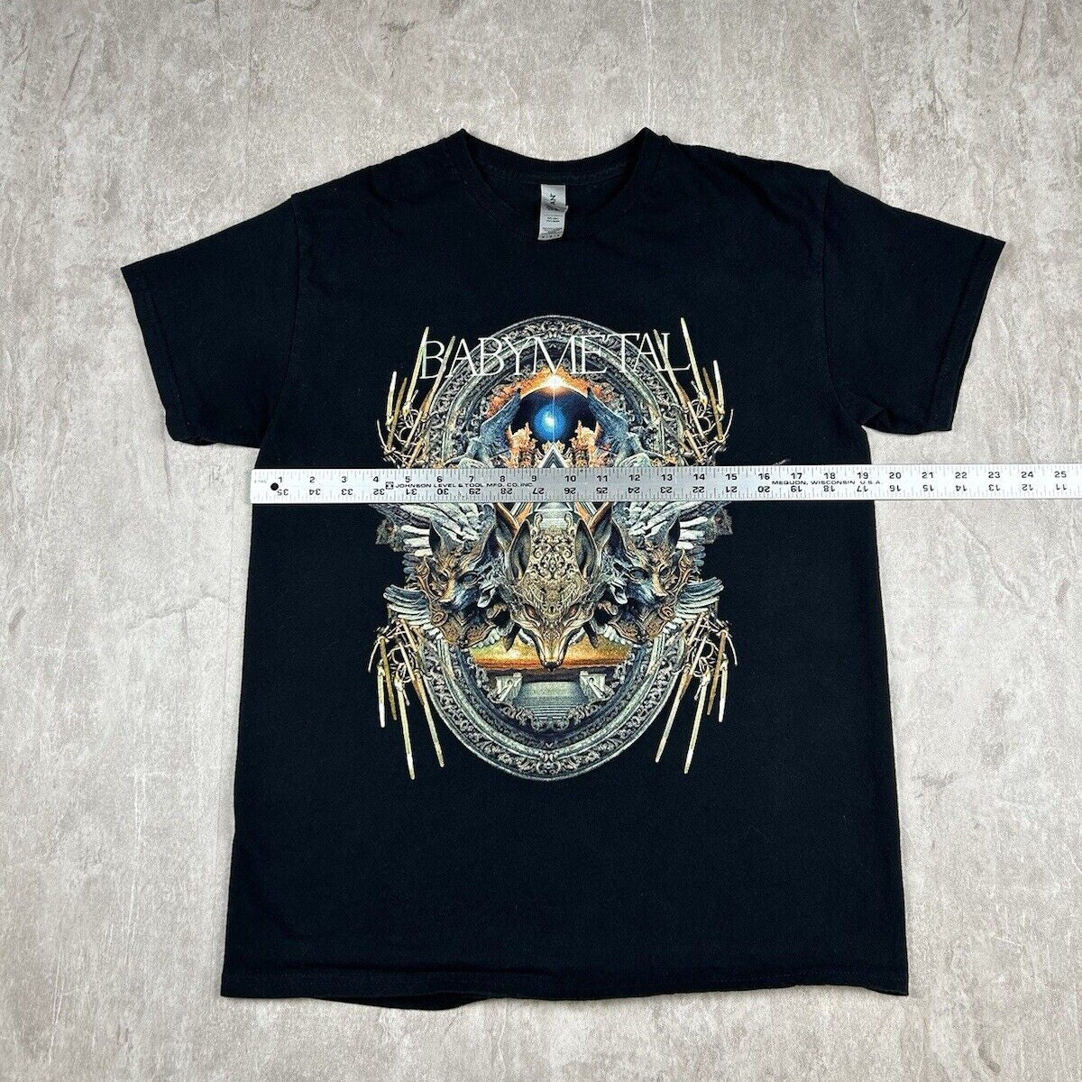 This Babymetal 2023 Tour Black T-Shirt, in men's size M, features a striking double-sided design celebrating the Babyklok America tour. Perfect for fans, it offers a bold way to showcase your love for the iconic metal band.