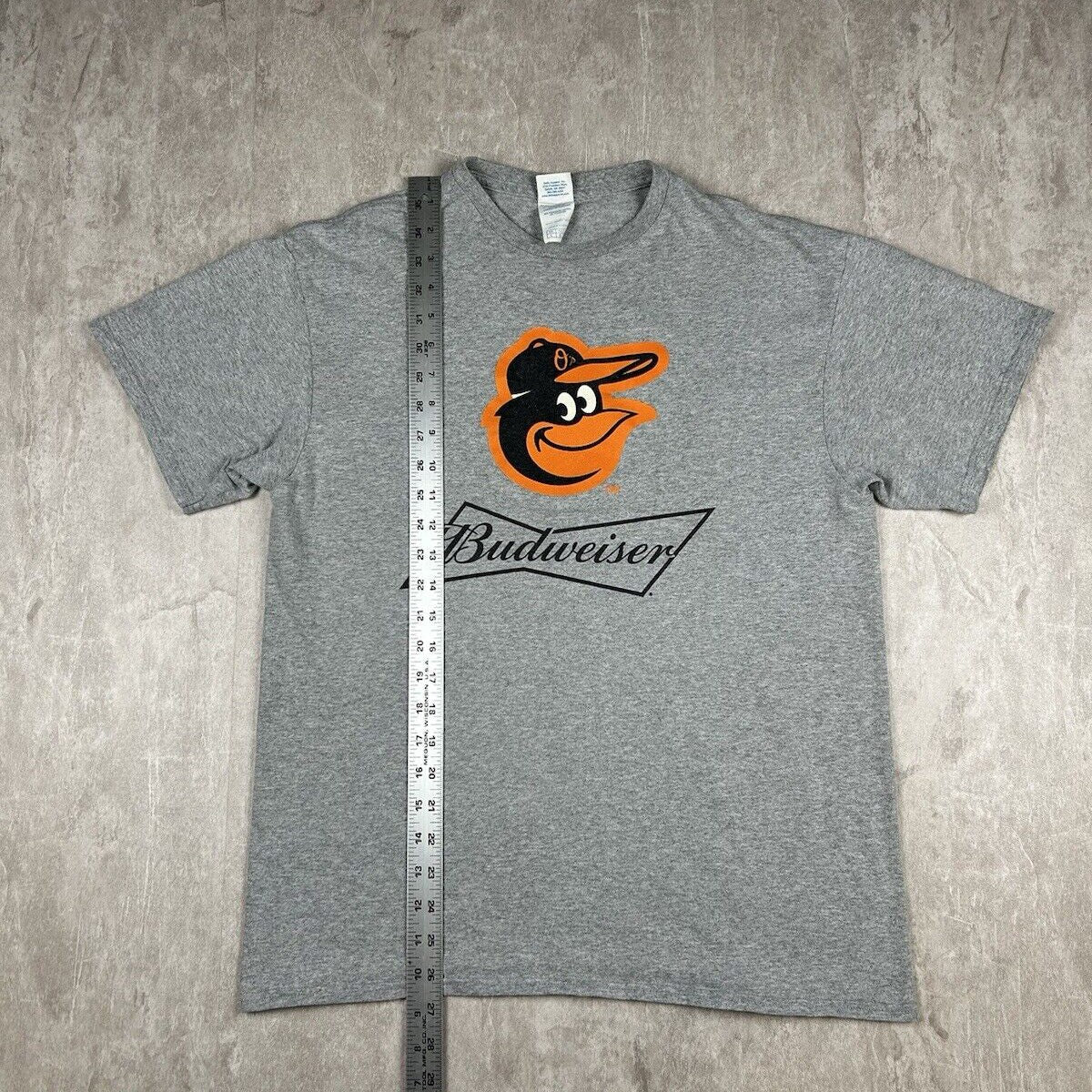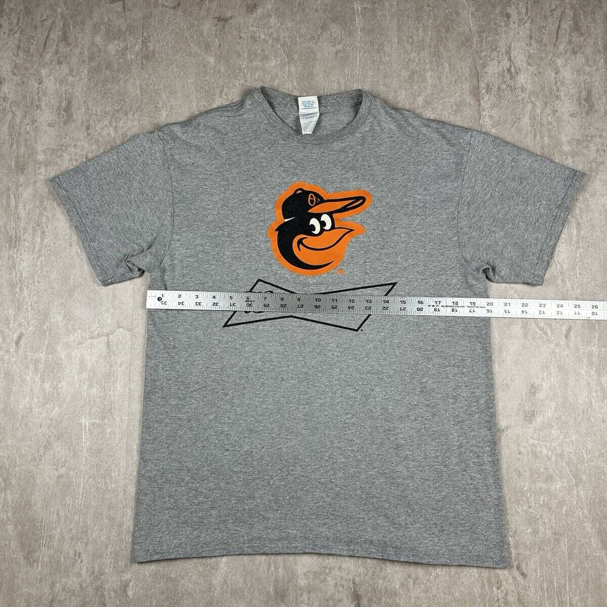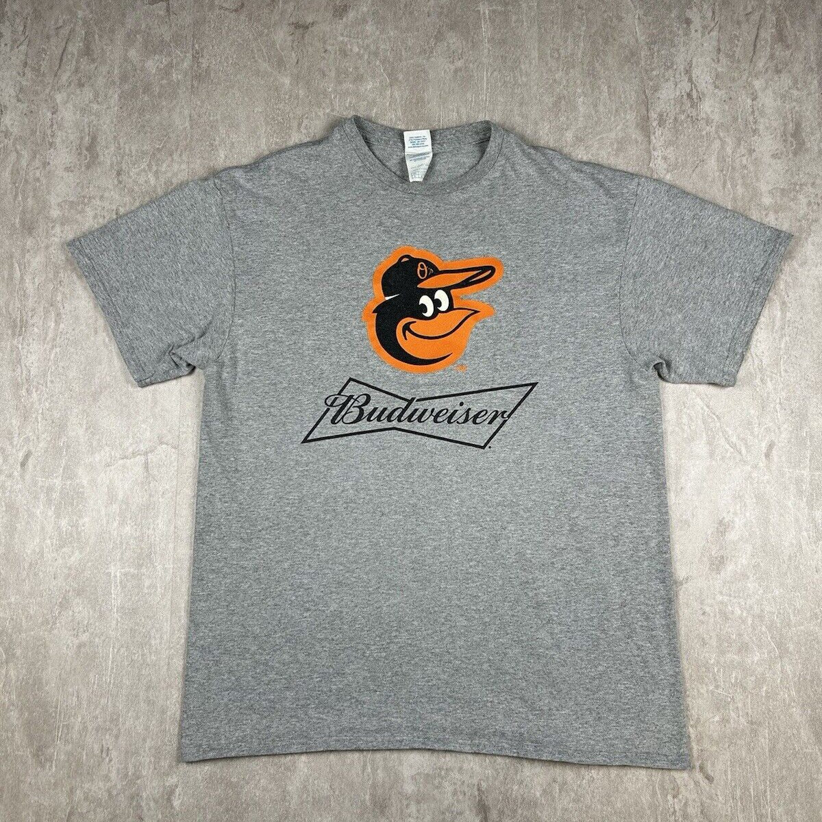 This Baltimore Orioles Budweiser Promo Gray Graphic T-Shirt, in men’s size L, features a bold MLB logo and a unique promotional design. Made from soft, high-quality fabric, it’s perfect for showcasing your team spirit and enjoying casual comfort.