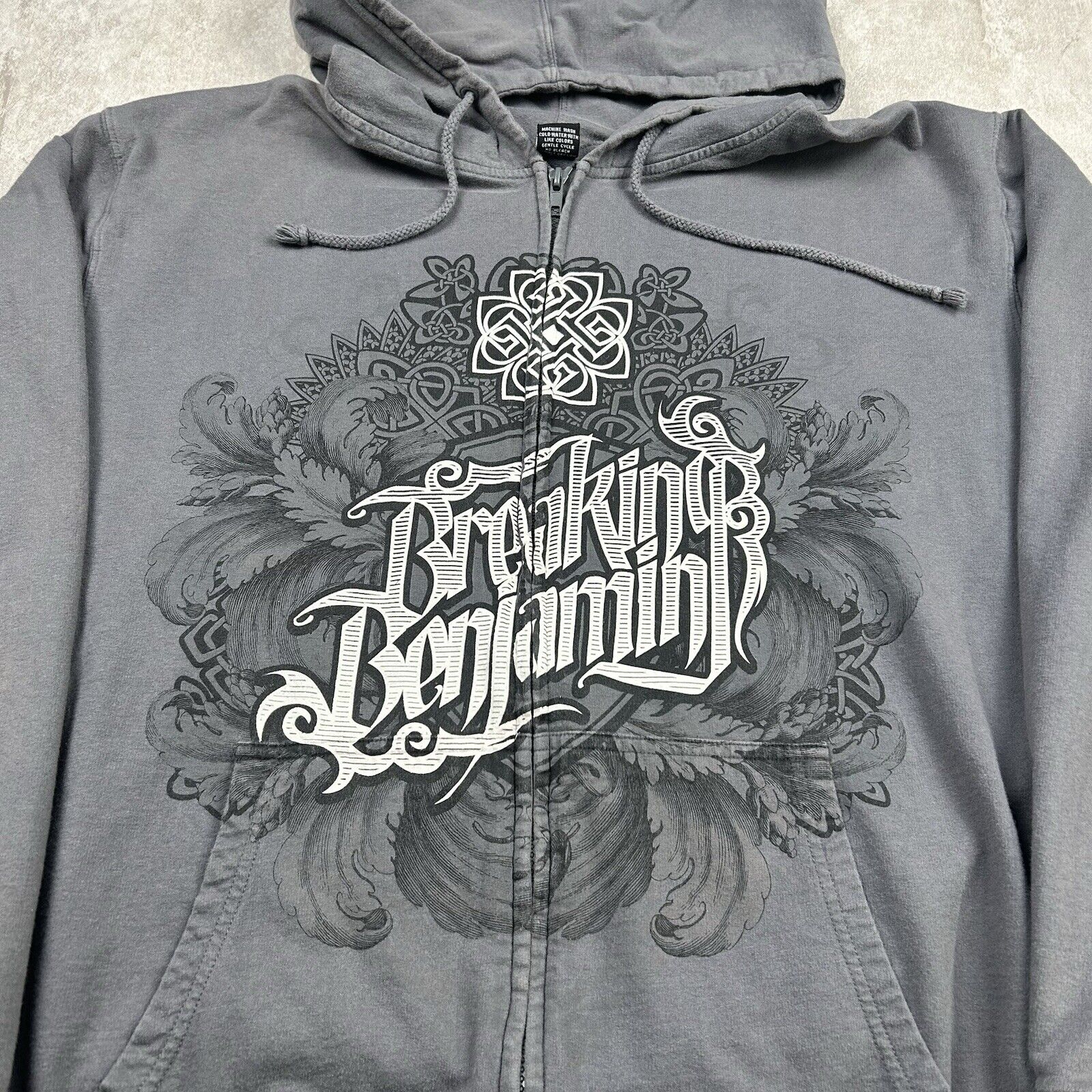 Rock out in style with this Breaking Benjamin zip-up hoodie sweatshirt in Men's Size XL. Featuring a bold band design, it's perfect for fans of rock and metal music looking to showcase their favorite band.