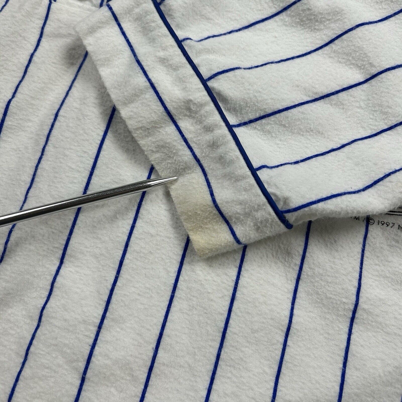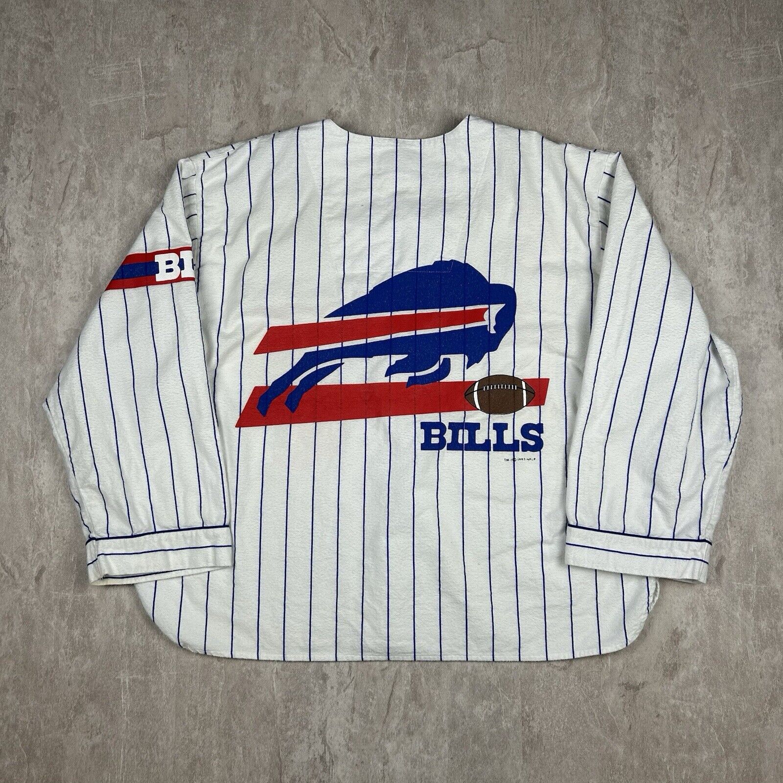 This Buffalo Bills Esleep pajama set in unisex size Large features a classic white pinstripe design with team logos, including both top and bottom pieces. Perfect for cozy nights or game-day lounging, this set combines comfort with Bills pride. A great addition for any Buffalo Bills fan looking to show team spirit even in their sleepwear!