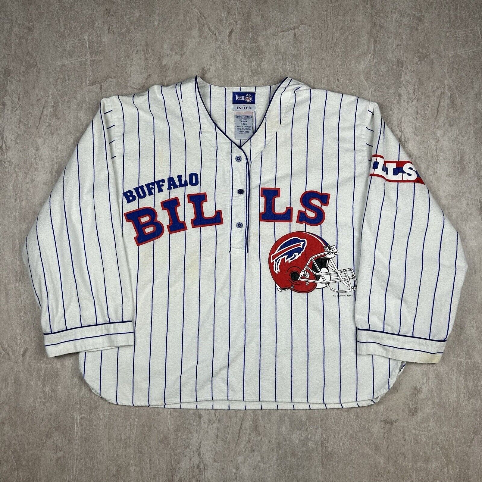 Buffalo Bills Esleep Pajama Set White Pinstripe Top Bottom Unisex Size Large