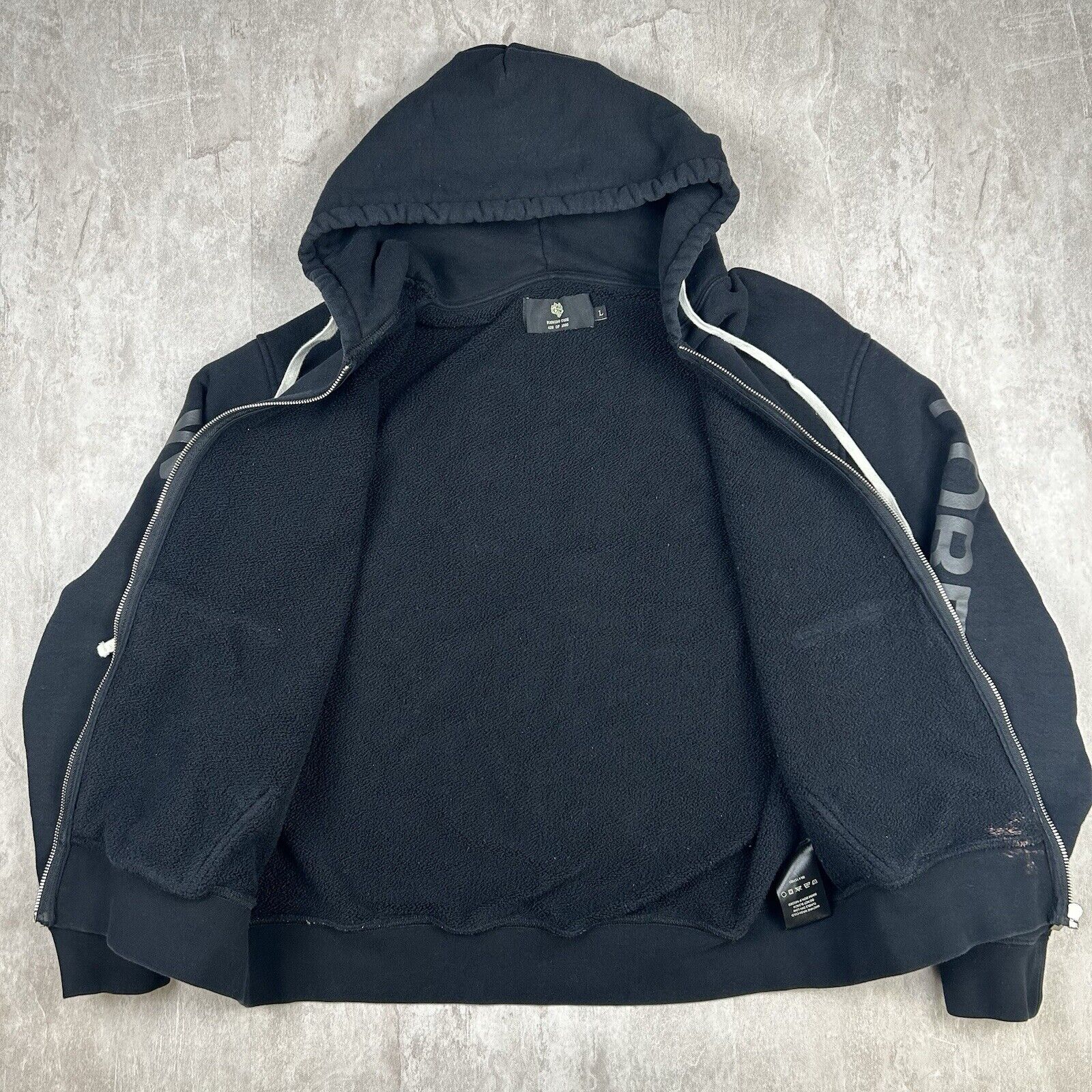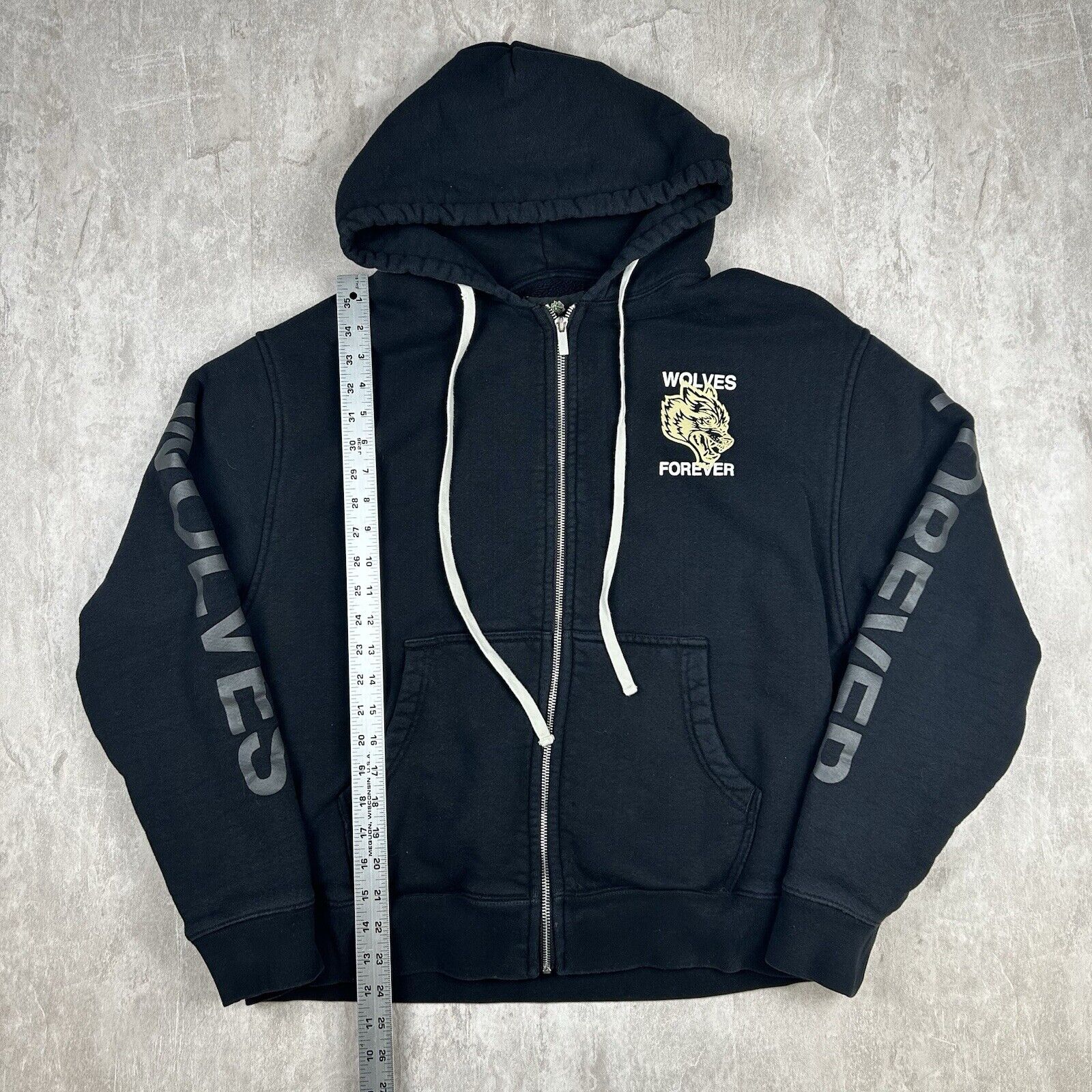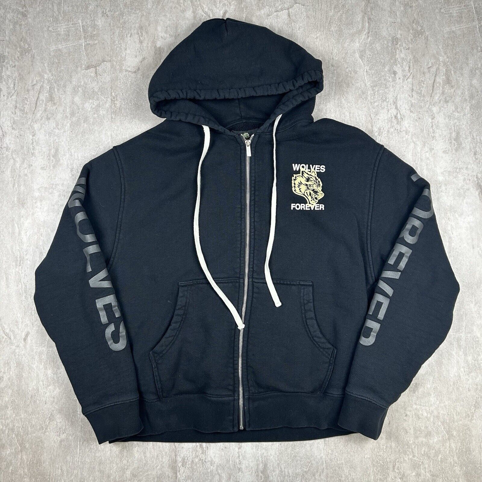 Stand out in the gym with this Darc Sport Wolves Forever Hoodie. In black, this men's size L hoodie is part of a limited edition release, numbered 428/1000. Featuring bold wolf graphics, it's the perfect piece for bodybuilding enthusiasts who want to embrace the strength and style of the pack.