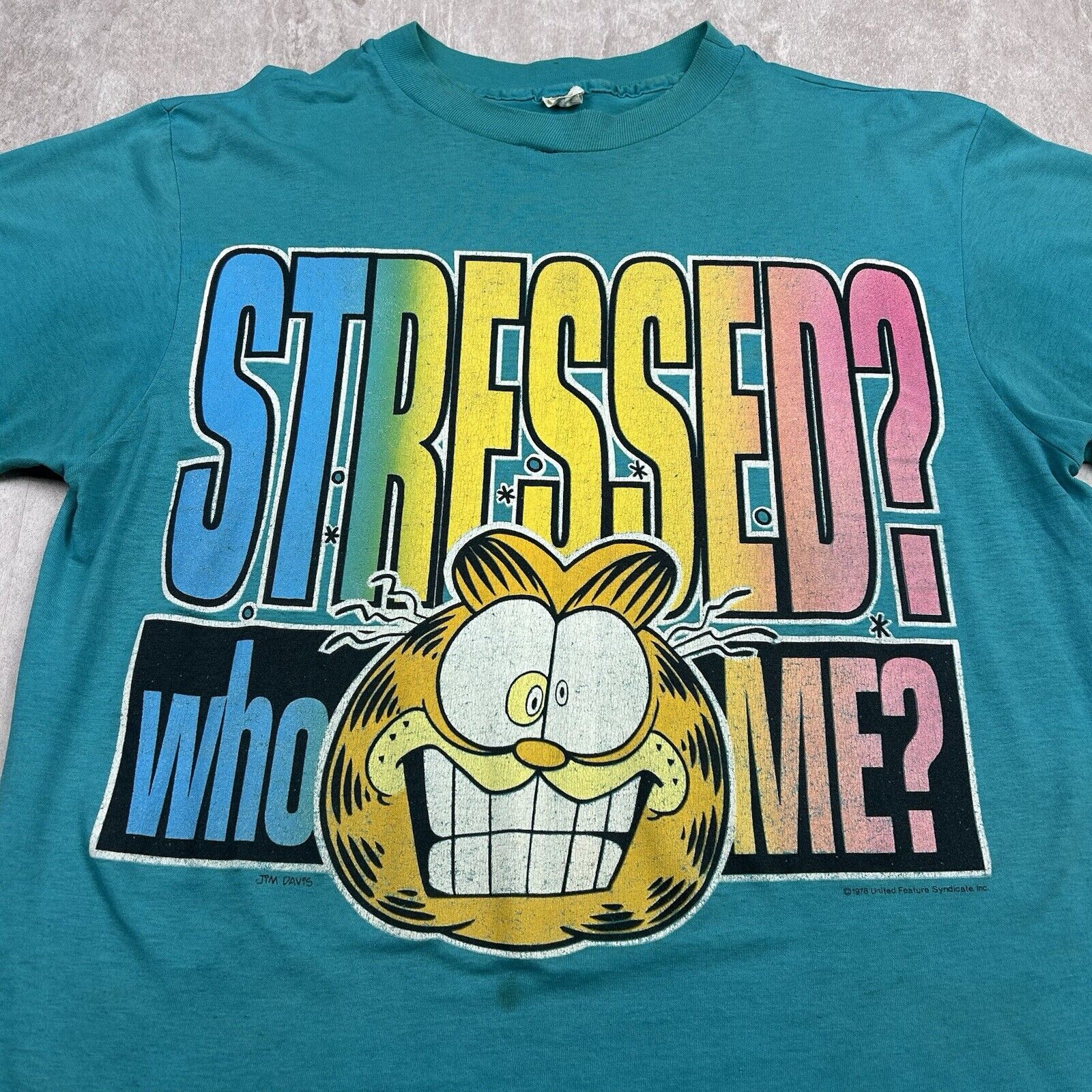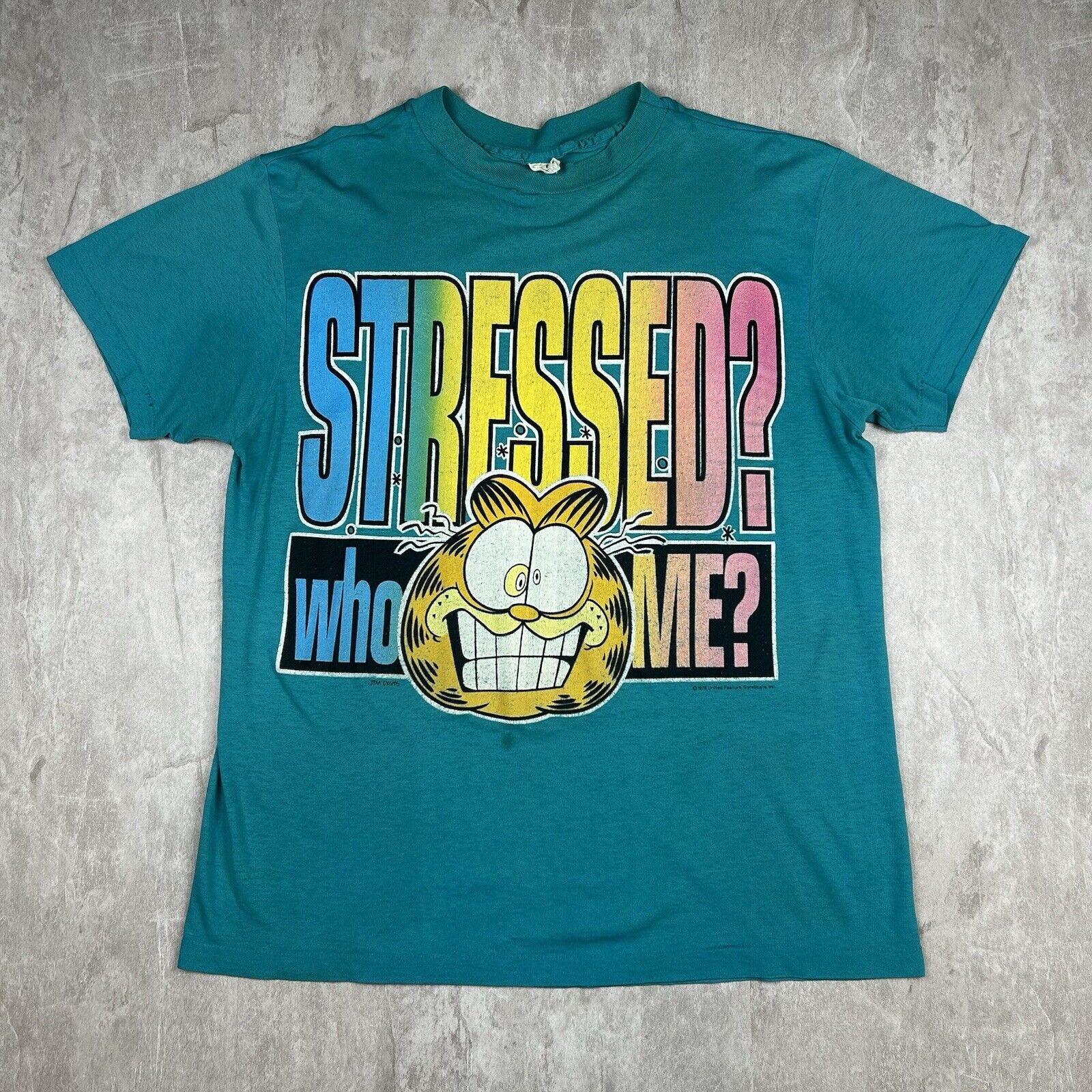 Distressed Vintage 1978 Garfield “Stressed Who Me?” T-Shirt Men’s Size XL