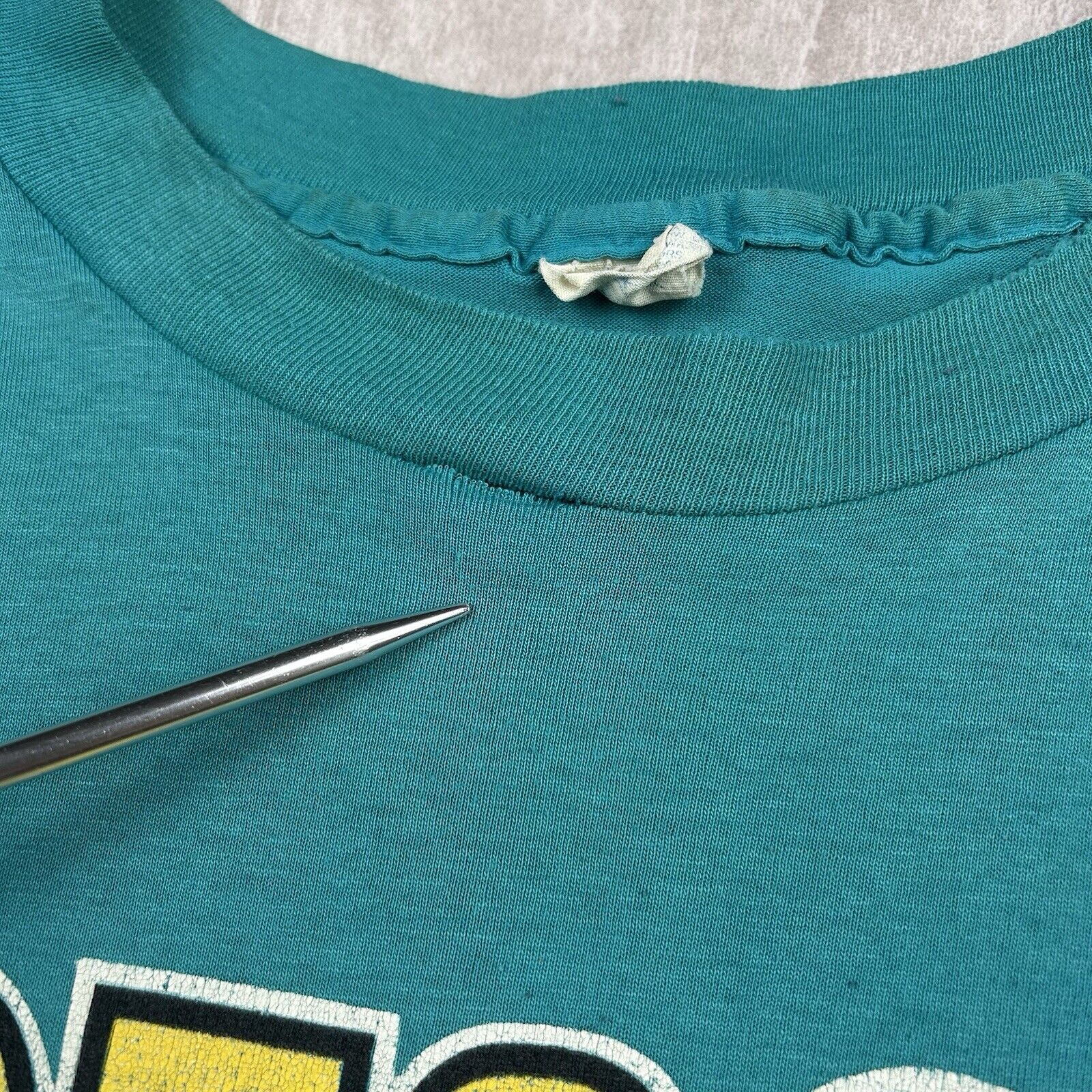This Distressed Vintage 1978 Garfield "Stressed Who Me?" T-Shirt in size XL features the iconic lasagna-loving cat with a playful, retro graphic. The distressed look adds a unique touch, making it a great piece for Garfield fans and vintage enthusiasts.