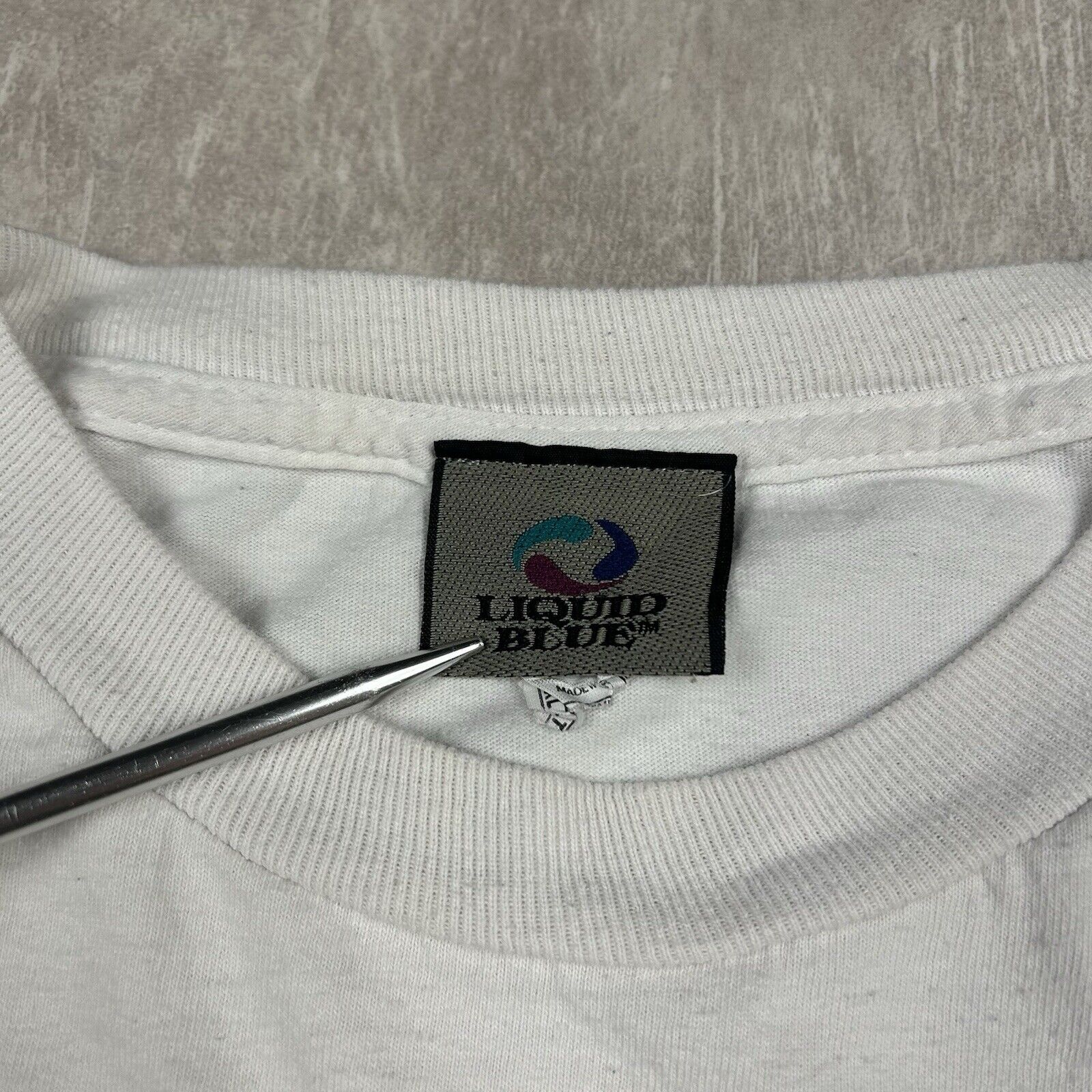 This Distressed Vintage 2009 Liquid Blue Grateful Dead "Bertha" T-Shirt in size 3XL features a bold, iconic graphic of the legendary band's "Bertha" artwork. Perfect for Grateful Dead fans and collectors of vintage concert merchandise, it combines a laid-back style with rock ‘n' roll nostalgia.