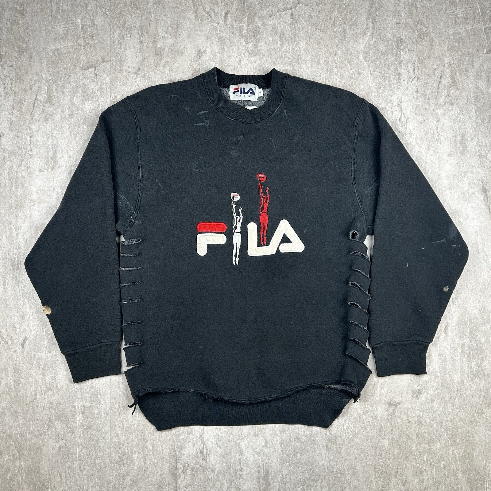 Distressed Vintage Fila Basketball Embroidered Crewneck Sweatshirt Men’s Size L