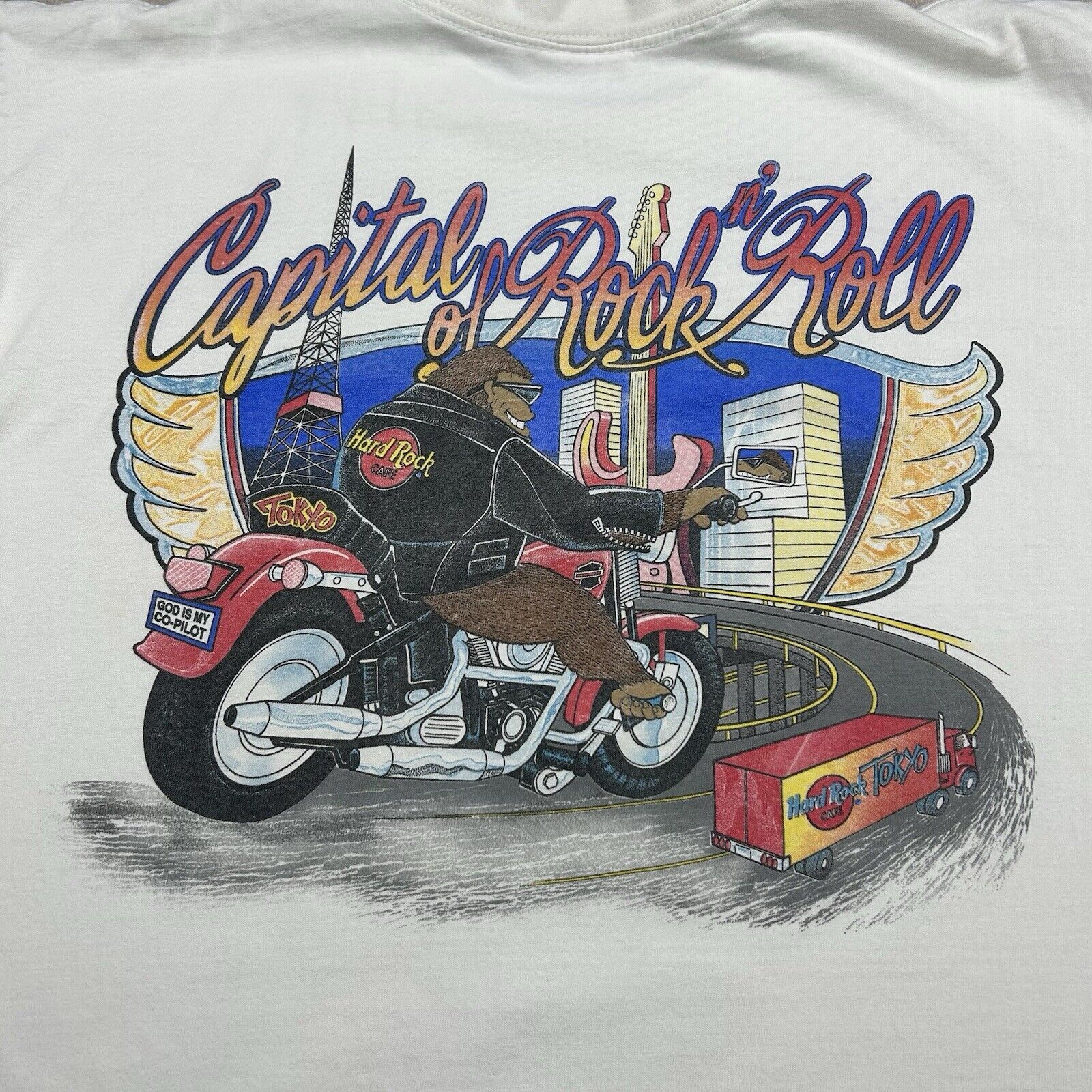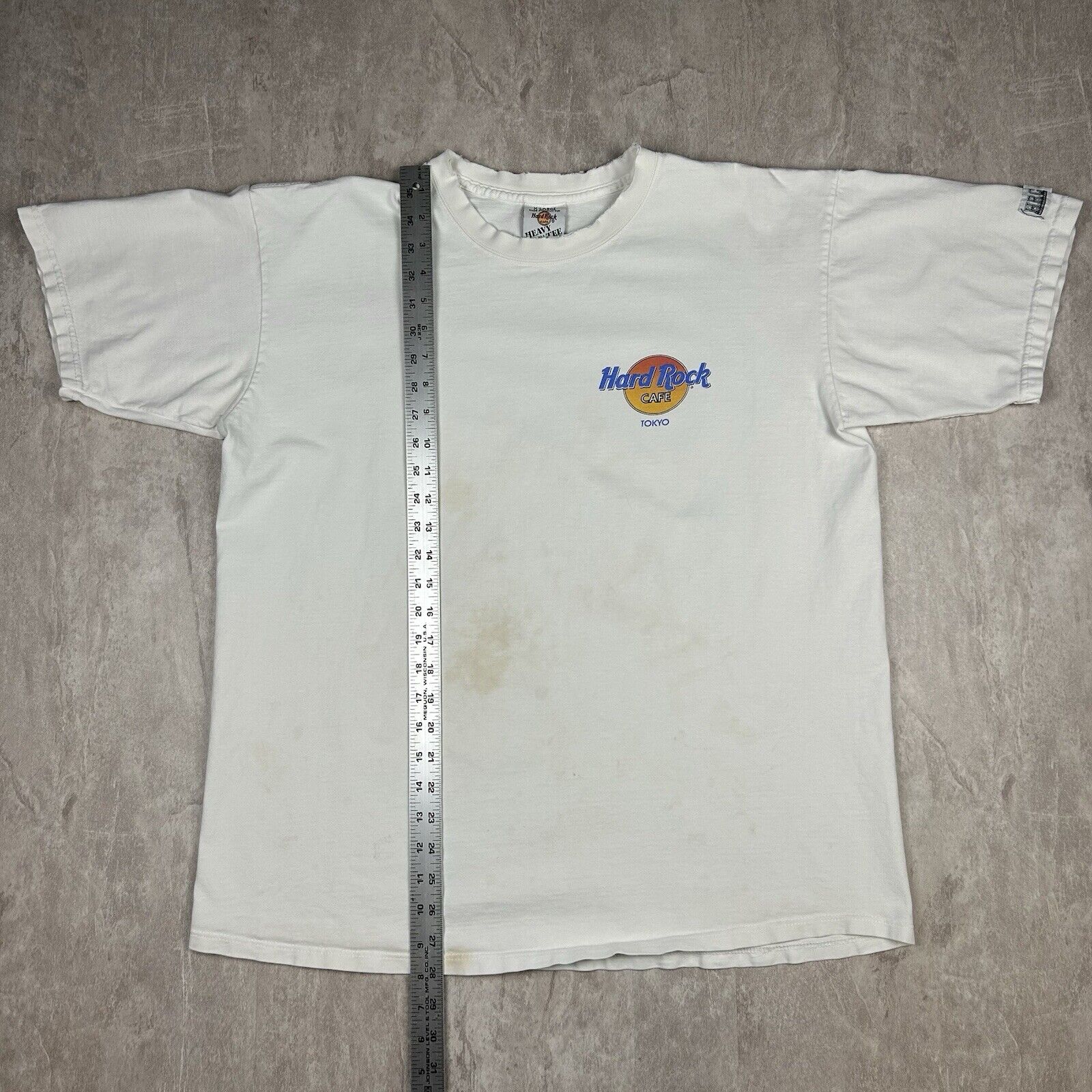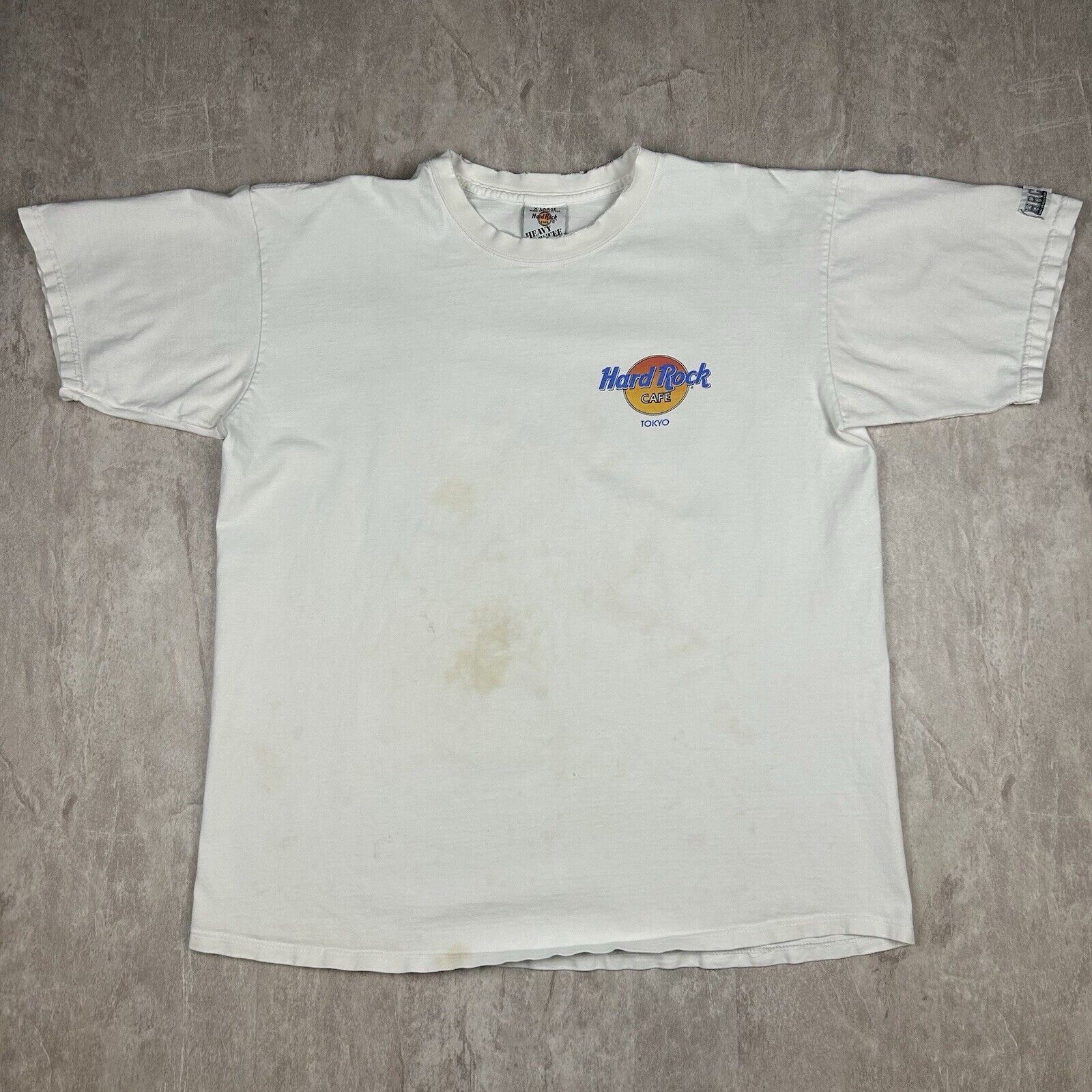 Distressed Vtg Hard Rock Cafe Rock and Roll Capitol Tokyo White T-Shirt Men’s XL