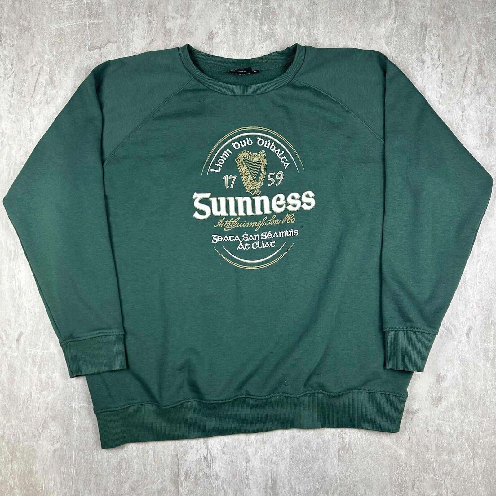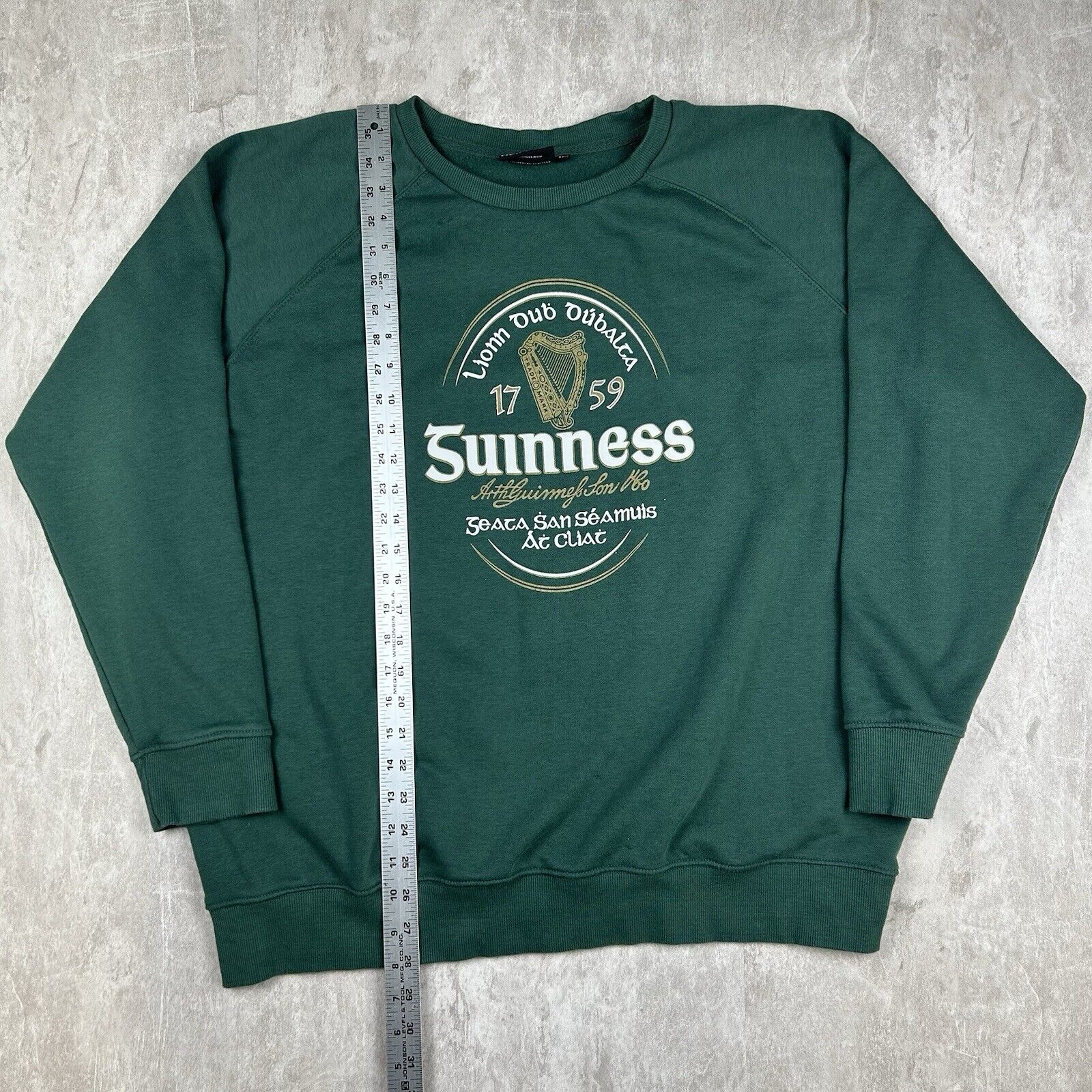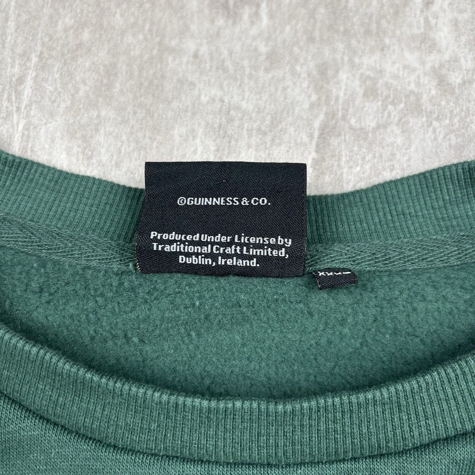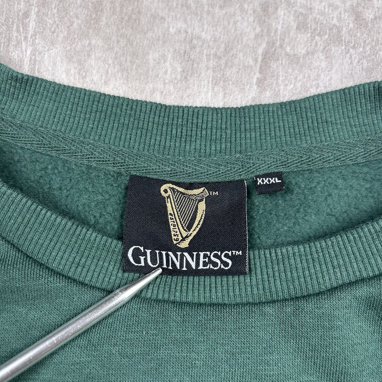 This Guinness Crewneck Sweatshirt in size 3XL features a rich green Irish-inspired design with a Gaelic label accent. A perfect blend of comfort and heritage, it's ideal for fans of the iconic beer and Irish culture.