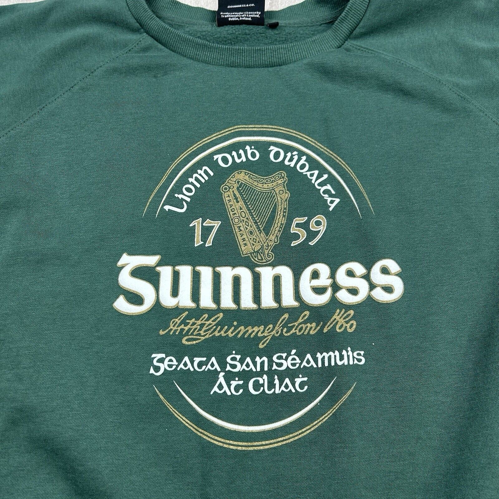 Guinness Sweatshirt Crewneck Green Irish Design Gaelic Label Men’s Size 3XL