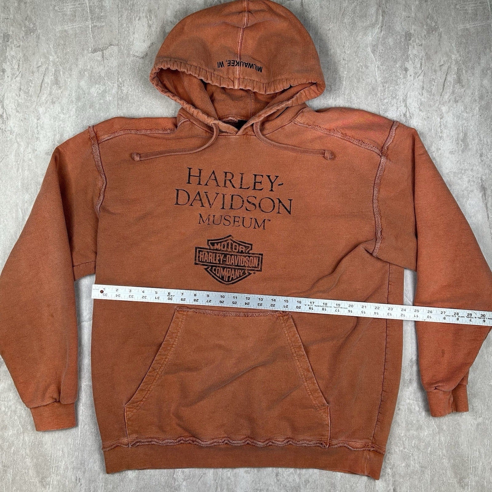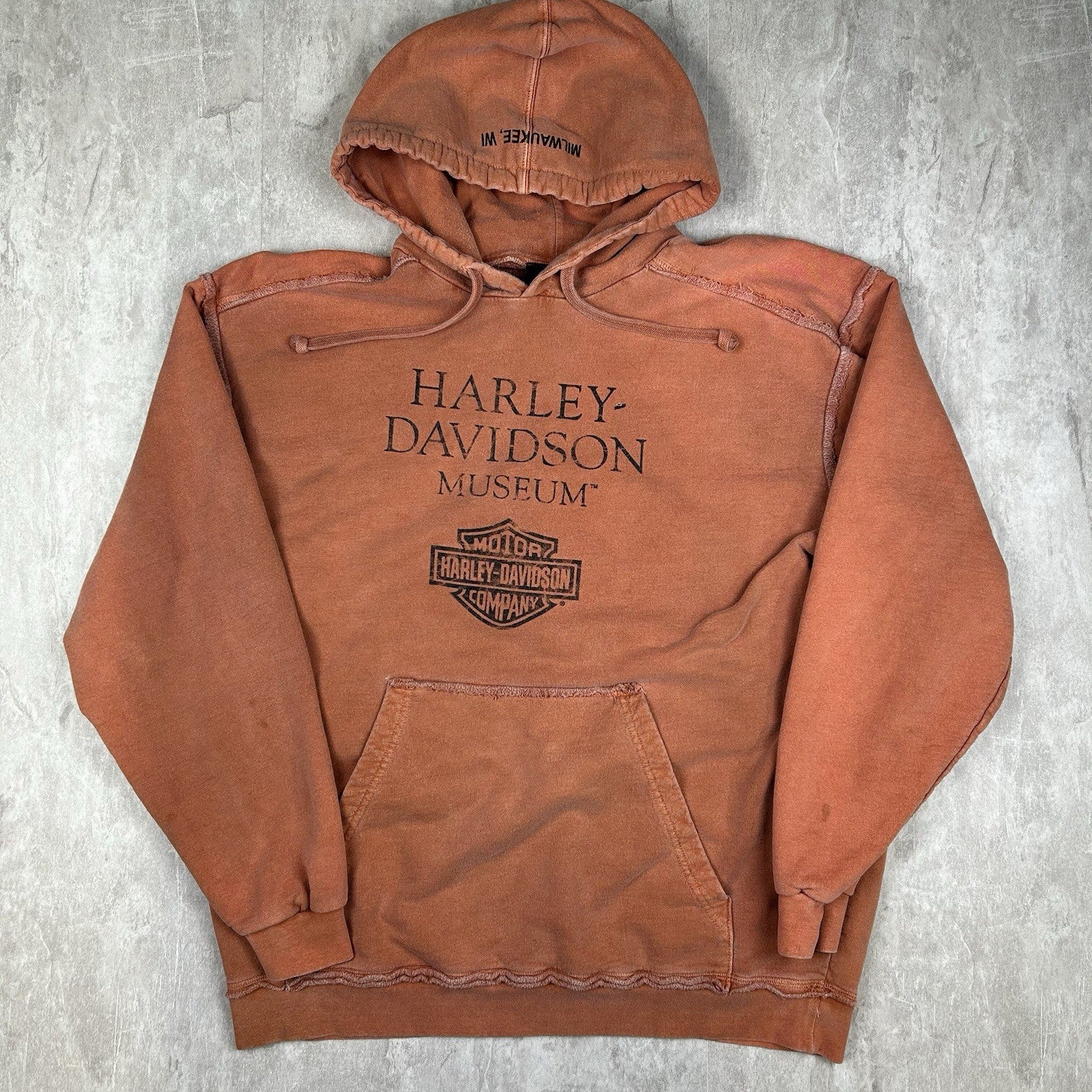 Bold and iconic, this Harley-Davidson Museum hoodie delivers classic motorcycle style in bright orange. Featuring museum graphics and heavyweight comfort, it's built for Harley fans and collectors alike. Men's size XL.