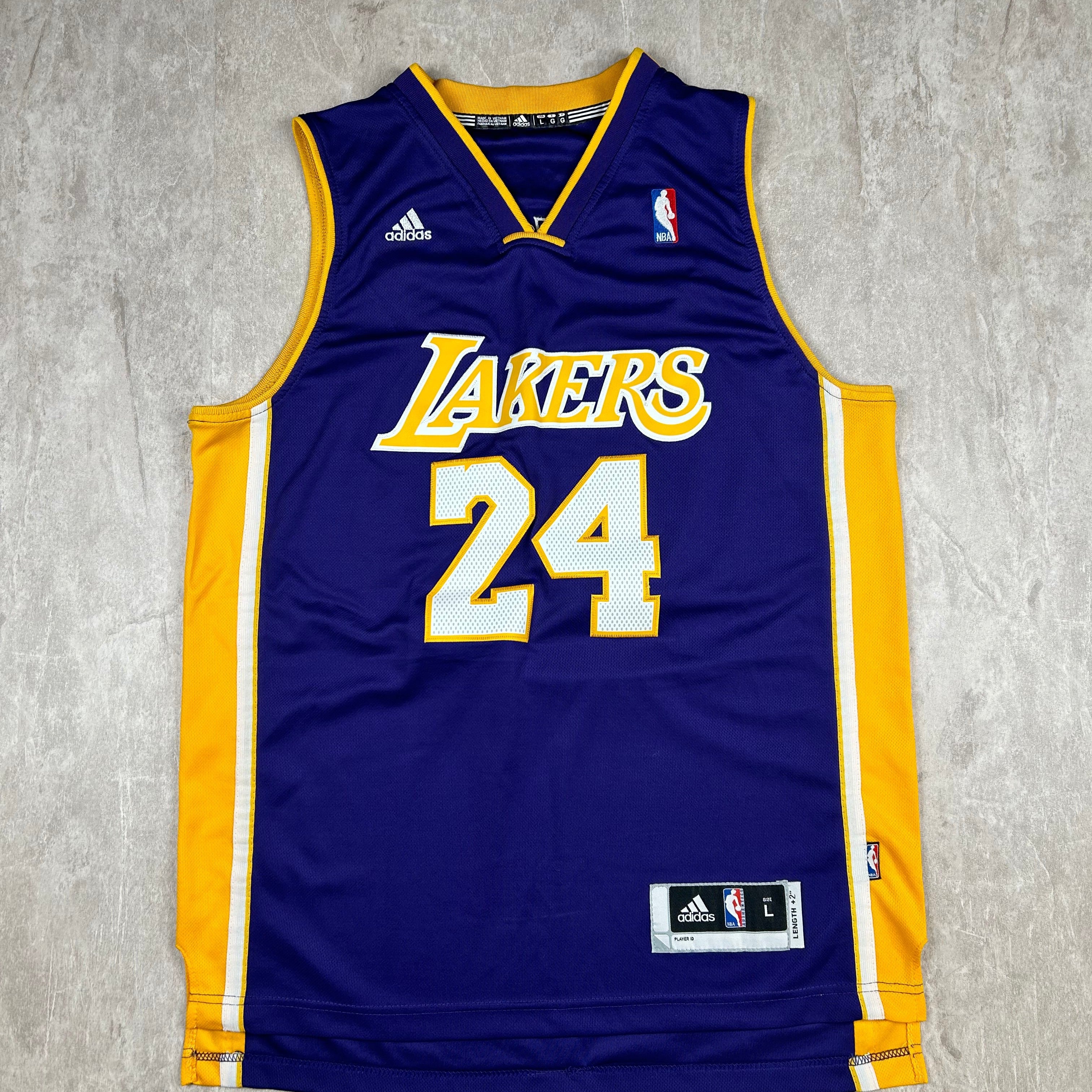 Kobe Bryant NBA Lakers Adidas Jersey 24 Purple White Yellow Men’s Size L +2”