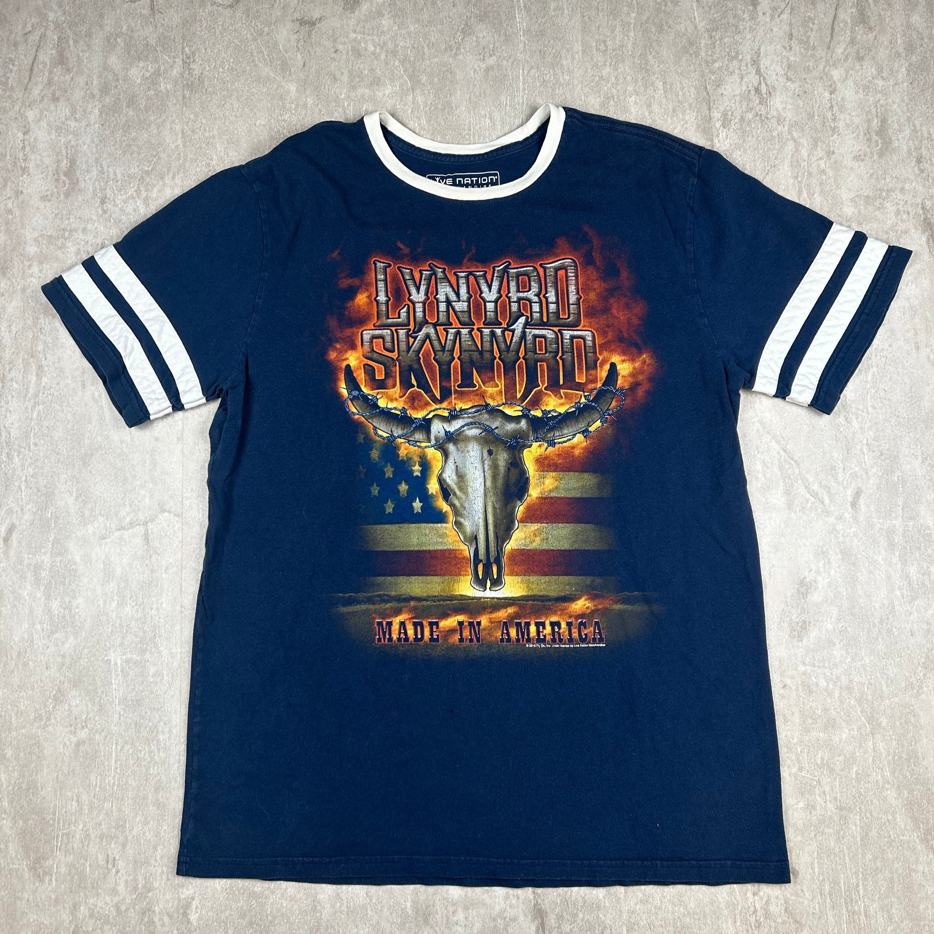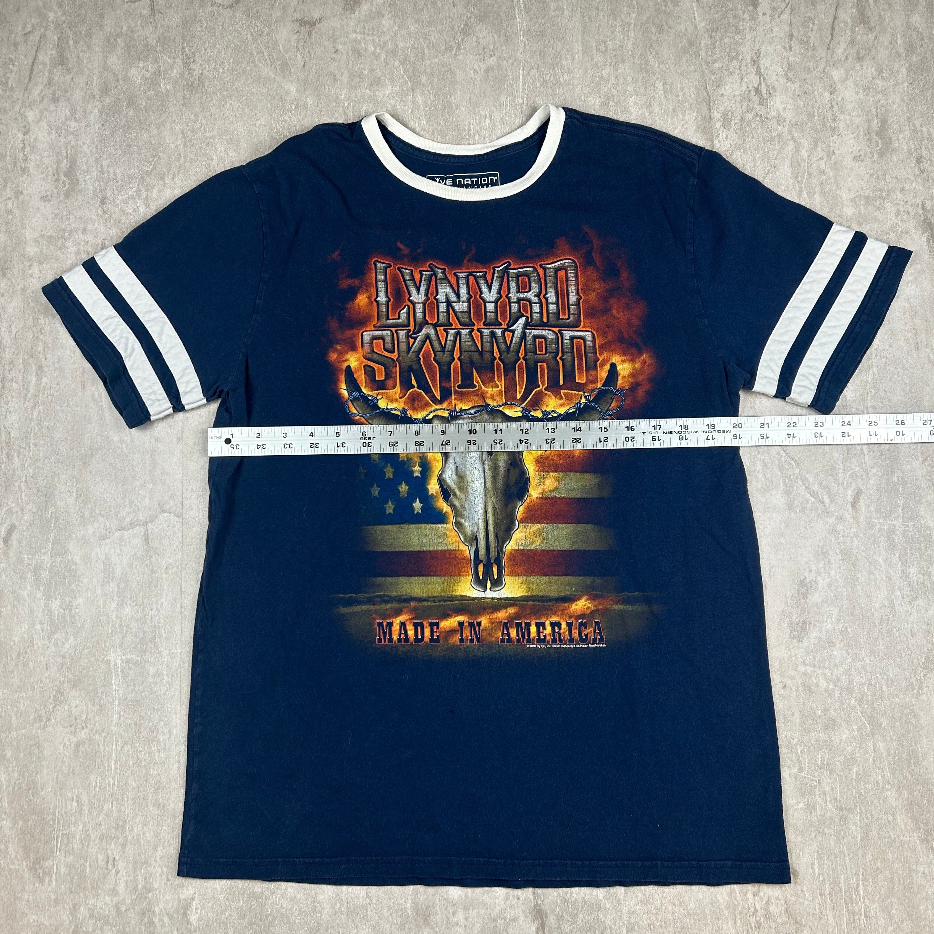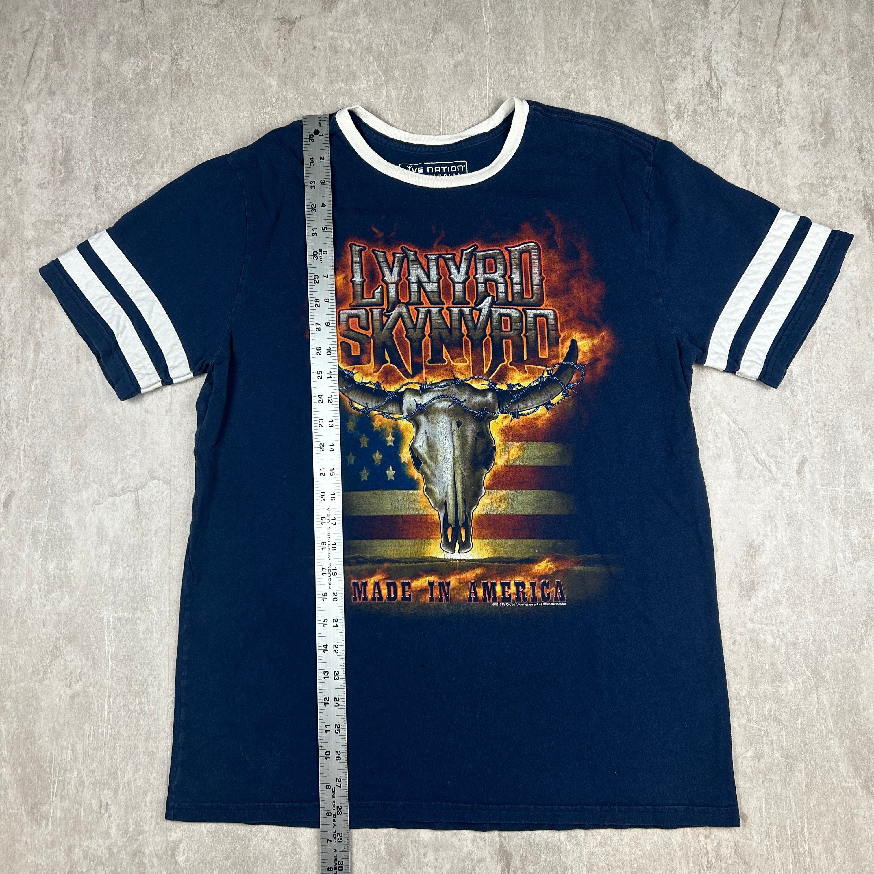 Celebrate rock legends with our Lynyrd Skynyrd Made in America T-Shirt. This Live Nation tour tee in men's size XL features bold concert graphics, making it a must-have for fans and collectors of classic rock memorabilia.