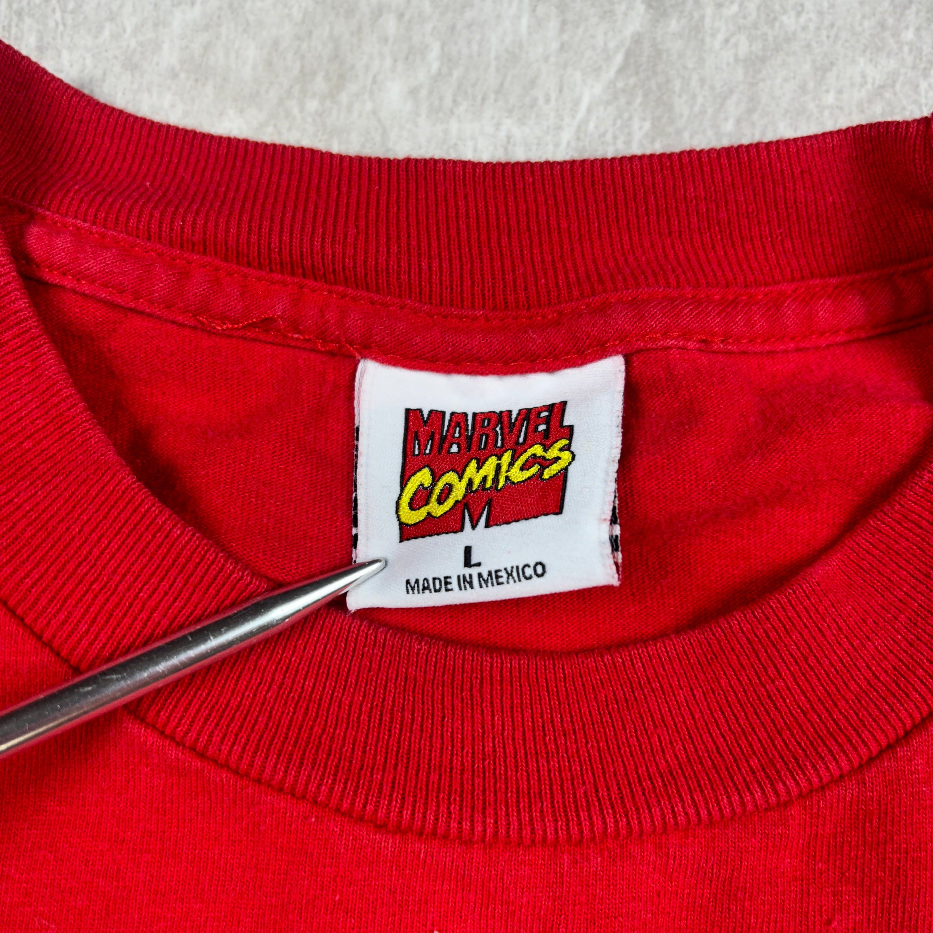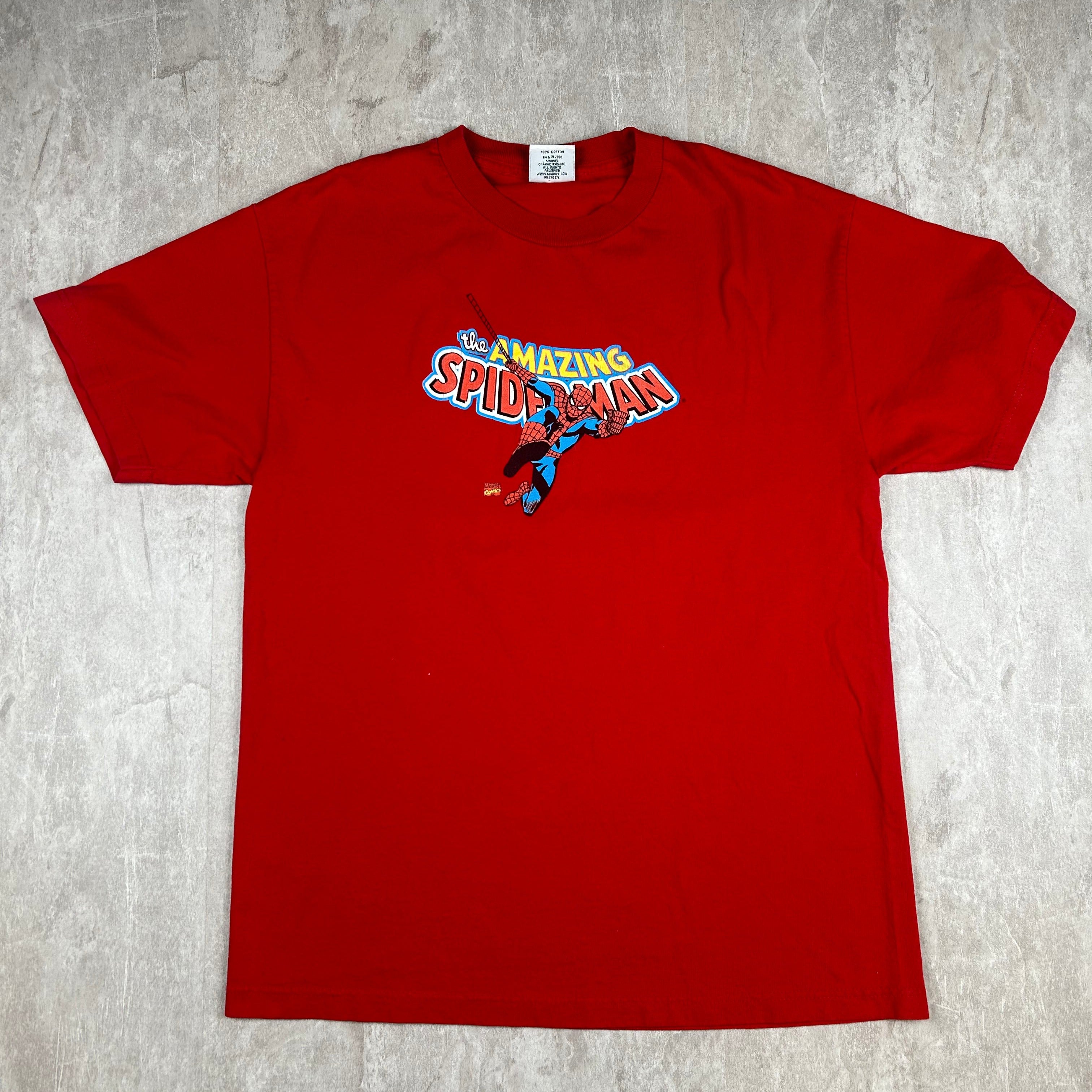 Show your superhero spirit with our Marvel Comics The Amazing Spider-Man 2006 Graphic T-Shirt. This red men’s size L tee features vibrant Spider-Man artwork, making it a must-have for comic book fans and Marvel enthusiasts.