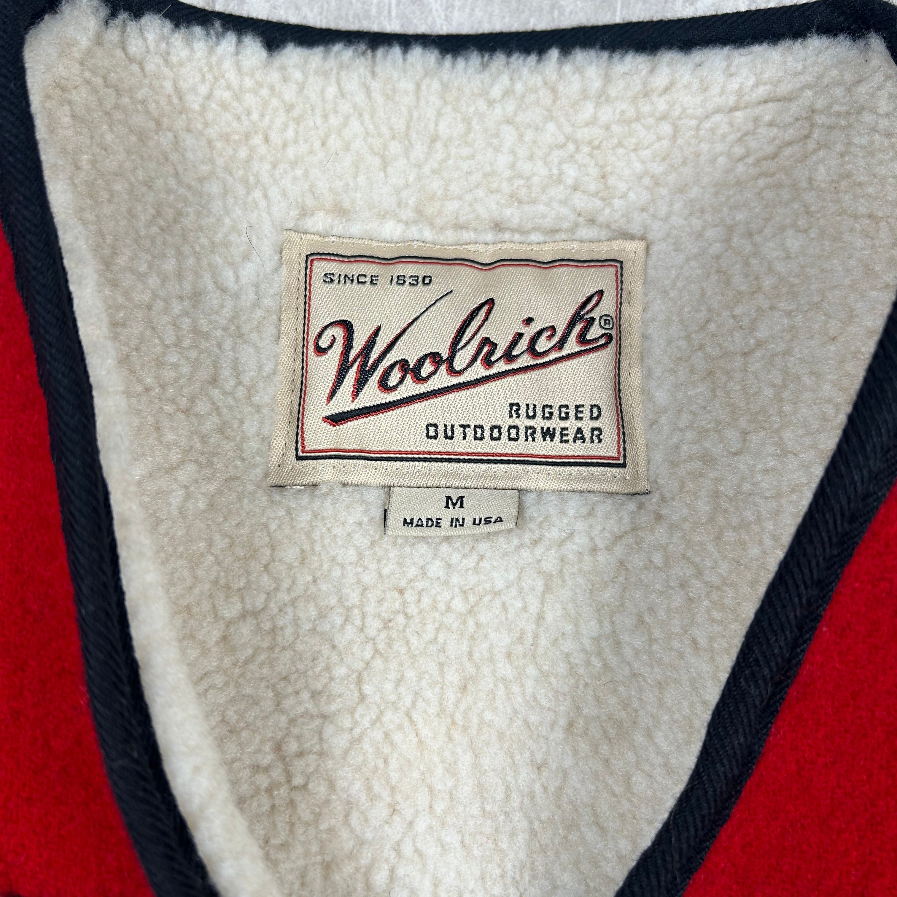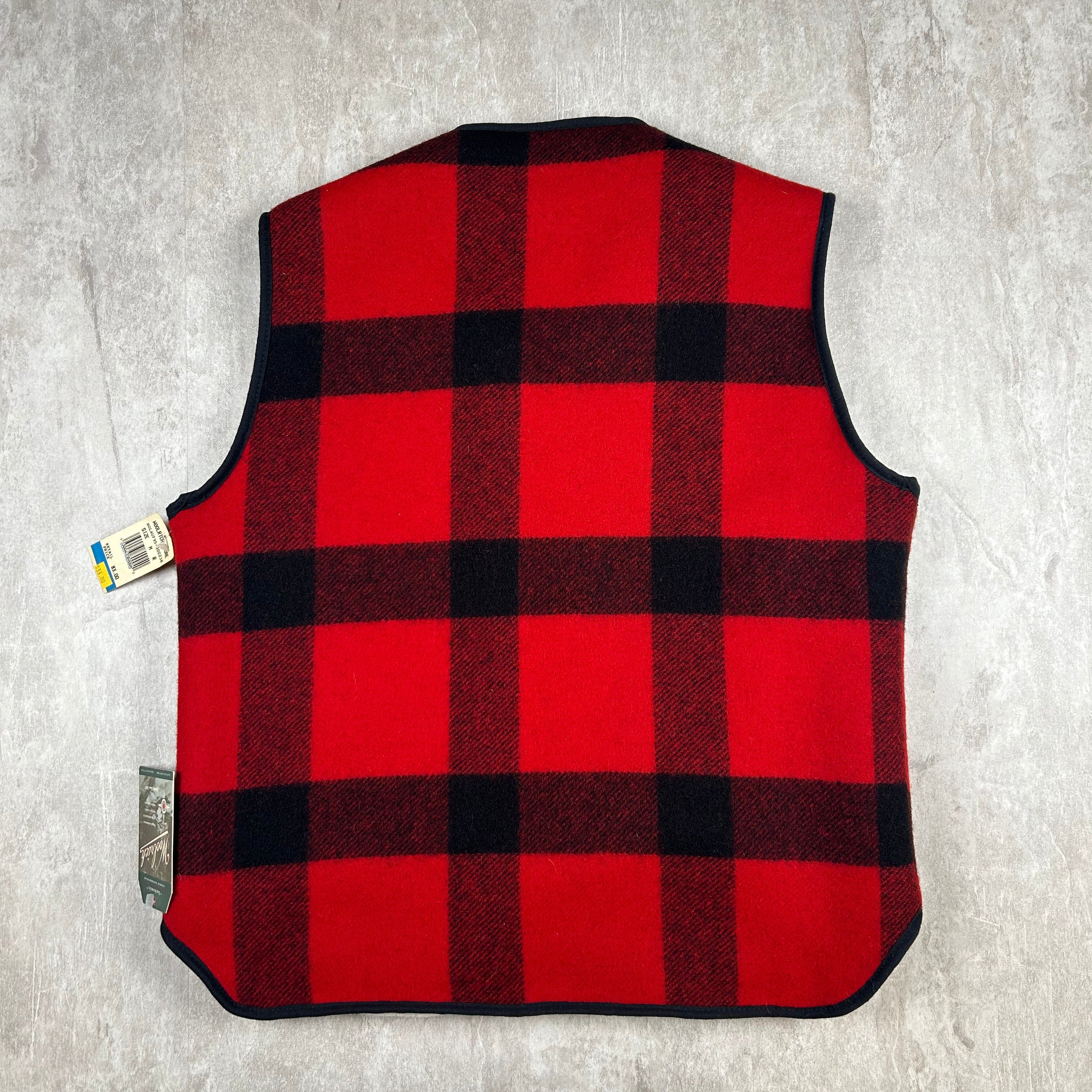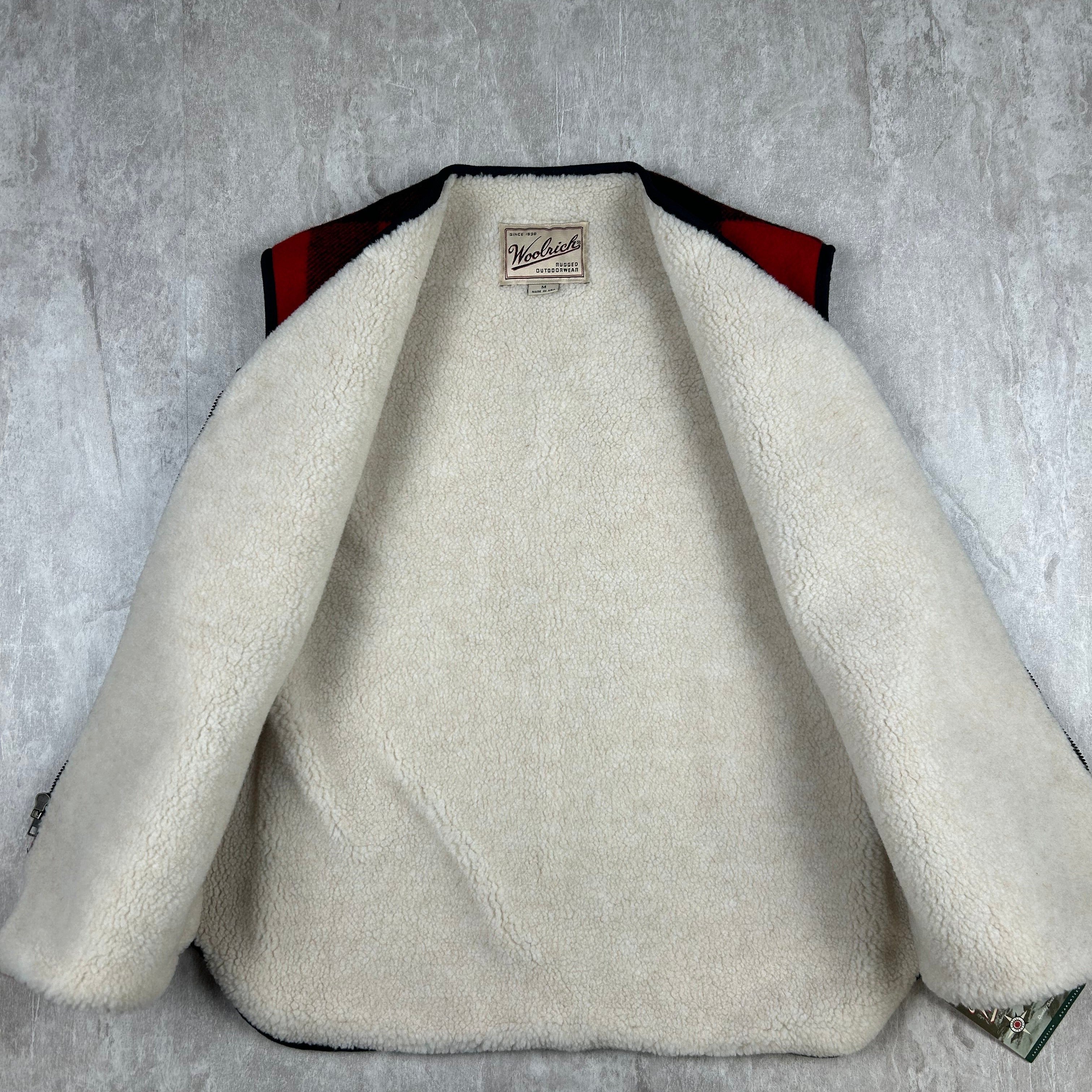 New Vintage Woolrich Sherpa Lined Red Black Plaid Wool Vest Men’s Size M