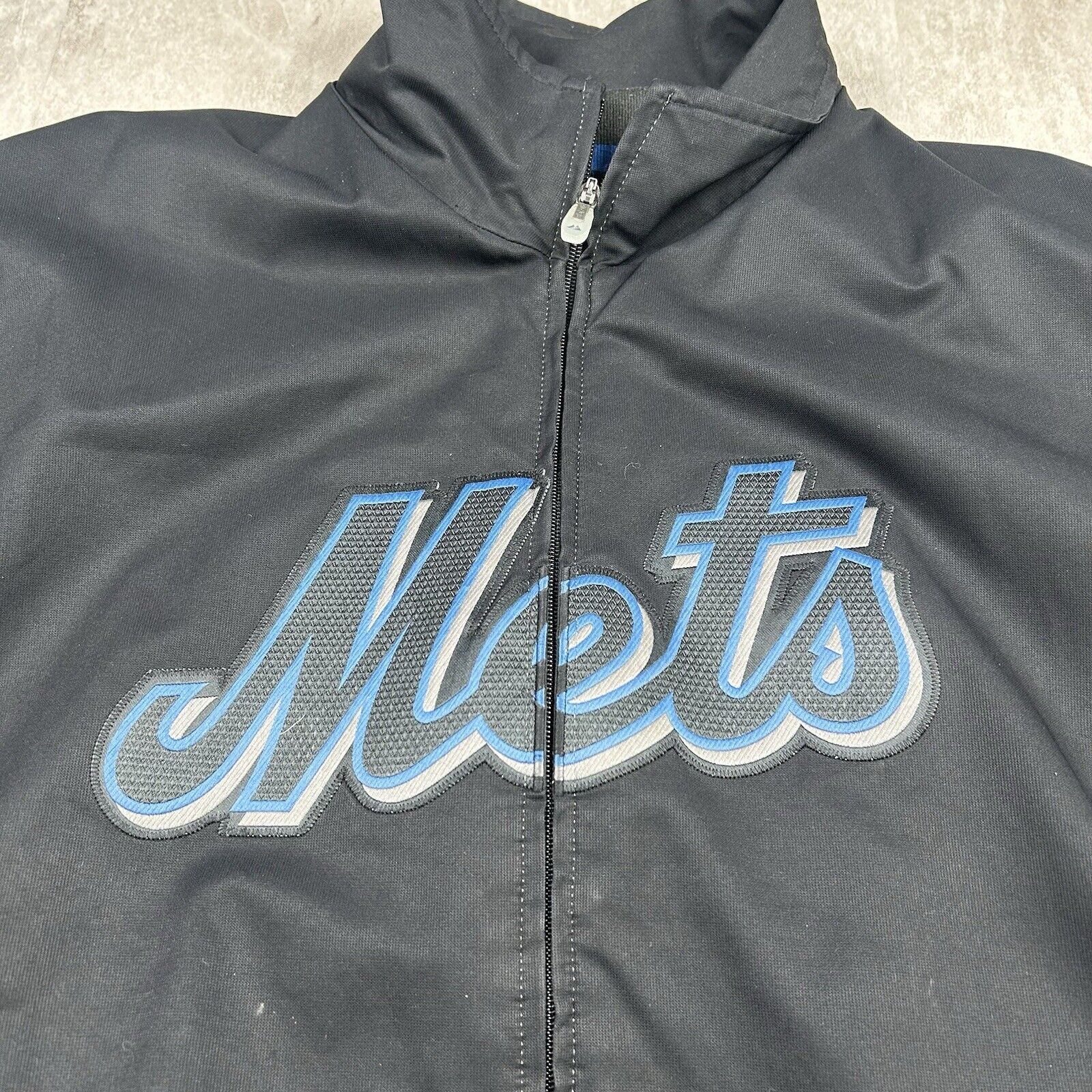 New York Mets Majestic Jacket Black Blue Authentic MLB Sports Men’s Size XL