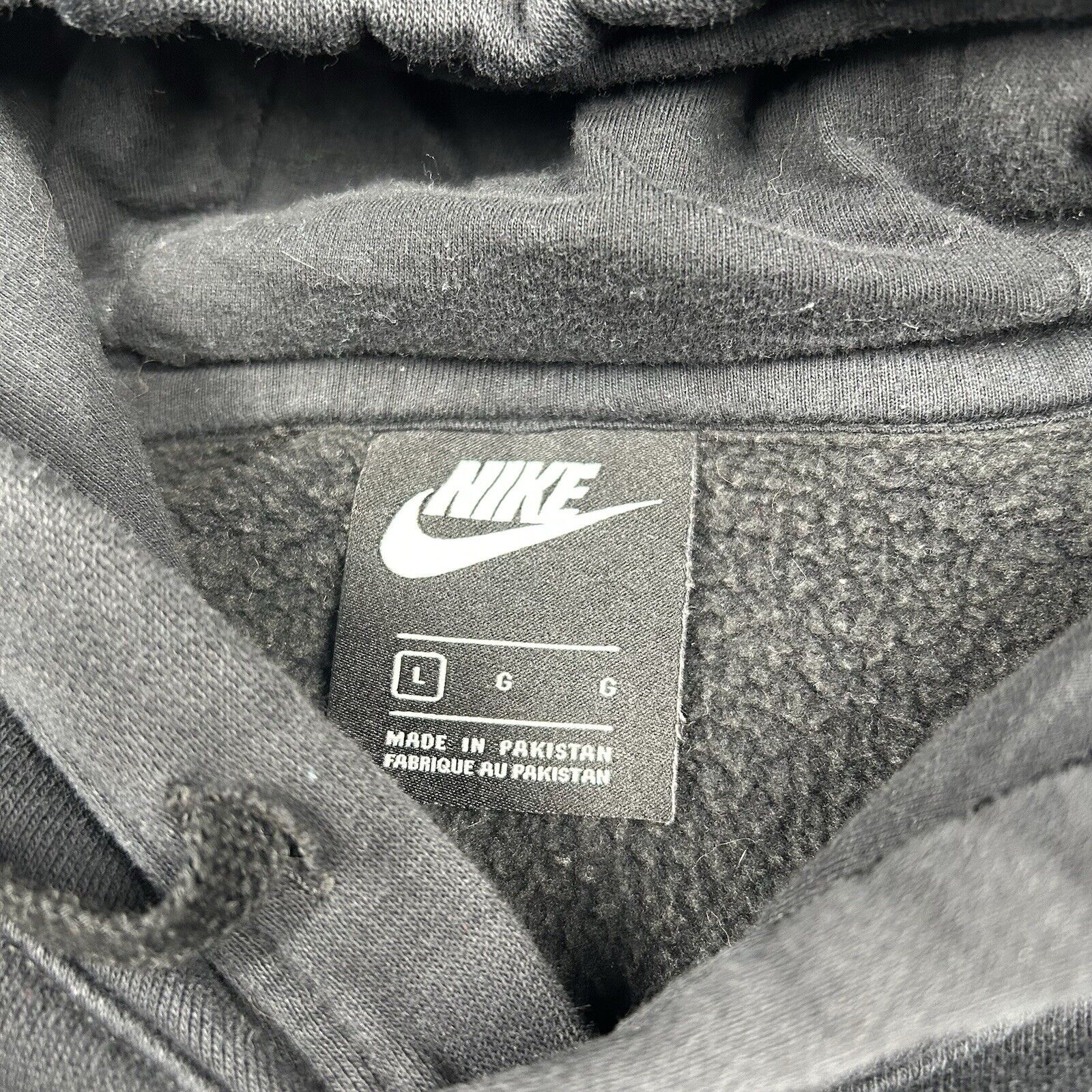 This Nike "Just Do It" Hoodie in black, size L, features bold embroidered spell-out branding on the chest. A comfortable and stylish essential for everyday wear or athletic looks.