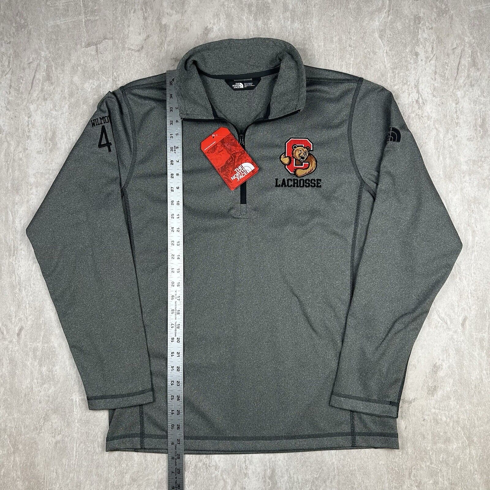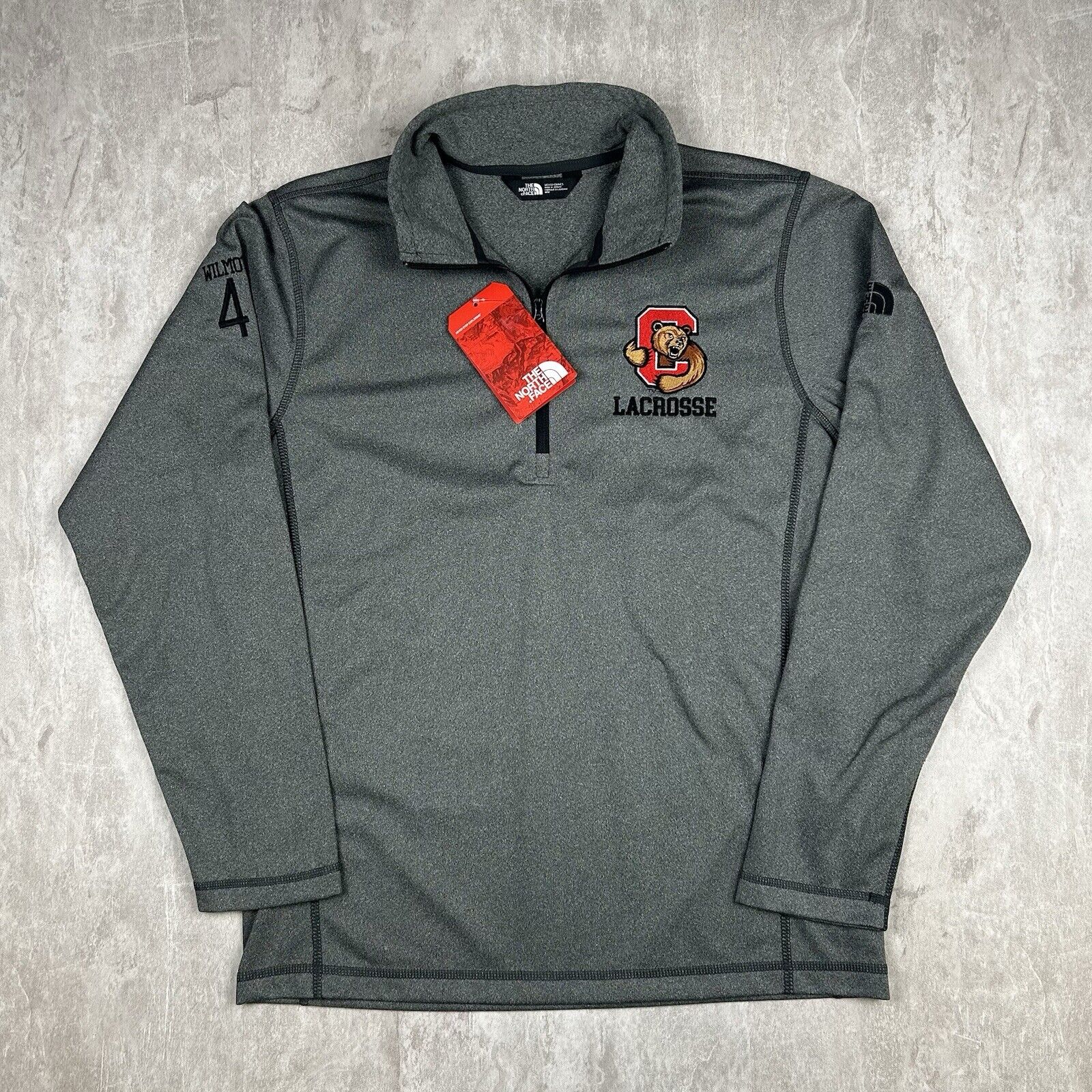 This NWT (New With Tags) Cornell Lacrosse North Face 1/4 Zip Long Sleeve Pullover Sweater is a Men's Size M. Featuring the iconic North Face quality and the Cornell Lacrosse logo, this pullover combines style and performance. Perfect for layering, its 1/4 zip design offers comfort and versatility for athletic activities or casual wear.