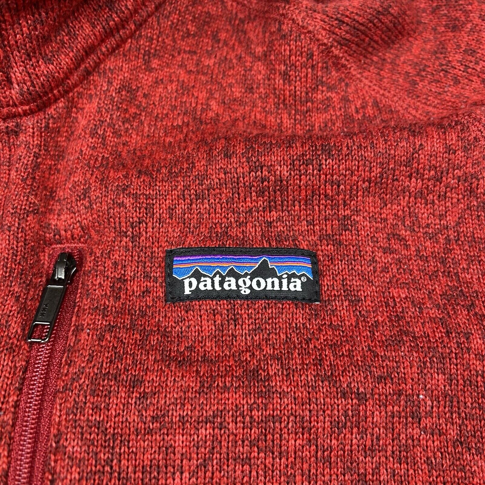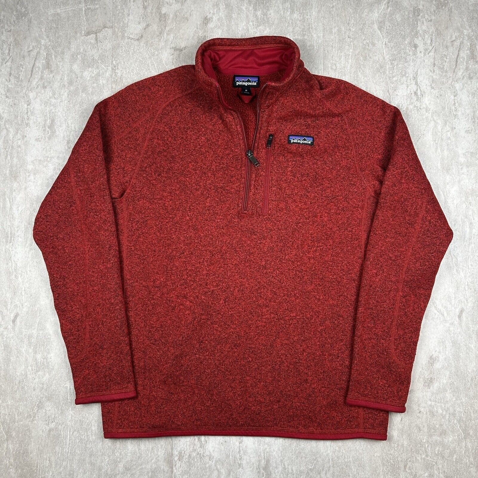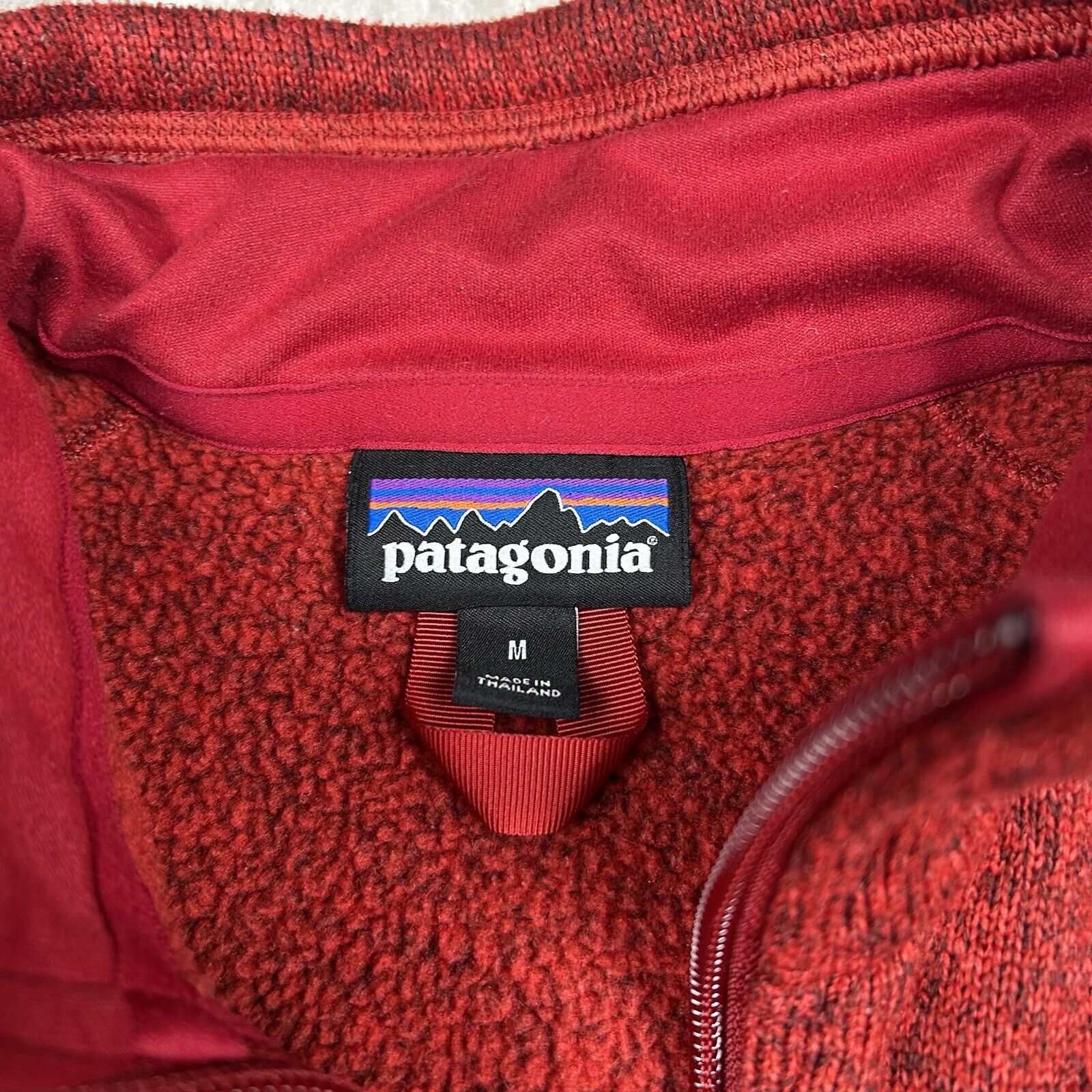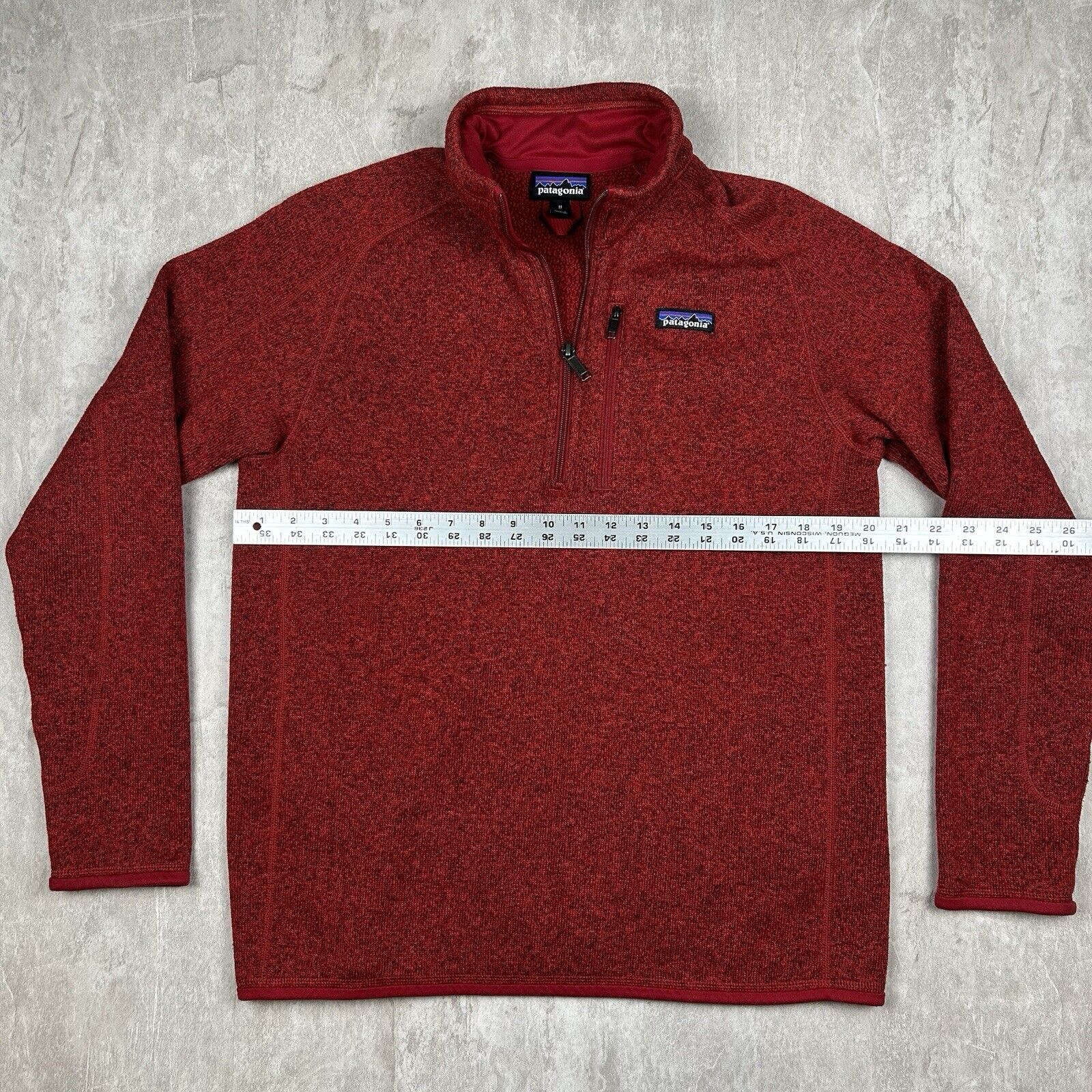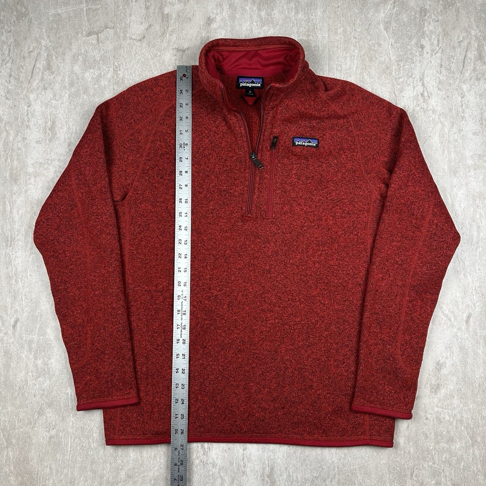 This Patagonia Better Sweater 1/4 Zip Pullover in red, size M, features a cozy fleece interior and iconic logo detailing. Ideal for outdoor adventures or casual layering.