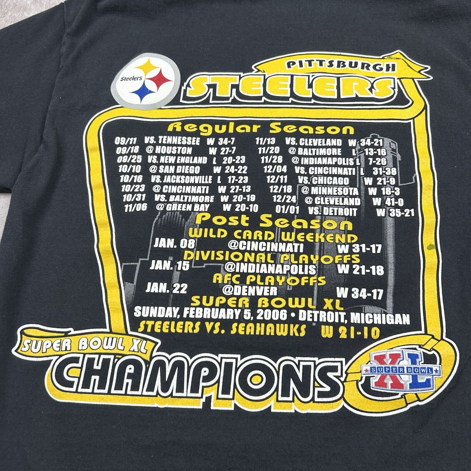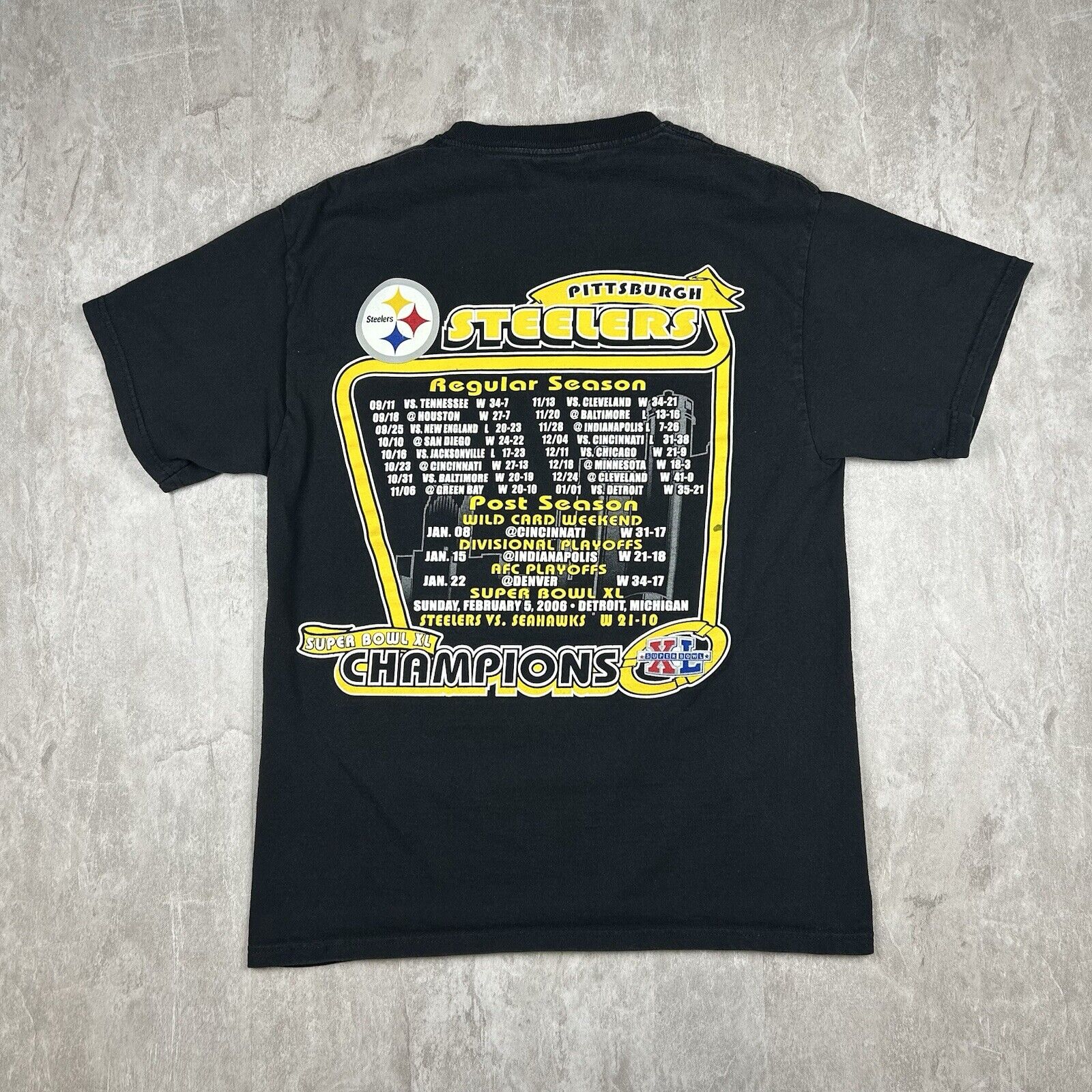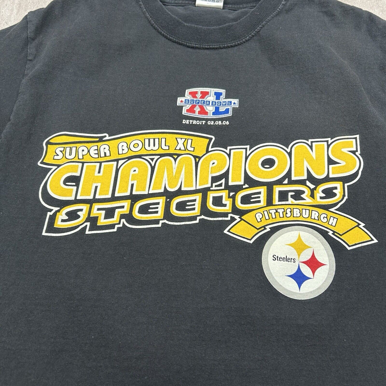 Pittsburgh Steelers 2006 Super Bowl XL Champs T-Shirt Black Cotton Men's Size M