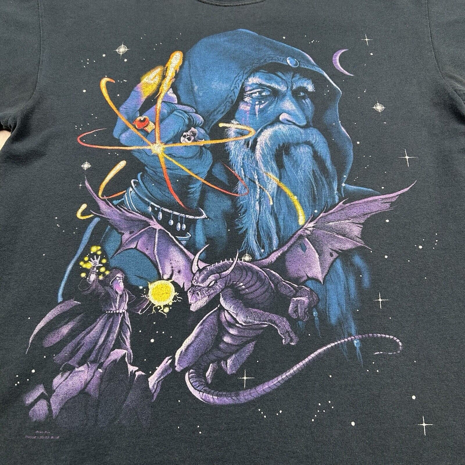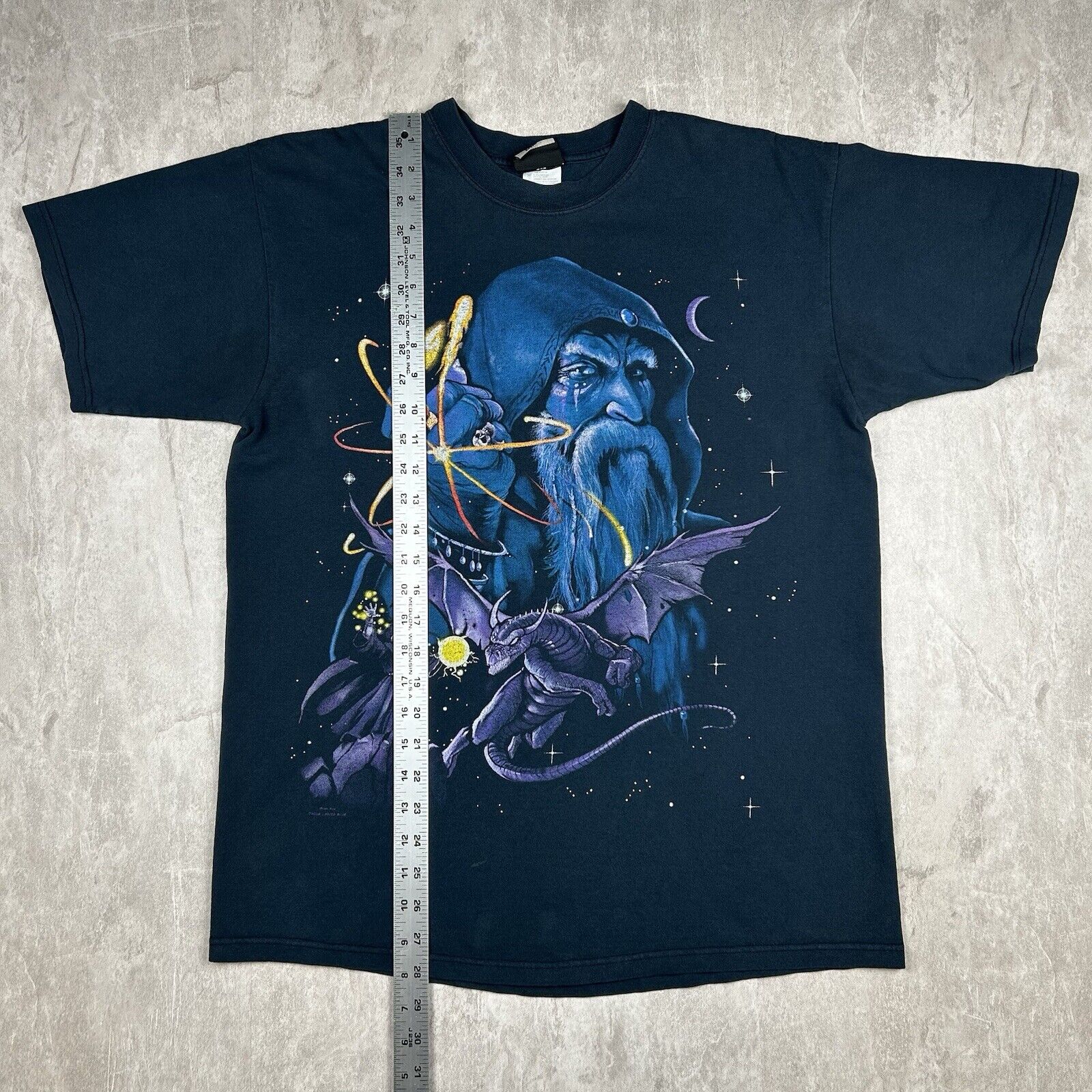 Rare Vintage 2002 Y2K Liquid Blue Wizard Dragon Magic T-Shirt Men’s Size L