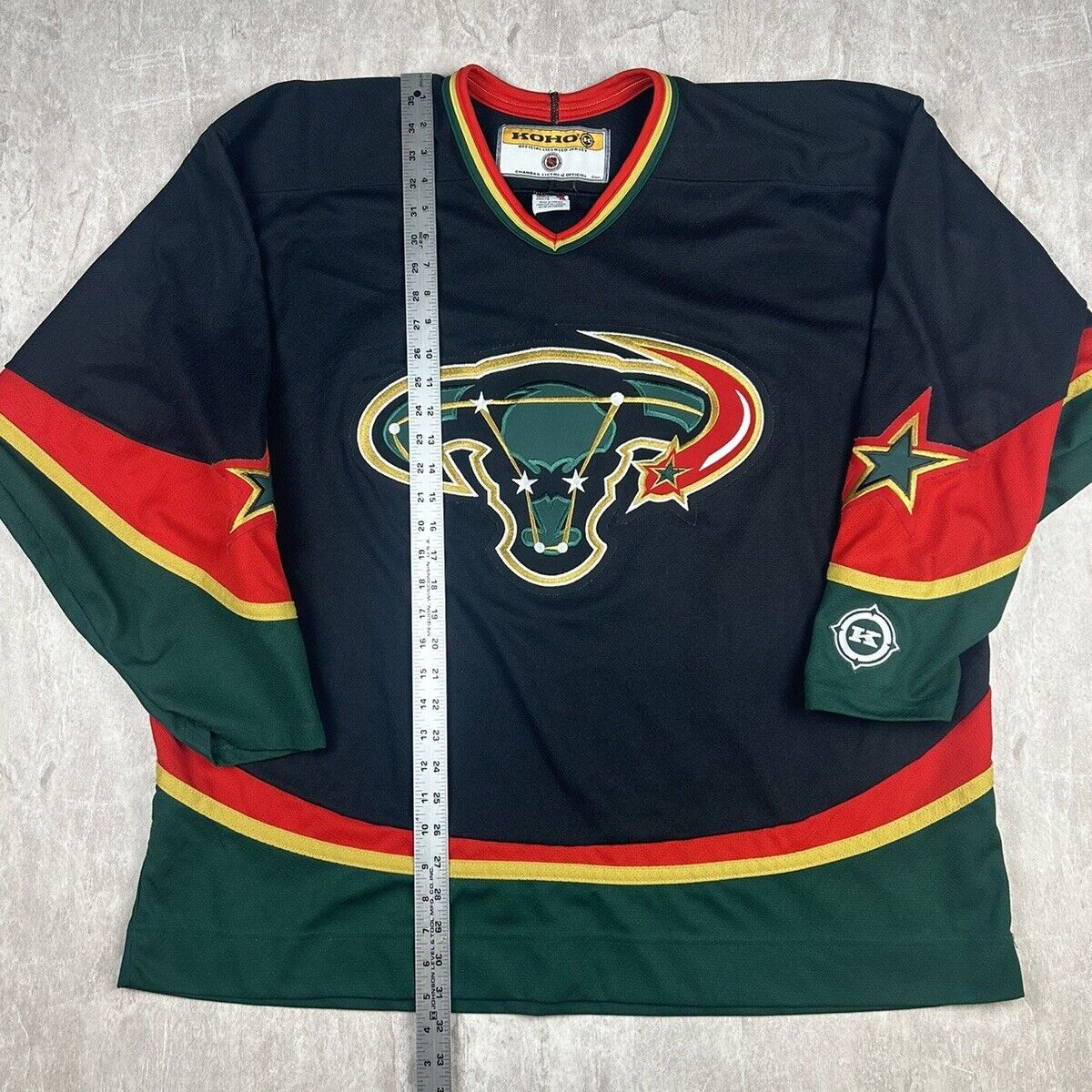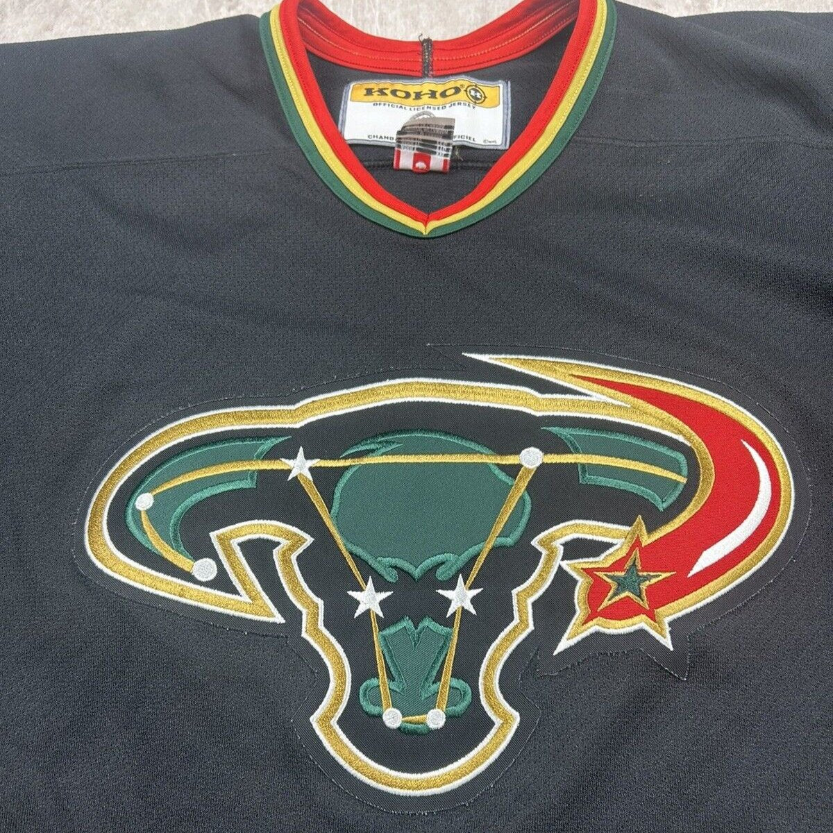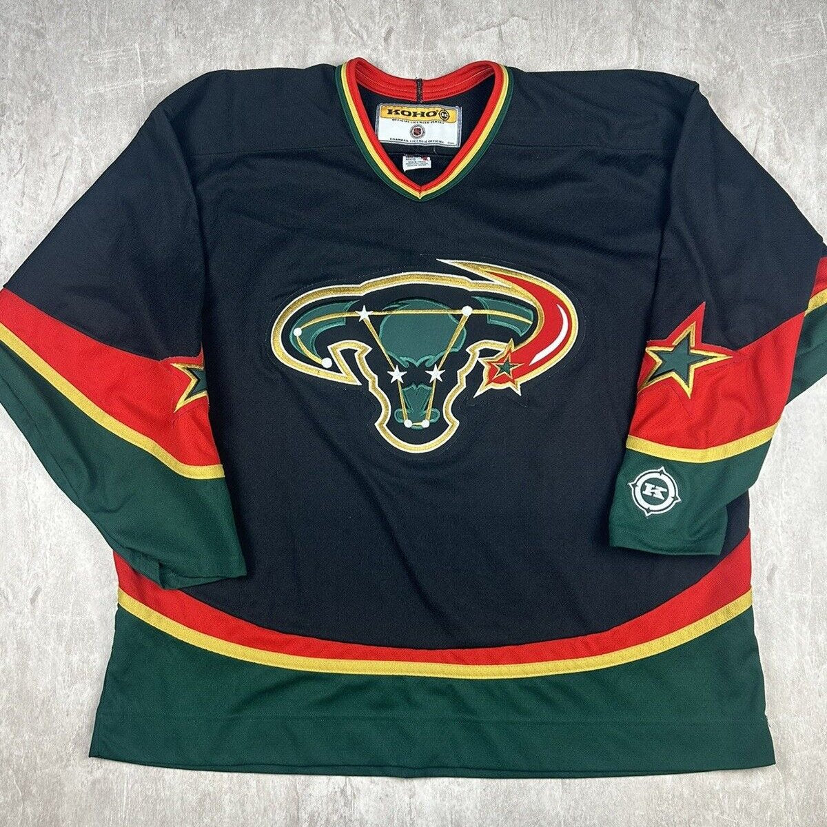 This rare Vintage KOHO Dallas Stars Alternate Jersey, in men's size 2XL, features the unique "Mooterus" design that has become a sought-after collector's item. Perfect for dedicated fans who appreciate a bold piece of hockey history.